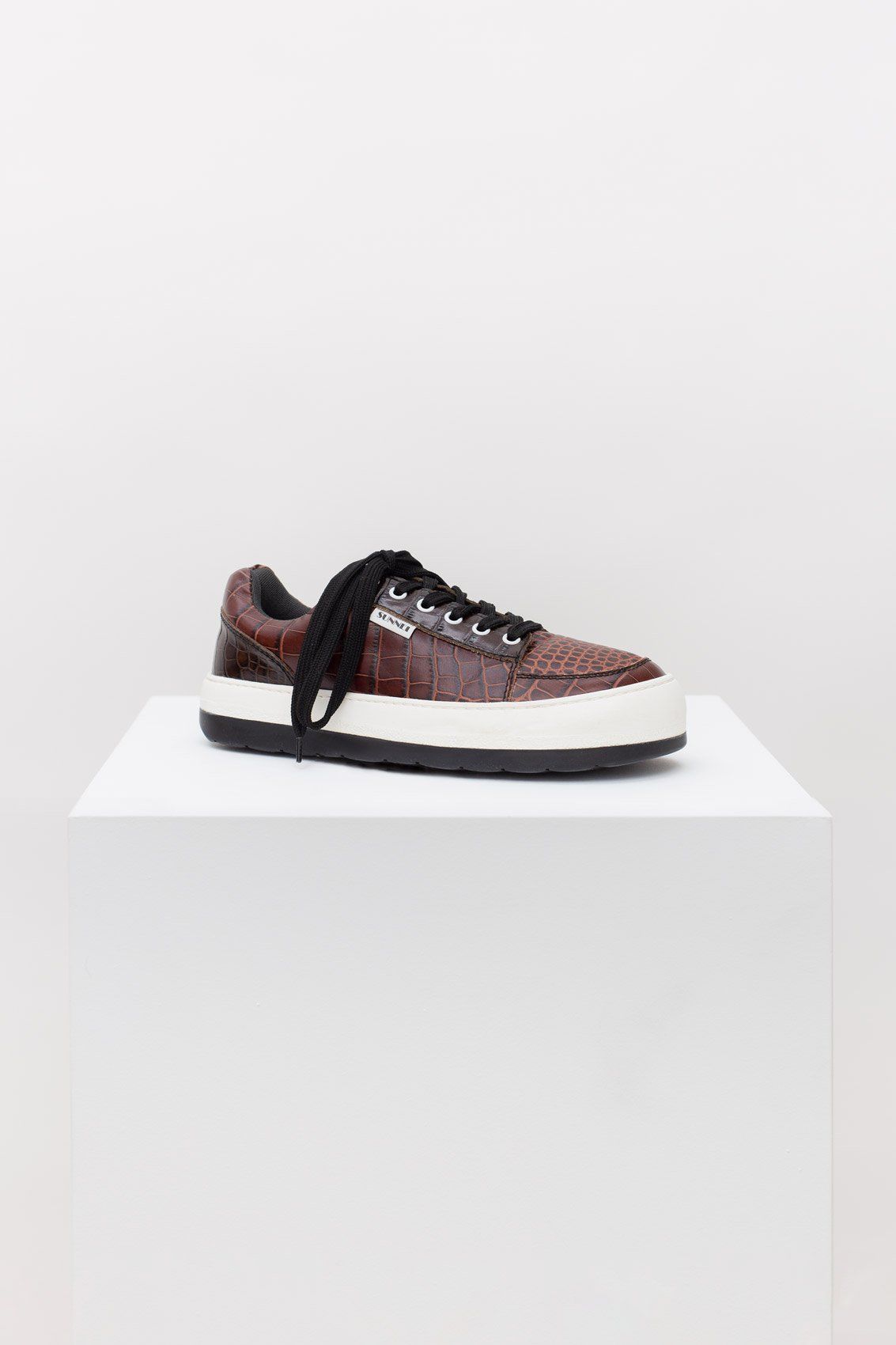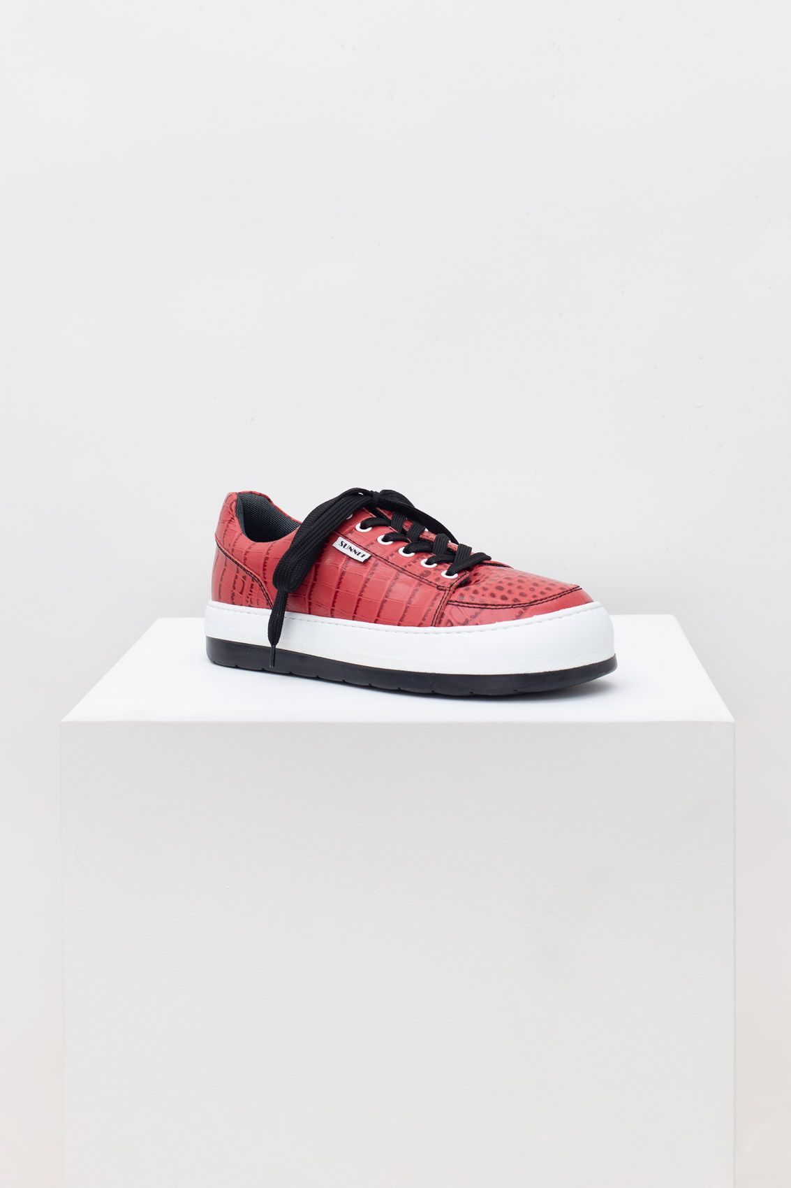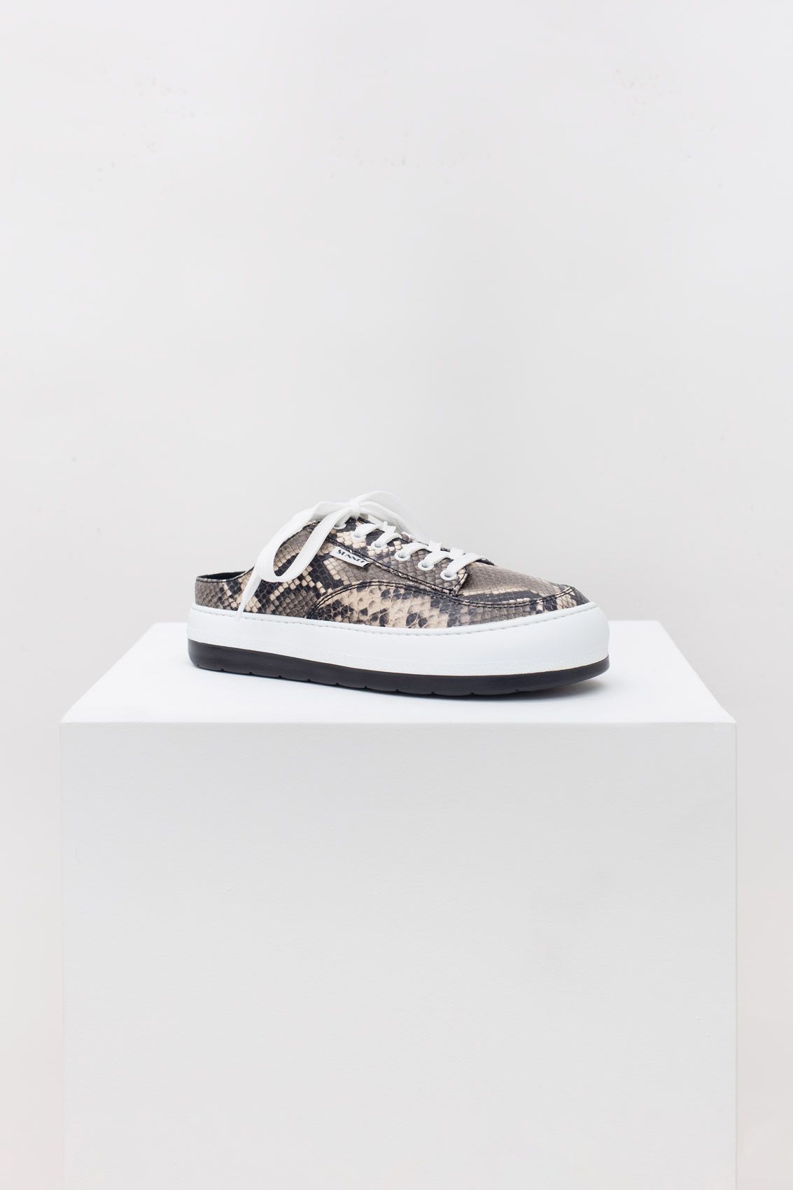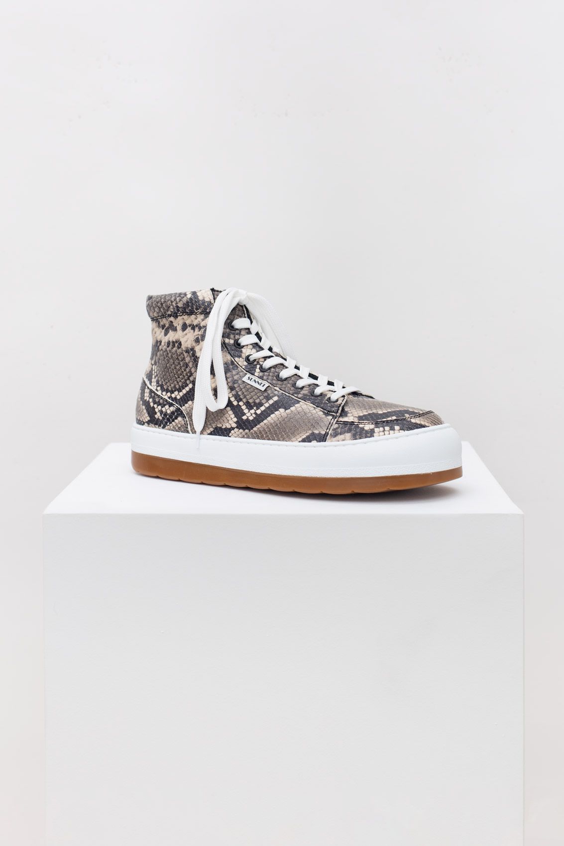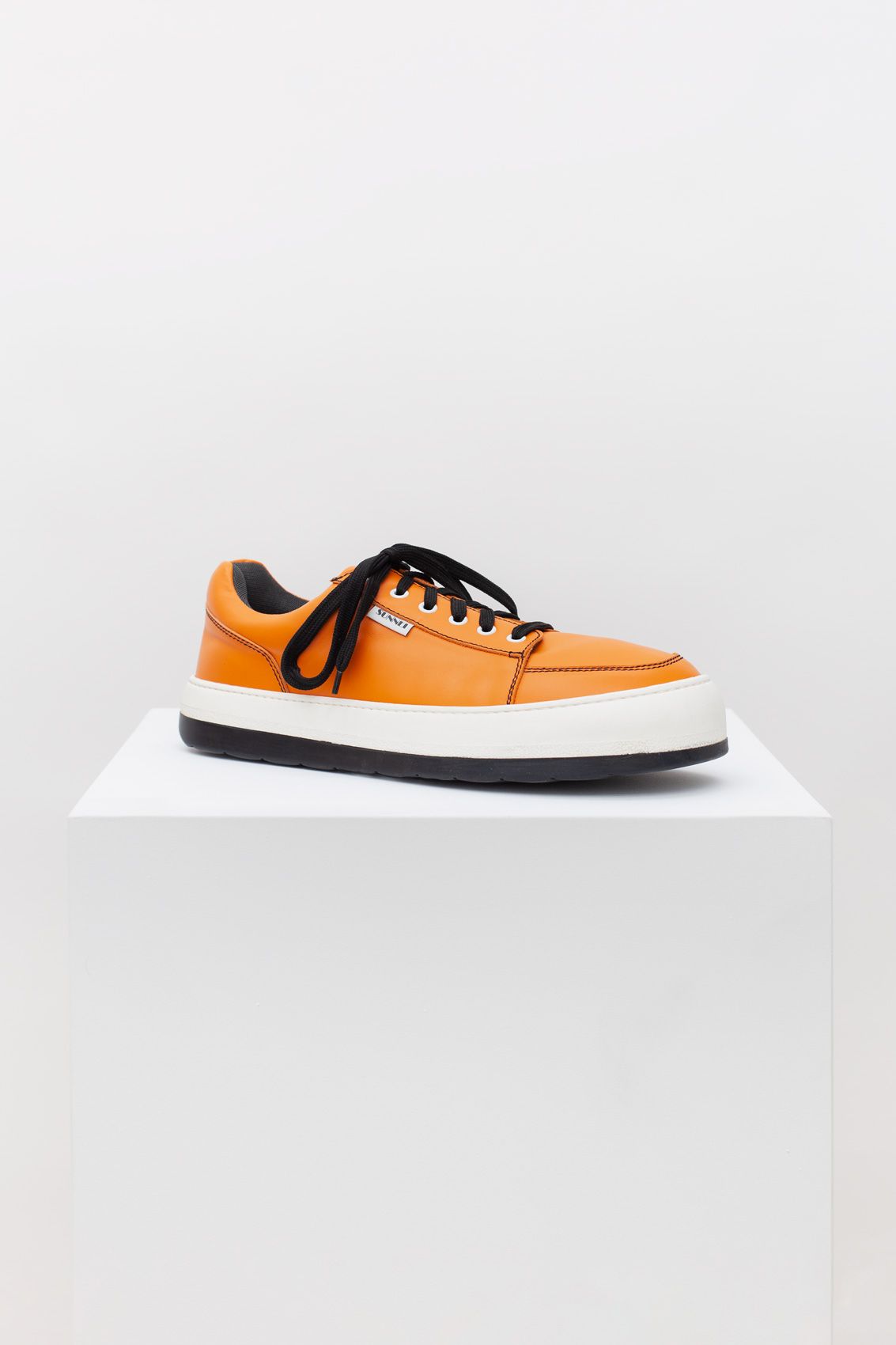 The new line of DREAMY shoes was created focusing on the shape of the shoes, which is more essential, and the color palette, which instead focuses on the new shades of yellow, orange and green. The typical exaggerated volumes of Sunnei's footwear are enriched with new materials such as leather, crocodile and neoprene and are presented in the double format of high-top and sabot.