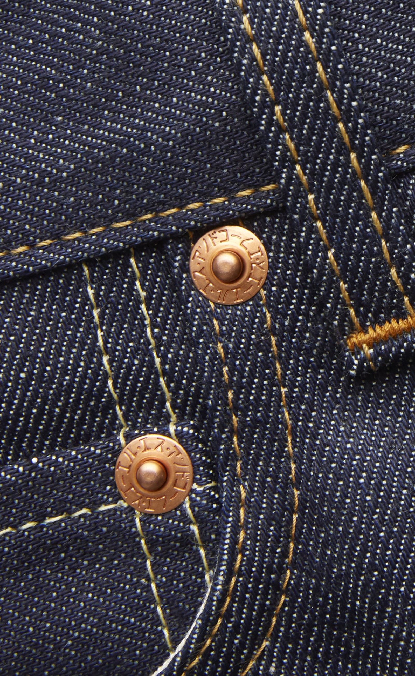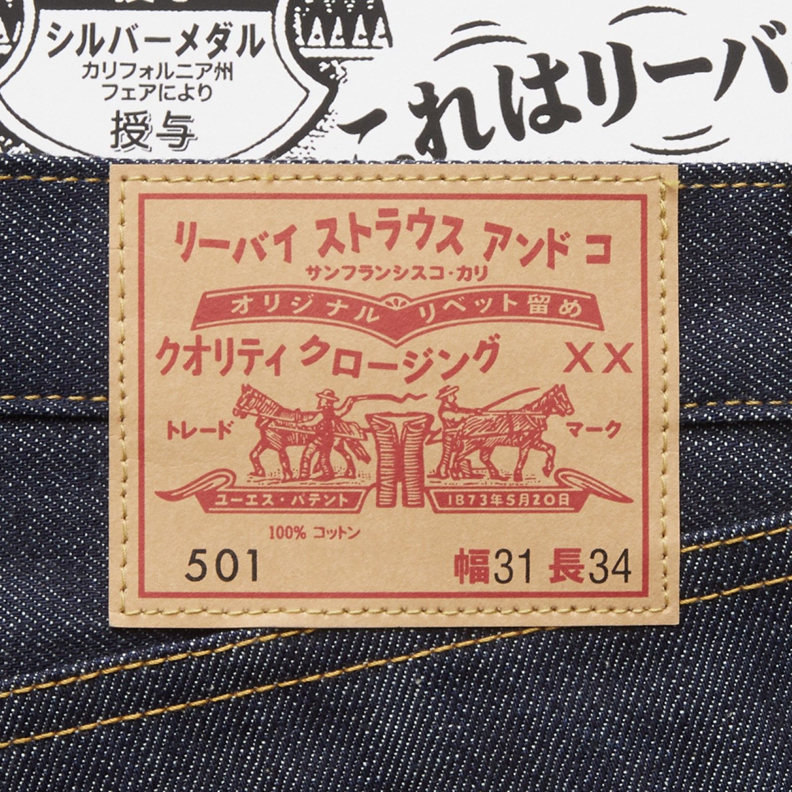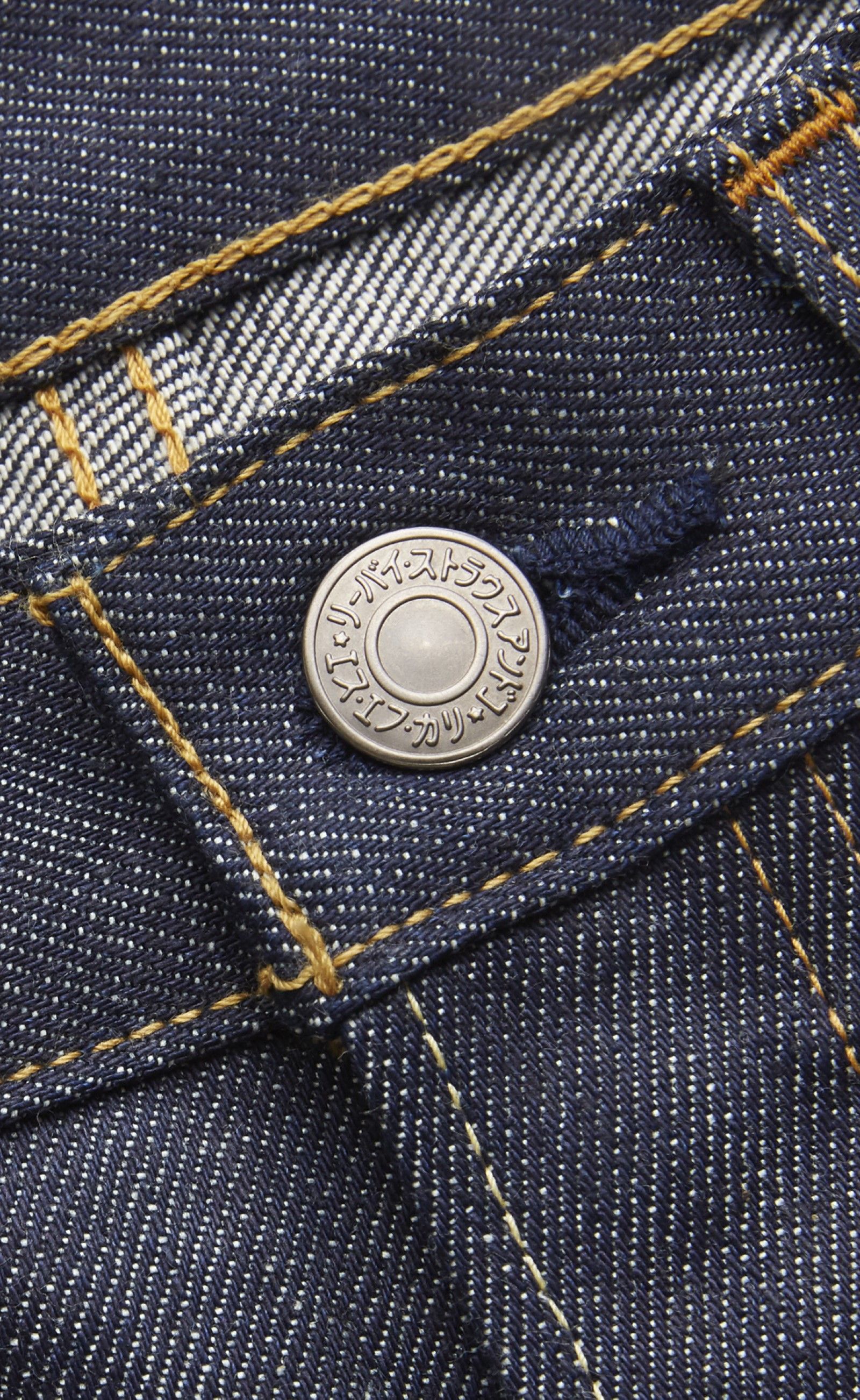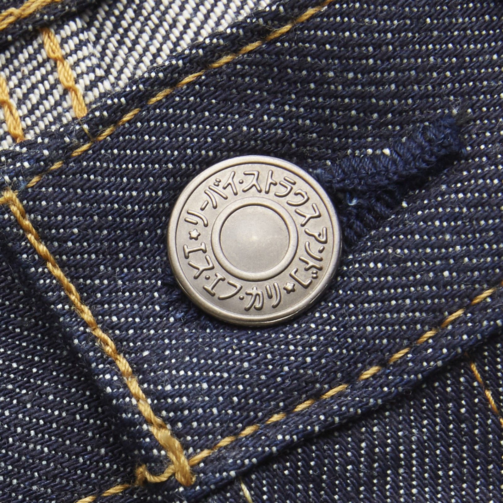 The model is composed entirely of Japanese cimosate denim and with every detail - the patch on the back, the red tab, the labels, the packaging, even the stamping on the buttons - in Japanese. This release will also celebrate the fact that all 501® Shrink-to-Fit fabric™ used in Levi's collection® Vintage Clothing will come from Japan.