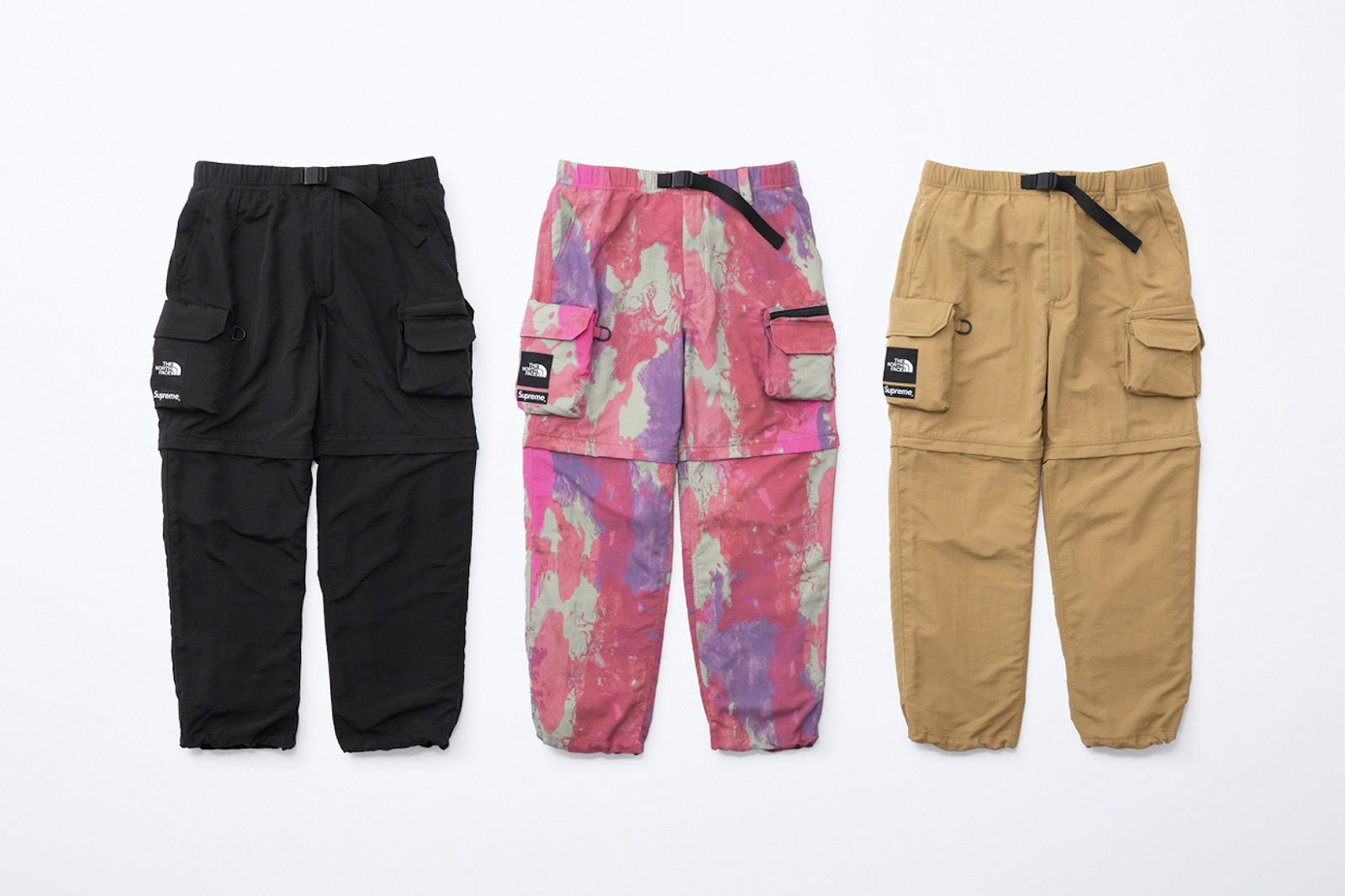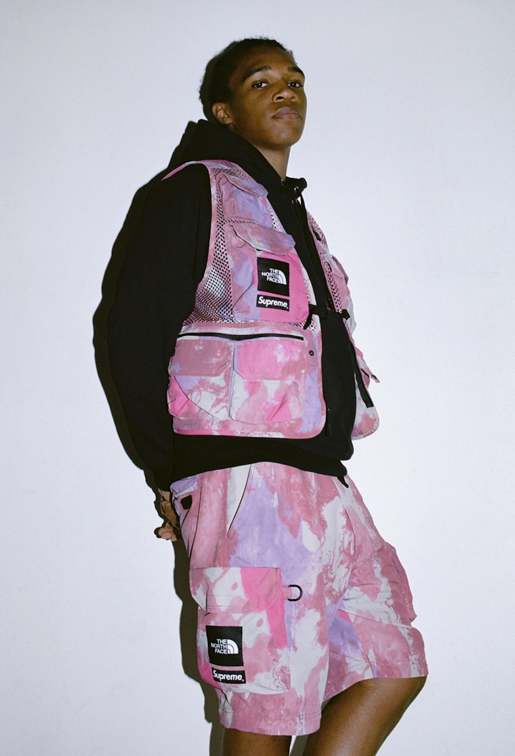 Supreme and The North Face have unveiled their second drop for the ss20. The focus of the collaboration is on outwear, made of water-resistant nylon, perfect for both outdoor activities and everyday life in the city. The selection includes a Cargo Jacket, a vest in breathable mesh, and a pair of belted cargo pants featuring zip-off lower legs that turns them into shorts. The collection is completed by an Adventure Tote, a hat with removable sunshade and a floating keychain. All the pieces of the capsule are available in three colors: black, camel and camouflage pink.