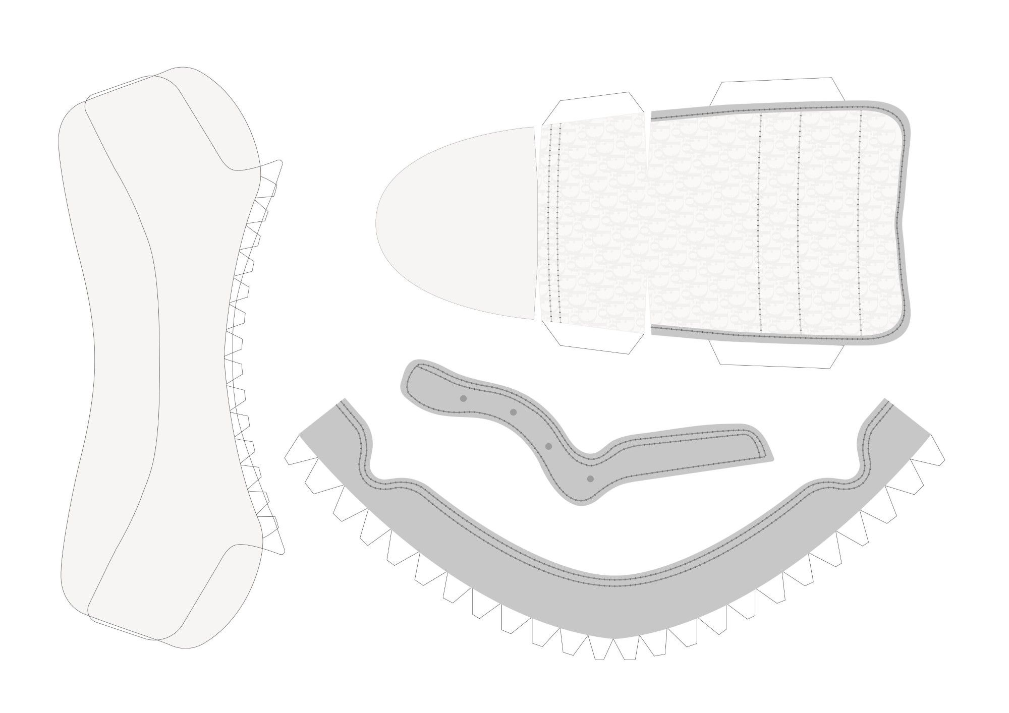 Download all the files you find in the gallery below, print them on a large enough piece of paper and cut out all the pieces. Then try assembling your Air Dior papercraft model. When you're done, take a photo, post it in your Instagram Stories and tag nss magazine. The best successful work will be placed on our channels.