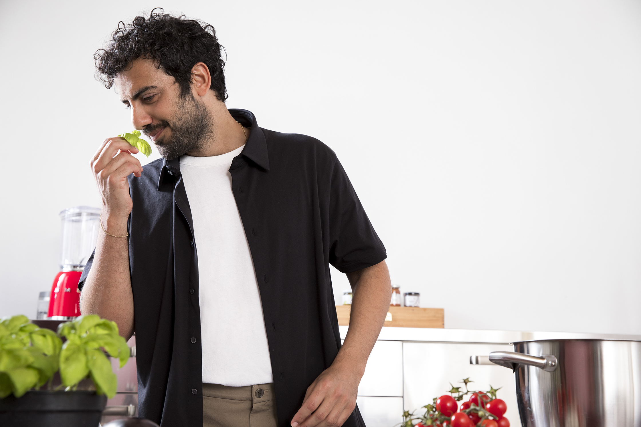 «Dynamism is an integral part of my daily life, an innate attitude that is always present both in personal relationships and in work. I think my zodiac sign, the Gemini, and the place where I grew up, Vesuvian, is very important. In the kitchen I'm a bit artisanal and a bit theatrical, I experiment with techniques in the preparation of dishes, I create digital content and I always run between a visit to the market and a shoot. Uniqlo AIRism always keeps me fresh thanks to its materials and I can always count on a feeling of lightness and relaxation that is fundamental in my work – it is like a best friend».