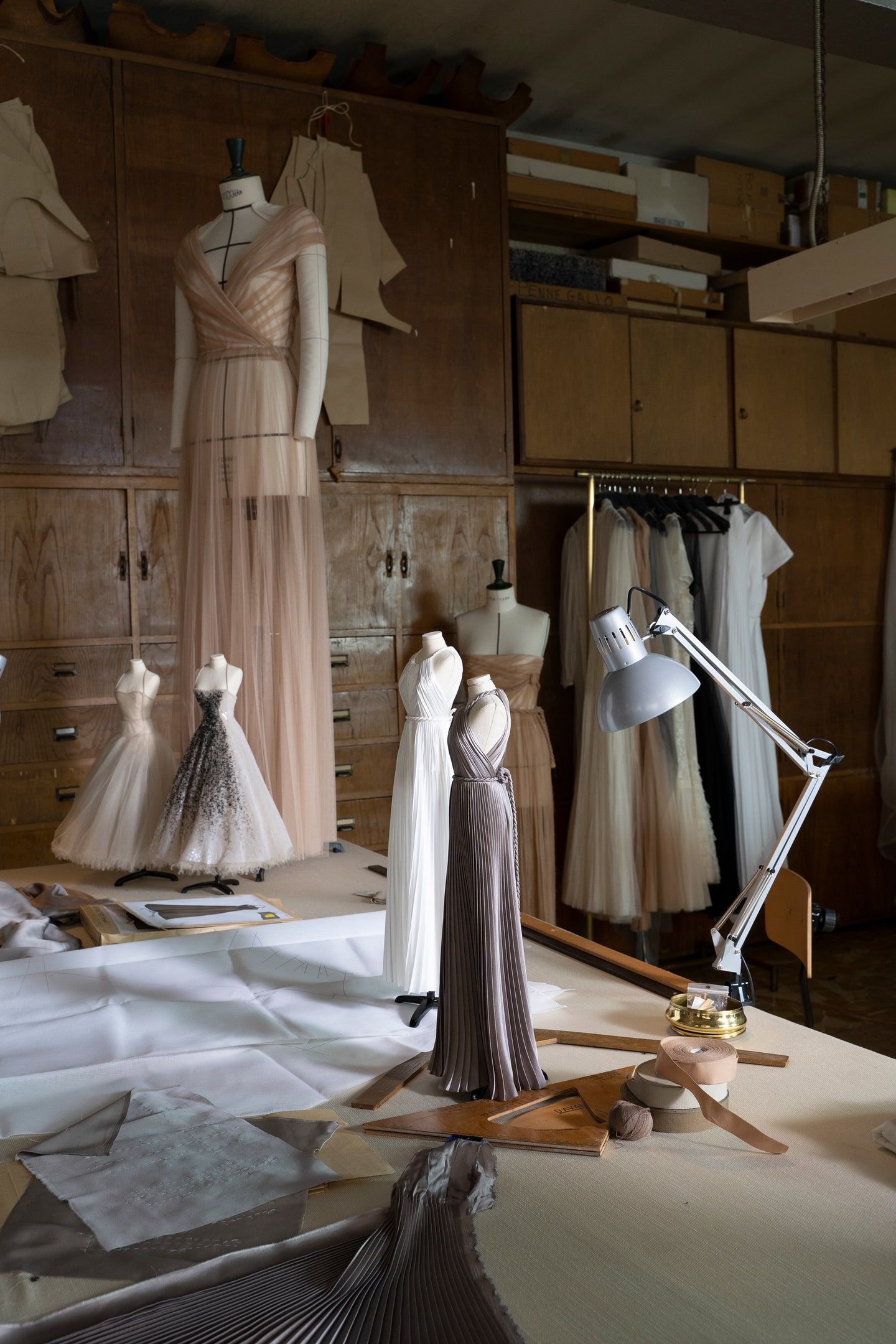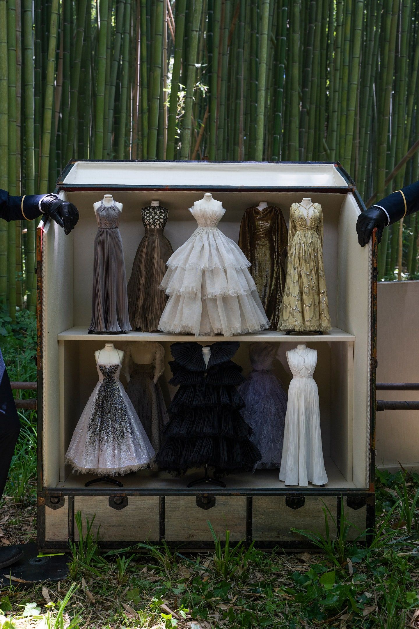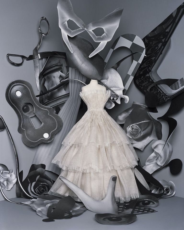 The film, which lingers on the folds of clothes and the details of the packaging and celebrates its artisanal tradition, was inspired by the Théatre de la Mode: a miniature fashion touring theatre designed by the Chambre Syndicale de la Couture Parisienne after World War II to revive the industry, at the time devastated by the conflict. In 1945 its 237 figurines, all the size of a doll, made the rounds of European cities and the event was revived in the United States the following year. To showcase the new collection, Dior created two sets of 37 dresses, each reproduced at 40 percent of the original size. Chiuri explained: