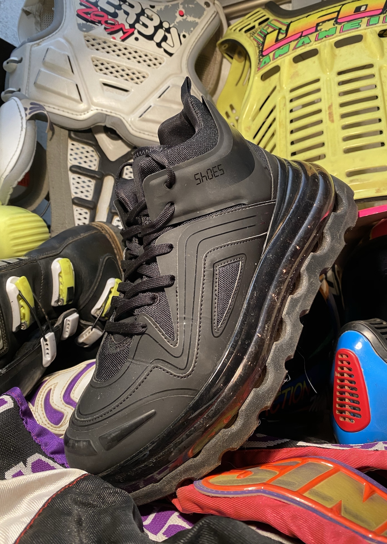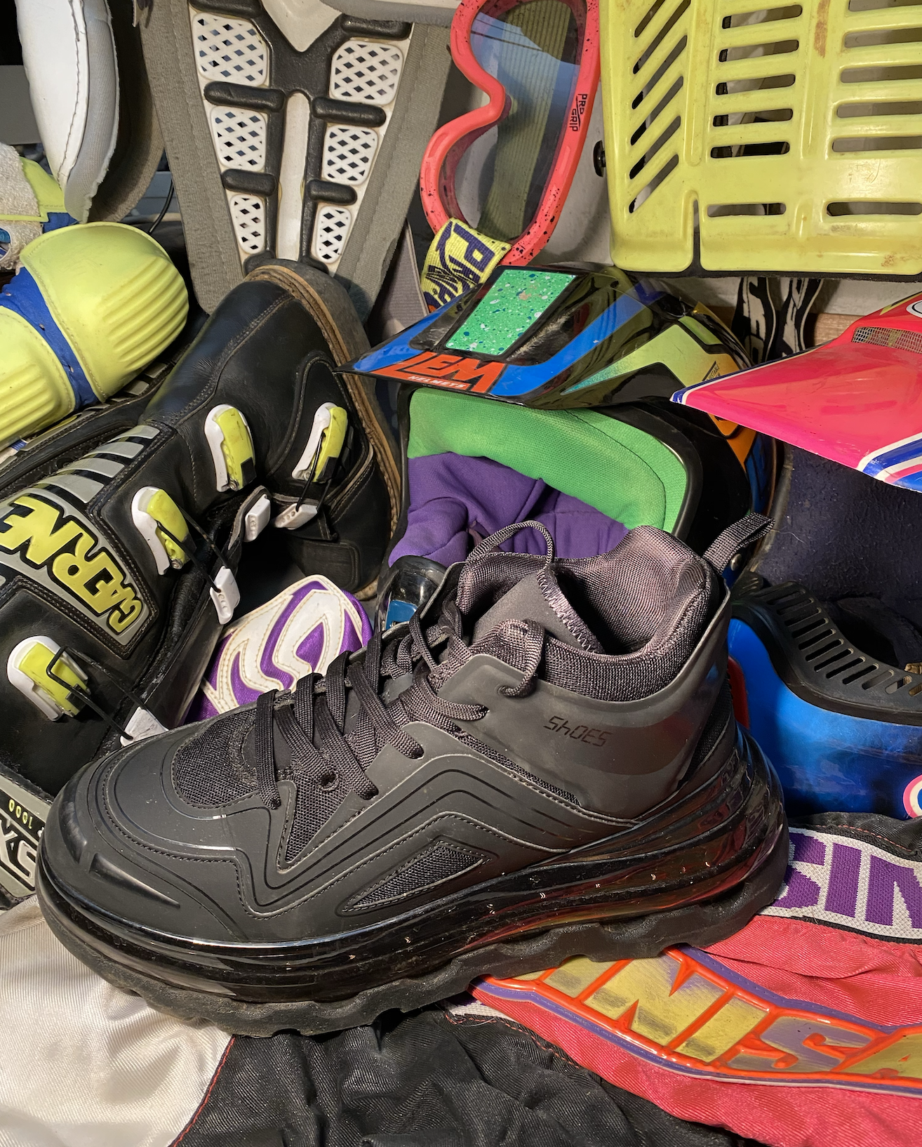 I started with a 6-month internship in Bordeaux at a French surf brand called Oxbow. They wanted to launch a motocross-inspired line, so it was the perfect opportunity for me. Over time I realized that it was not for me because they were referring to an imaginary that gave me little creative margin. It was, however, a very formative experience, after which I returned to my hometown. At Romans I started designing shoes all day at my grandmother's house, with the idea of going to present the drafts from the great local footwear, which they produced for important brands such as Claude Montana, Louis Vuitton, Issey Miake and Karl Lagerfeld. In those big companies worked great designers from all over the world, Romans was a reference point for fashion at the time, a bit like Vigevano was in Italy. I took the first doors in Kelian's face, who looked at my sketches and made me realize that he didn't need me. But to the fury of insisting I stood out and gave me the opportunity to stay in the company doing the dirty work using all the tools and machinery as long as I would not disturb or ask anyone for help. I was there every day doing maquettes on maquettes.