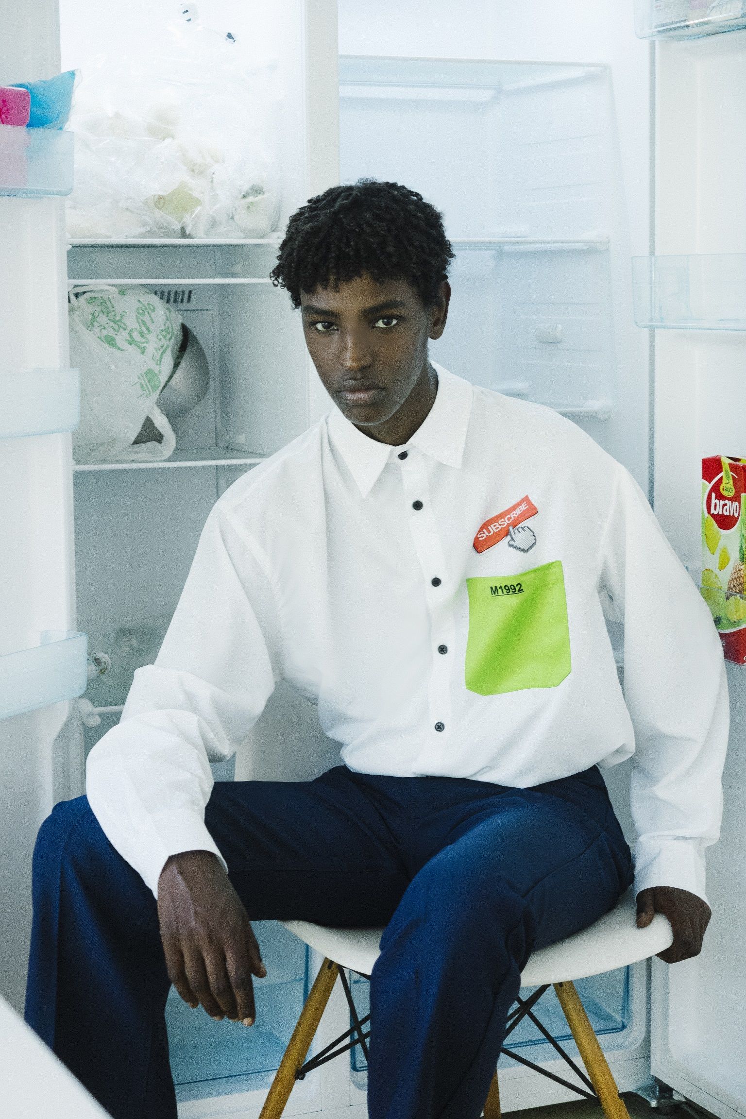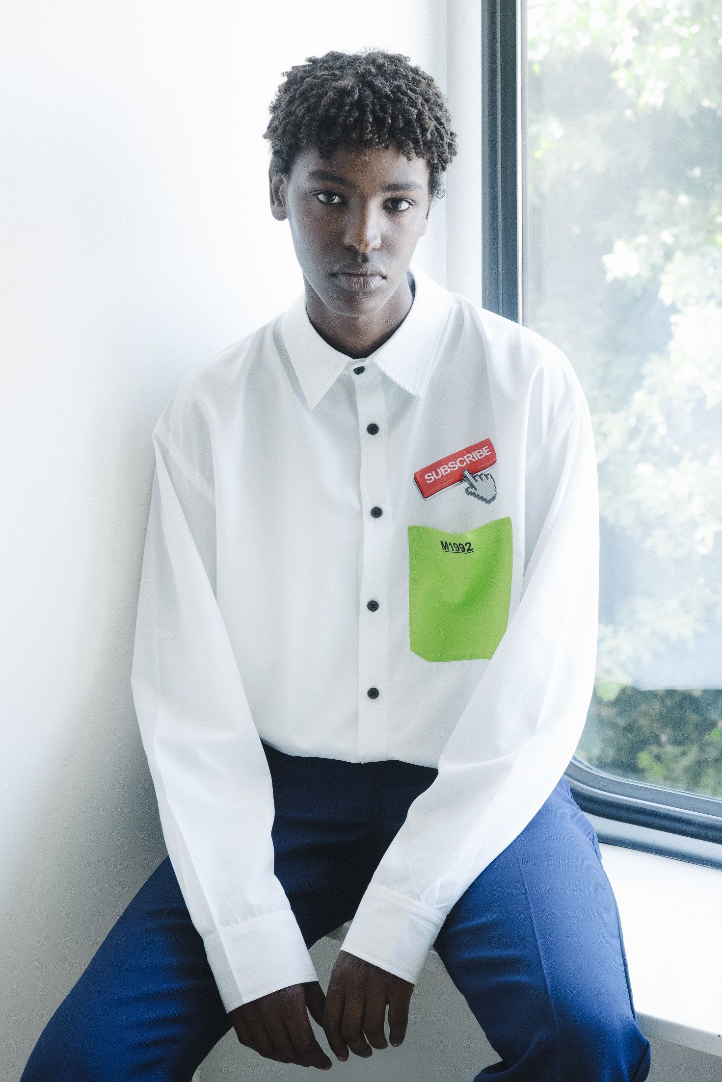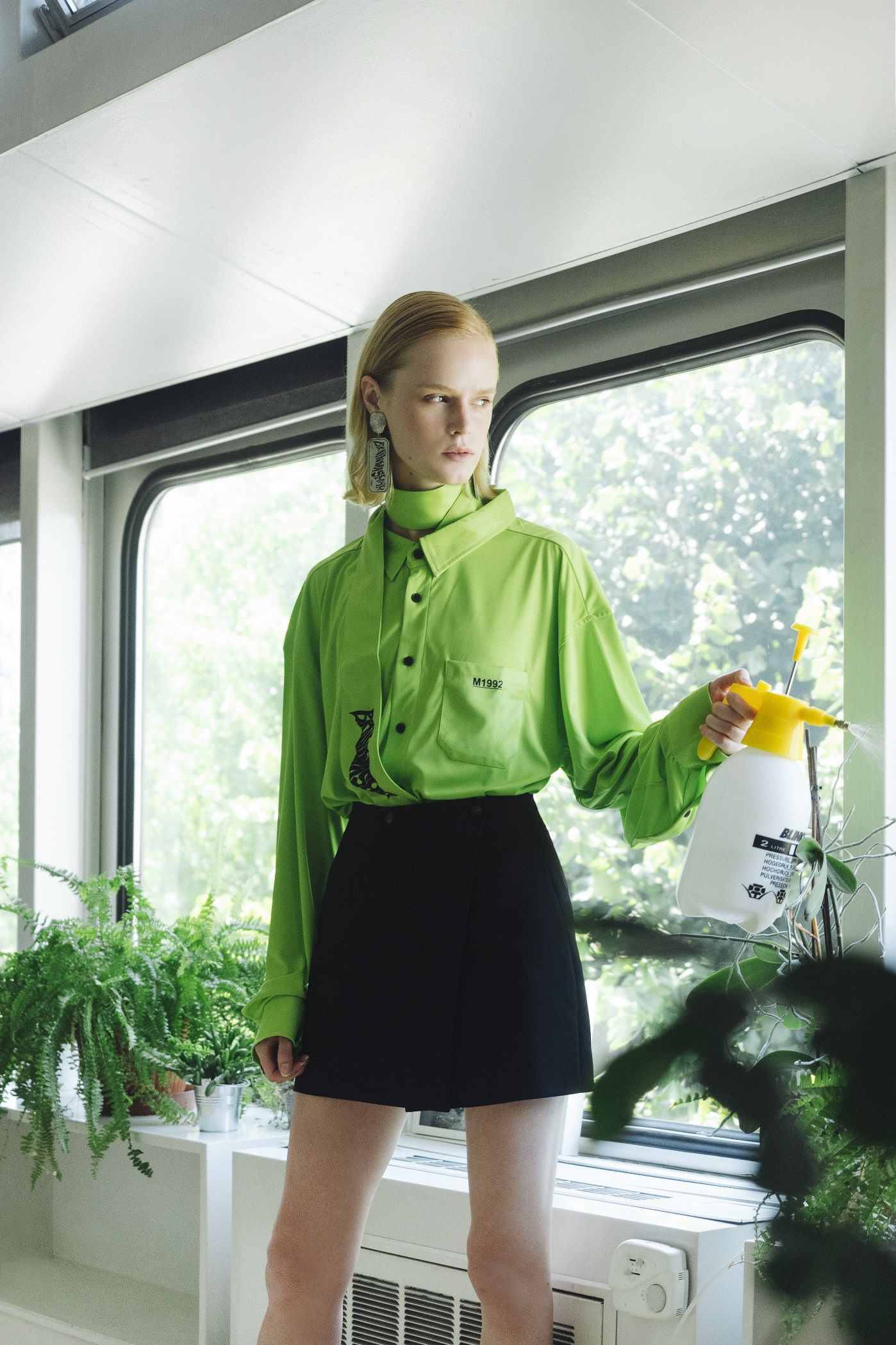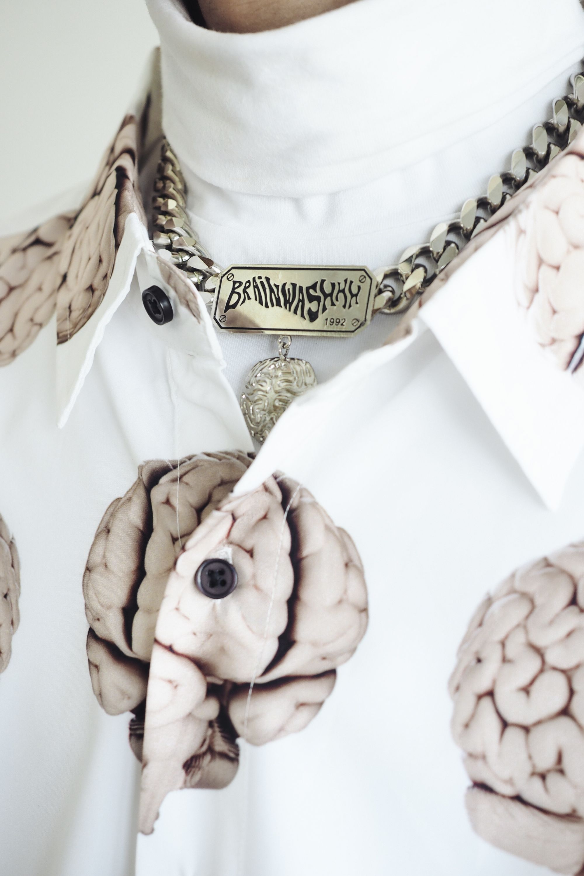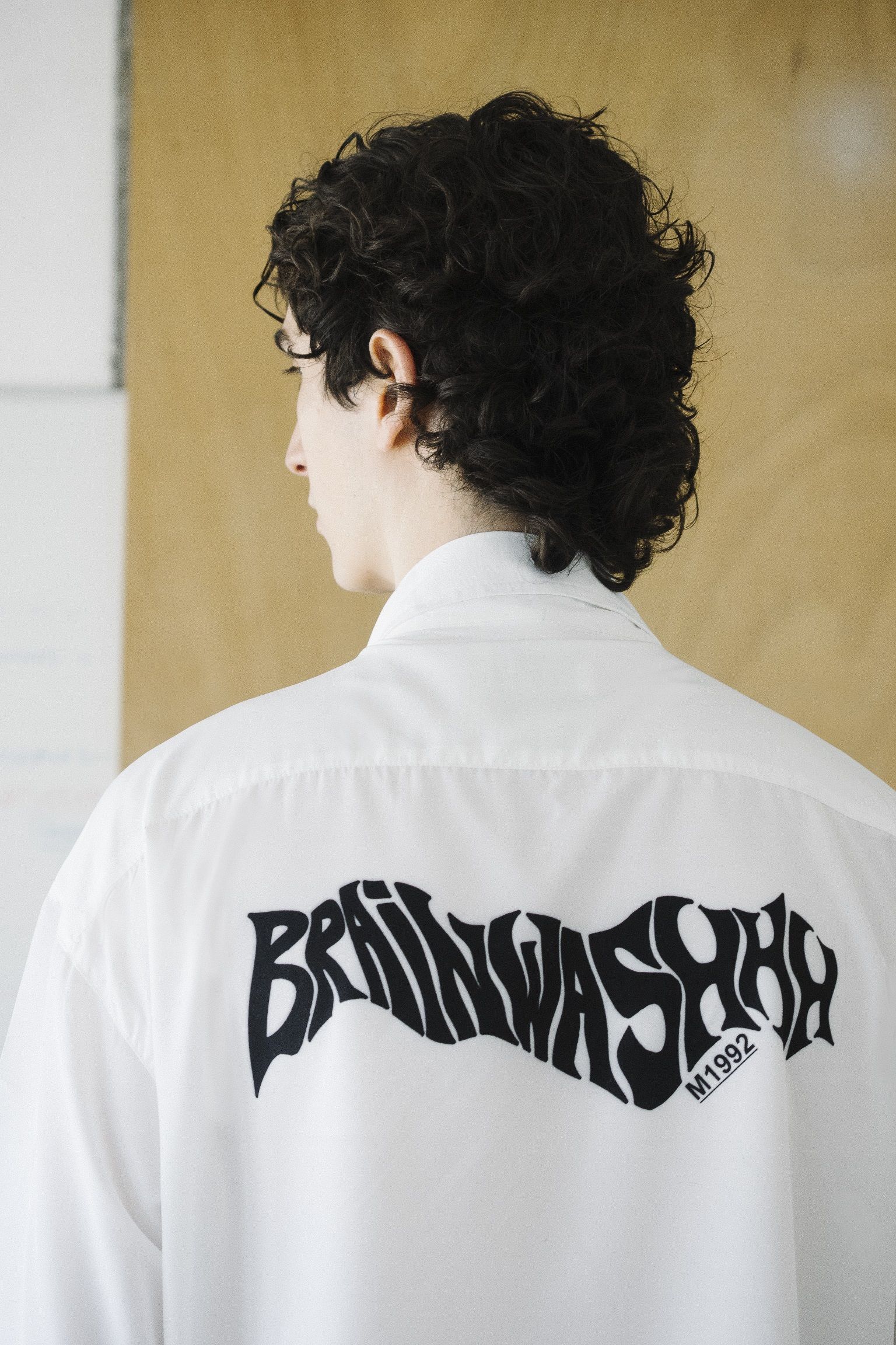 For the brand's new collection, designer Dorian Tarantini left the pants aside and focused on other items such as shirts and chain jewellery. Assuming that face-to-face encounters in the virtual world have launched the new dress code of the season (and that not wearing pants can be truly liberating), the collection features a variety of statement prints, very dear to M1992, including the slogan "Brainwash" with a wavy, witty and Insta-provocative font.