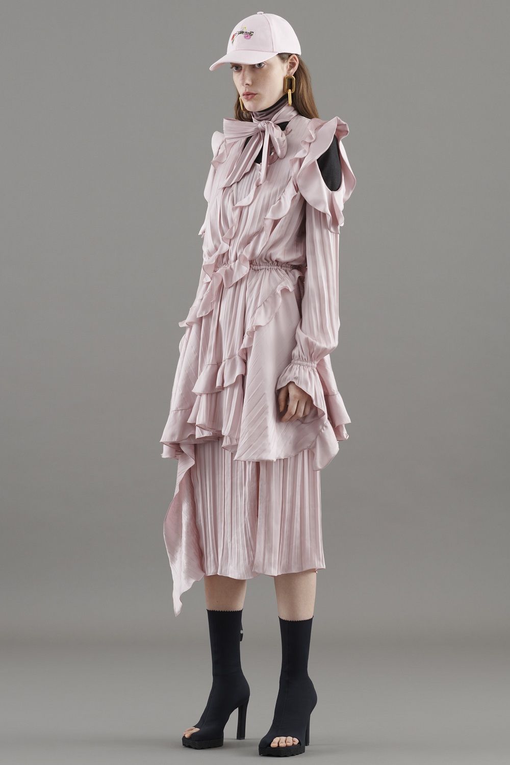 Also for the women's collection, entitled Bohemian Blur, tailoring is the key theme. From blush to pink, mauve to black, beige to grey, the shades dissolve into each other, creating a movement effect on jackets, puff sleeve shirts and cut out details, asymmetric skirts and cargo trousers. These "blurred" items alternate with romantic pleated and glittered dresses, basic pieces such as the classic white or blue shirt and others that will become essentials of the season's female wardrobe such as the red double-breasted blazer and the mini perfecto.