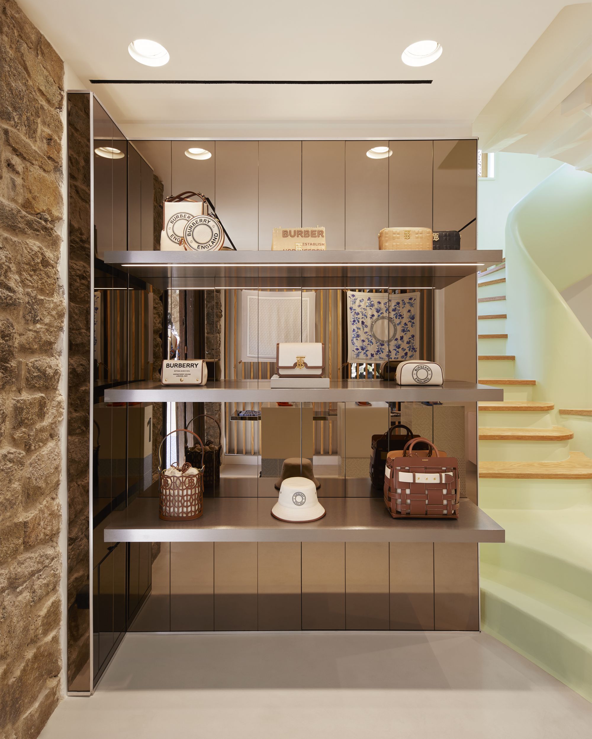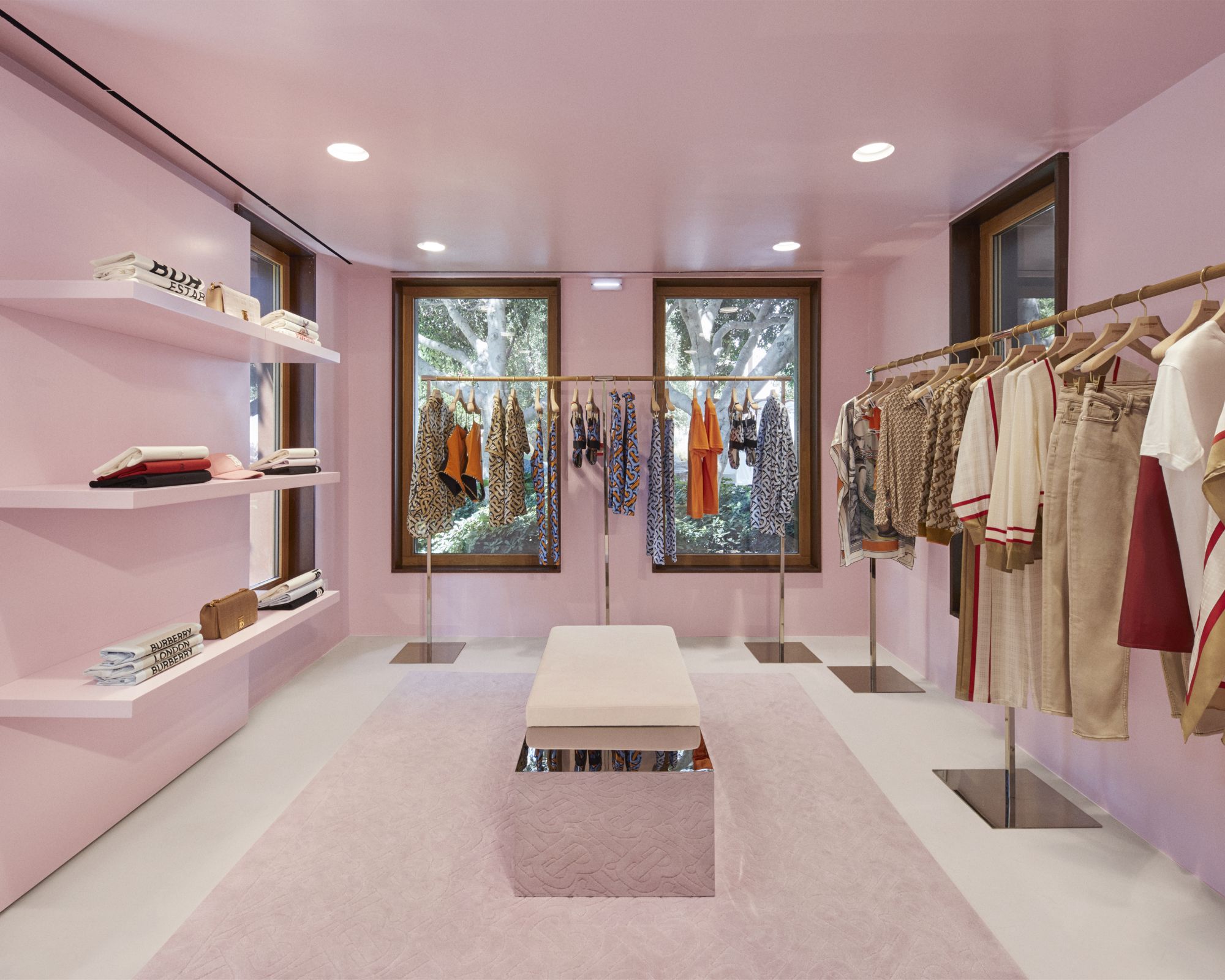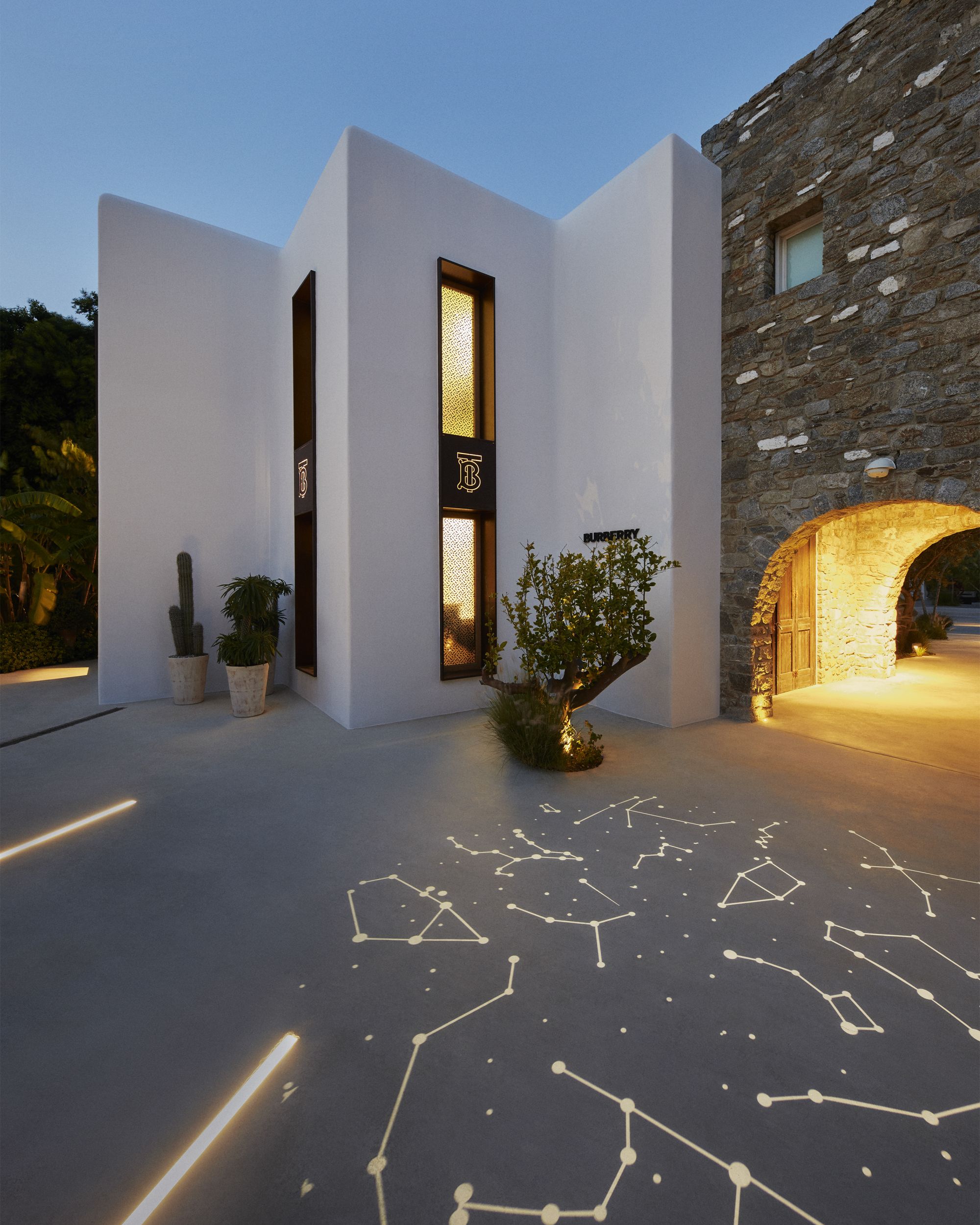 Despite being inspired by the spirit and attitude of the Regent Street store in London, the Burberry pop-up store in Nammos Village, Mykonos is a dip in the Mediterranean aesthetic. Immersed in nature, the structure is presented with a palette of pistachio and beige colors, enriched with blue and pink summer shades. Throughout the store, fixtures and details are built with a variety of materials and textures, from plywood to mirrored and glossy finishes. The outdoor terrace features a wooden pergola inspired by traditional Mykonos buildings, with TB Summer Monogram blue blue siding. The shop will be open until October 2020.