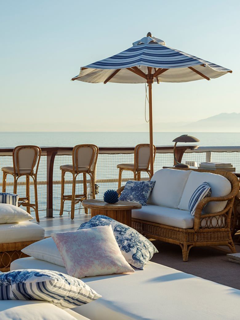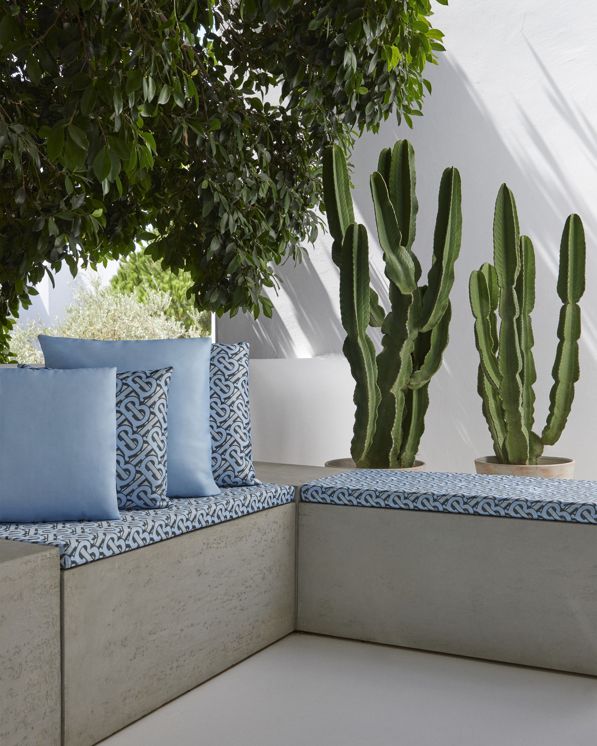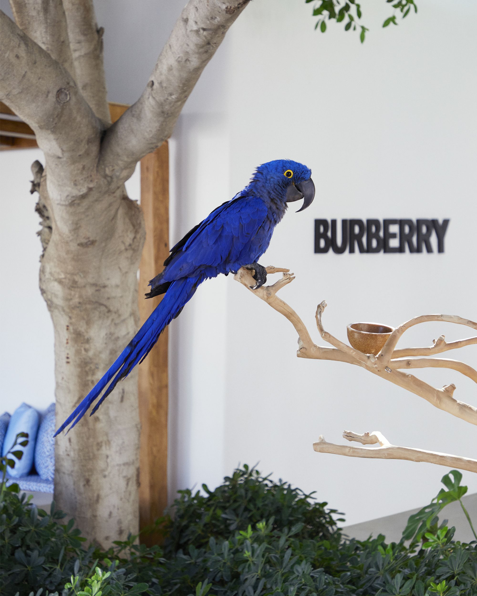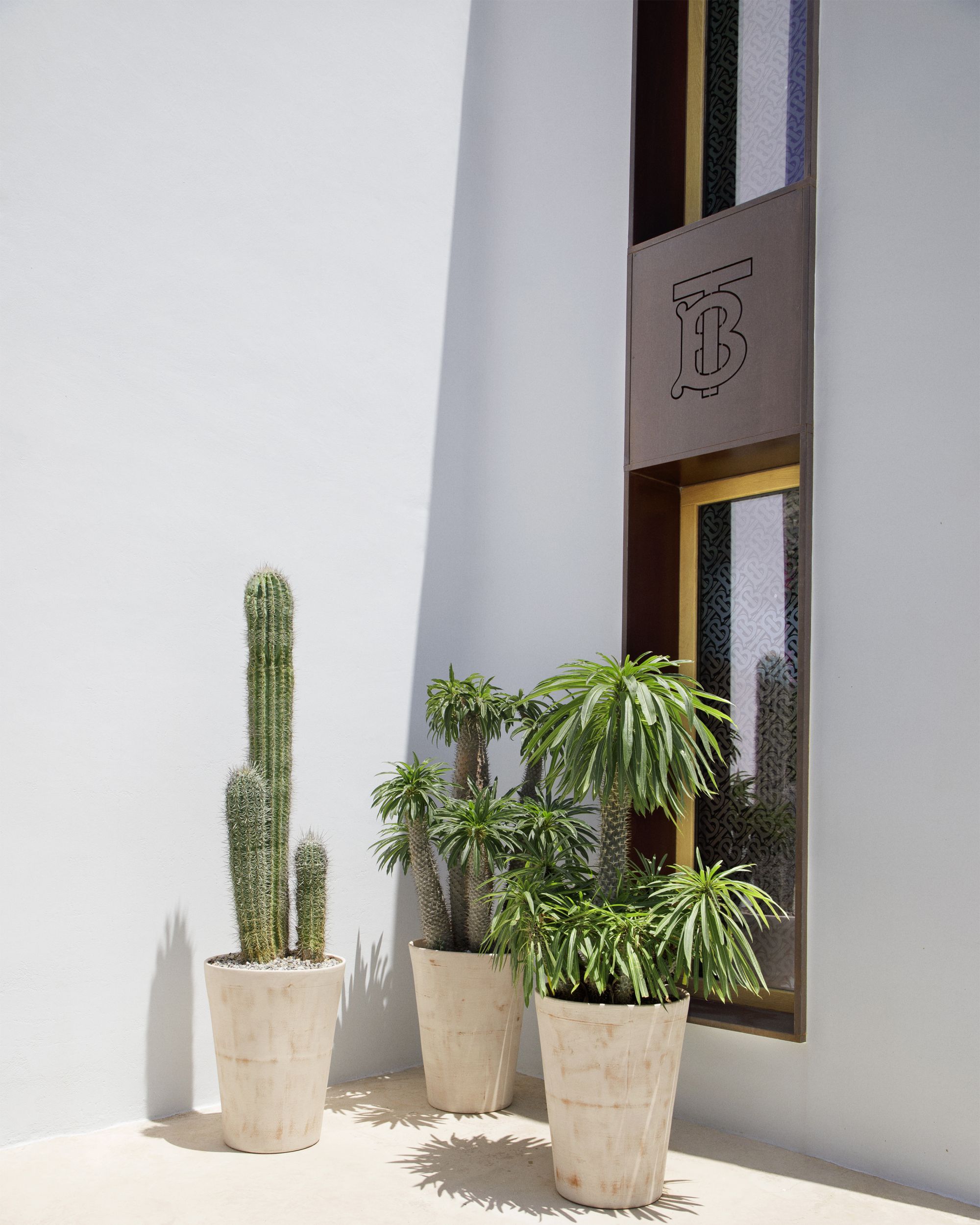 Despite being inspired by the spirit and attitude of the Regent Street store in London, the Burberry pop-up store in Nammos Village, Mykonos is a dip in the Mediterranean aesthetic. Immersed in nature, the structure is presented with a palette of pistachio and beige colors, enriched with blue and pink summer shades. Throughout the store, fixtures and details are built with a variety of materials and textures, from plywood to mirrored and glossy finishes. The outdoor terrace features a wooden pergola inspired by traditional Mykonos buildings, with TB Summer Monogram blue blue siding. The shop will be open until October 2020.