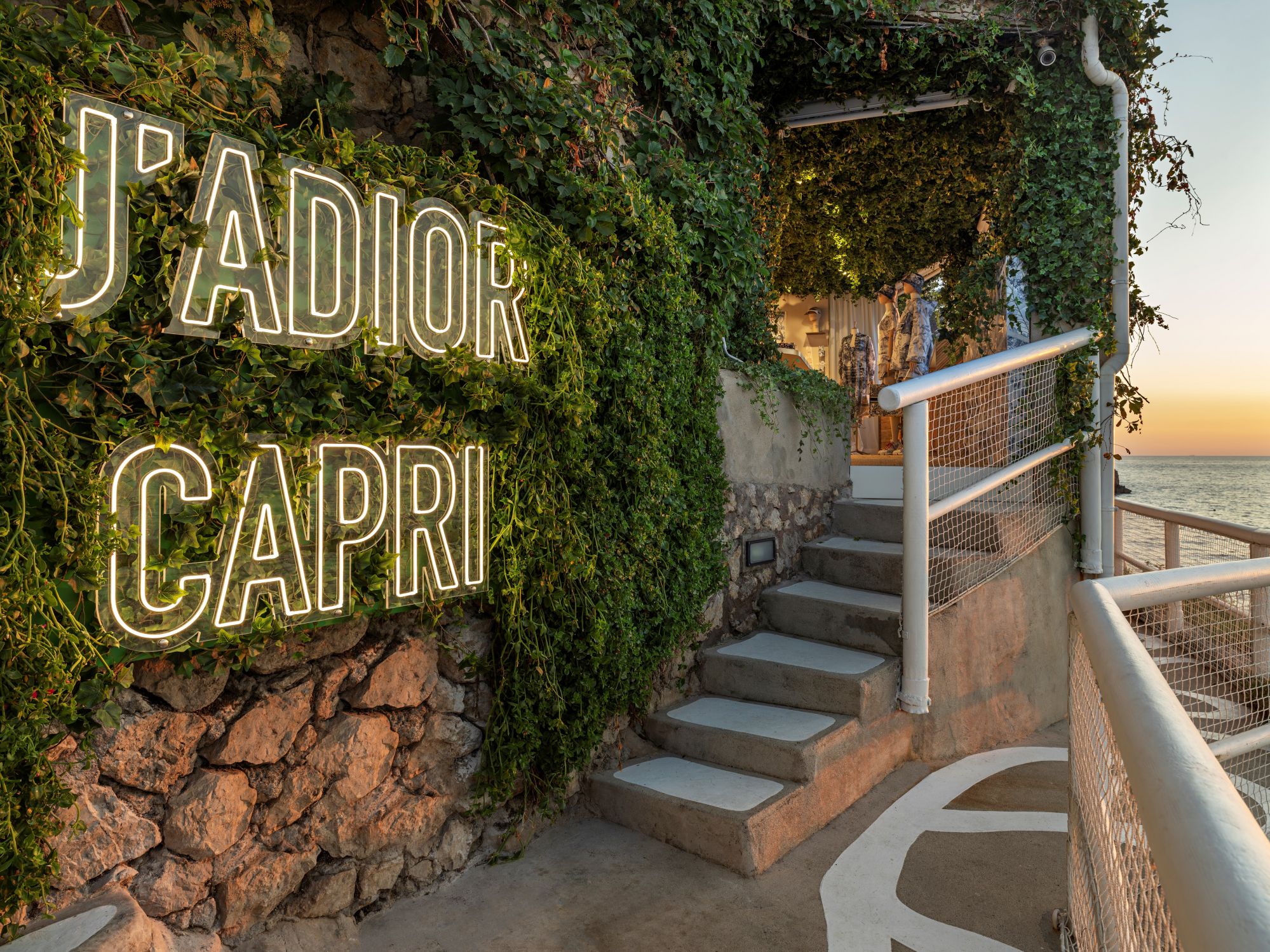 After enchanting the whole world with the show in Lecce, there is no doubt that Maria Grazia Chiuri has a penchant for the Mediterranean aesthetics. In confirmation of her love for the colors and atmospheres of the Italian summer, in June Dior opened a pop-up store in Capri: a unique store, built on the rock and overlooking the blue waters of the Mediterranean. "We have emphasized the relationship with the lush nature that surrounds the space, leaving creepers free to enter and opening the sea wide open," explained Claudia Campone, founder of the THiRTYONE architecture studio; "The result is an en-plein-air store that offers an immersive brand experience."