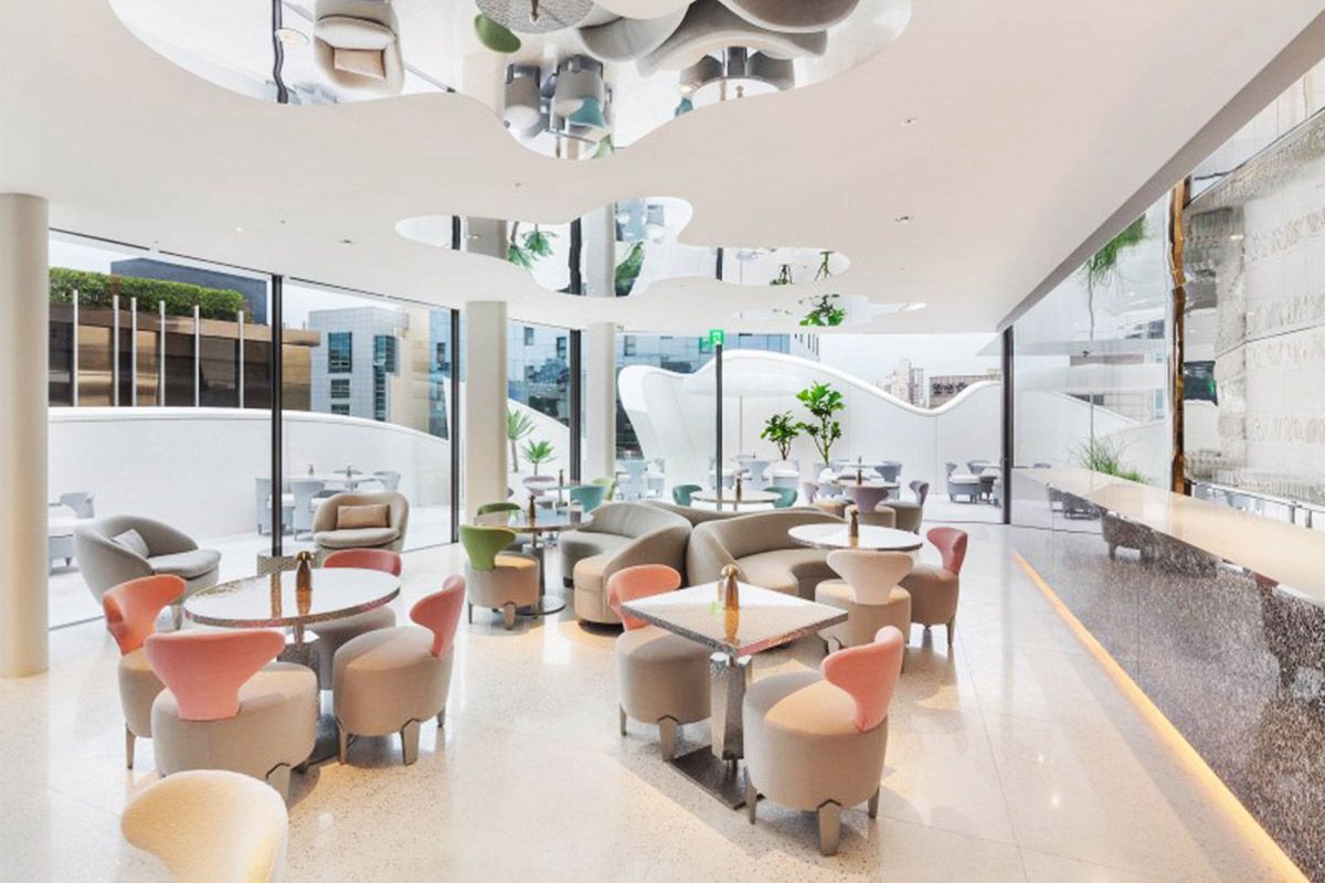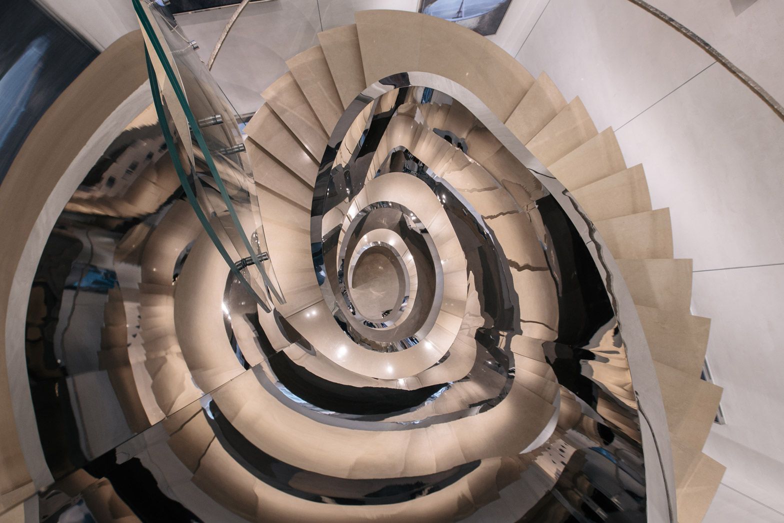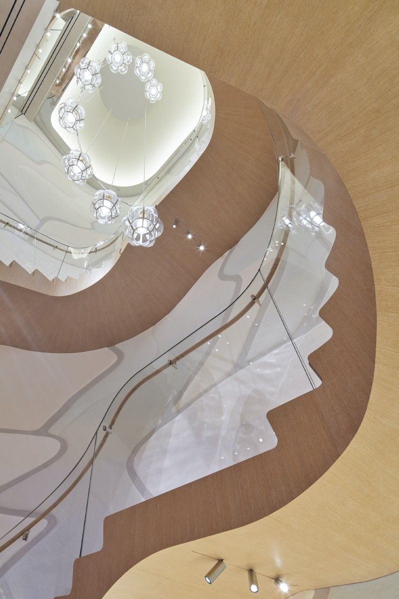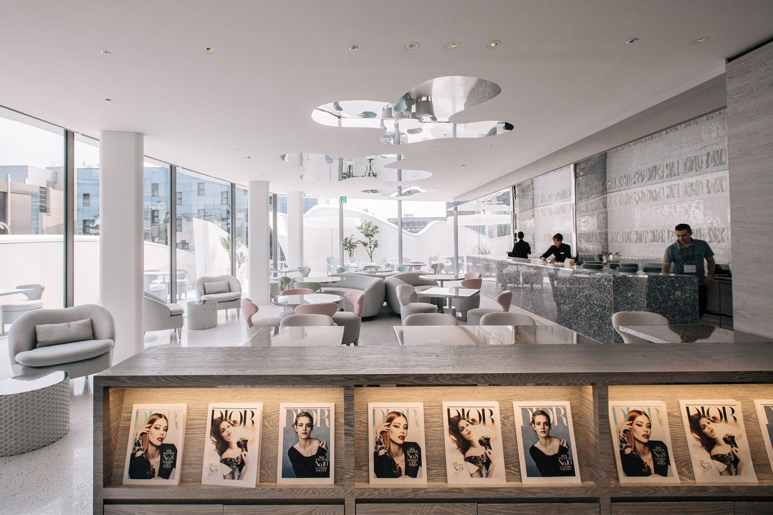The Dior flagship store in Seoul, South Korea could not be more different from the summer shop in Capri, which manages to blend in among the creepers of the Mediterranean scrub. On the contrary, it is a decidedly more sumptuous and imposing building. Inaugurated in the summer of 2015, the store has a white sculptural facade built on a sail-shaped structure, made of resin glass and fiberglass. Inside, a staircase guides customers through the various collections, up to the top floor, where the shopping day ends with a drink at Café Dior.