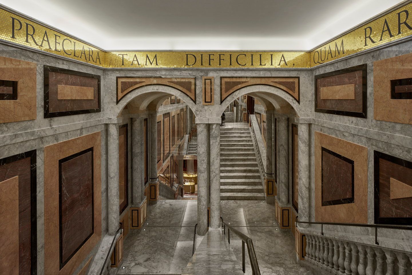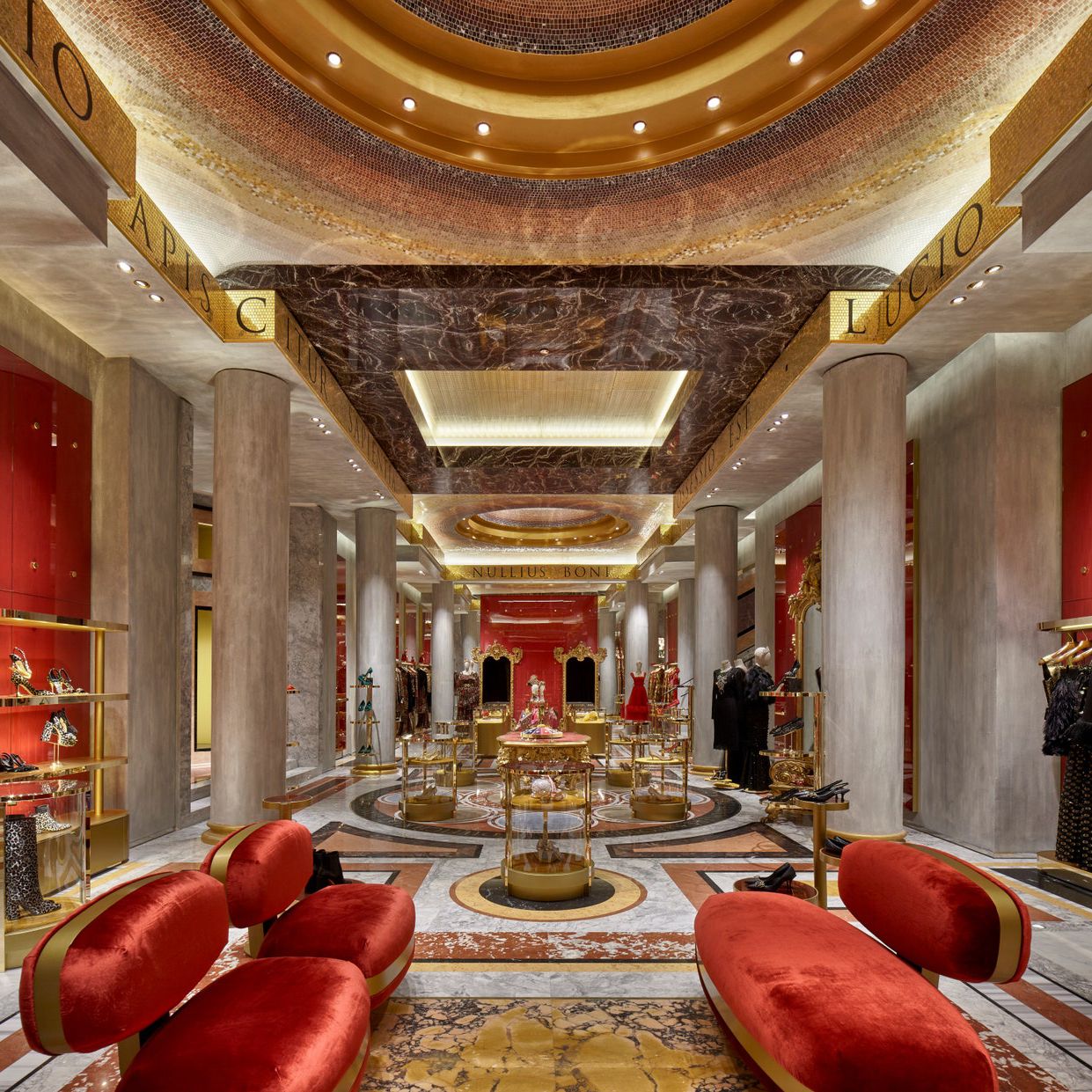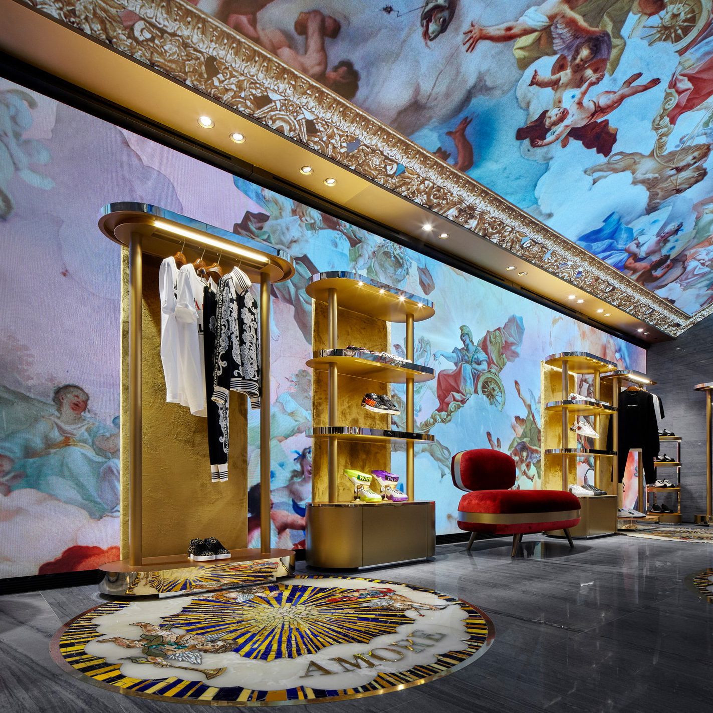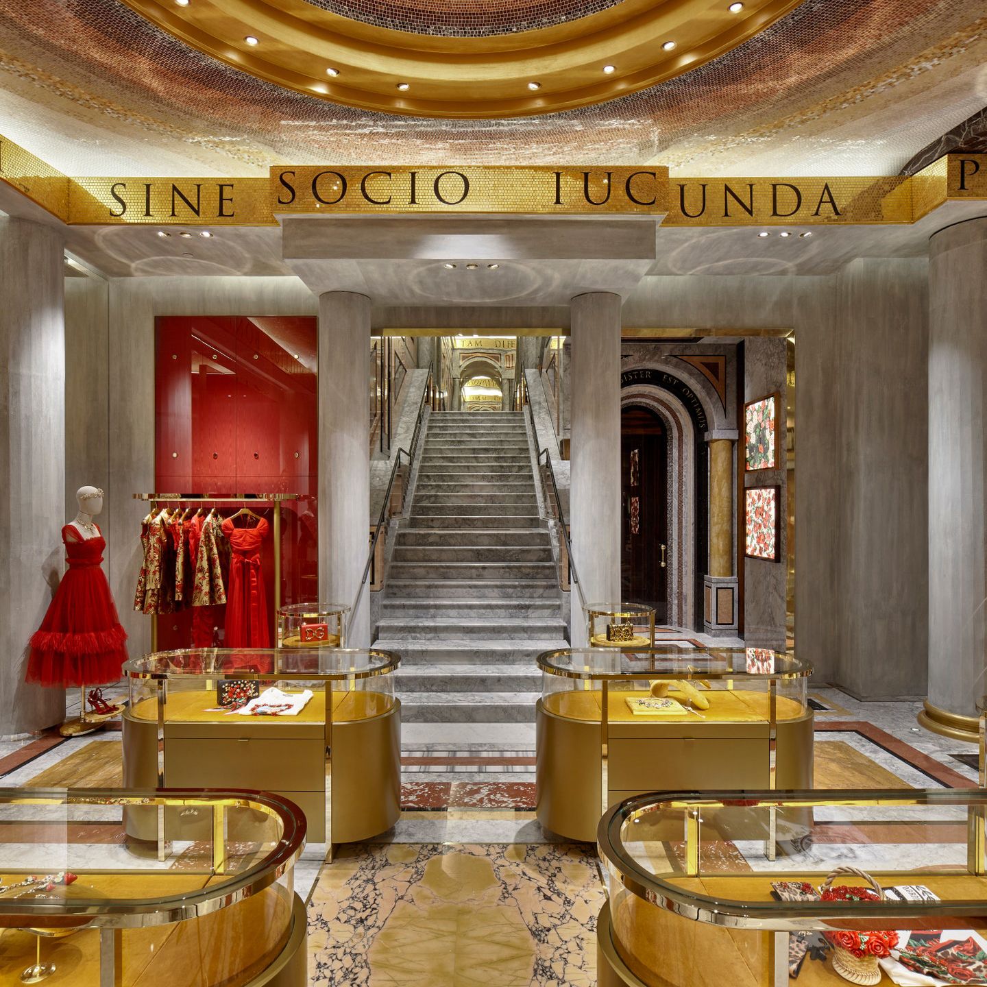 Dolce & Gabbana has never been famous for its sobriety. On the contrary, thanks to its baroque and exaggerated attitude, over the years it has designed the image of a new Italian aesthetic in the world. Their boutique in Piazza di Spagna, in Rome, the heart of the Eternal City, the capital of Italian history and culture, could not be less. Housed within the walls of a majestic sixteenth-century palace, the shop looks like a real Roman temple made of marble, mosaics and frescoes. Spread over two floors, it was designed in collaboration with the architect Eric Carlson.