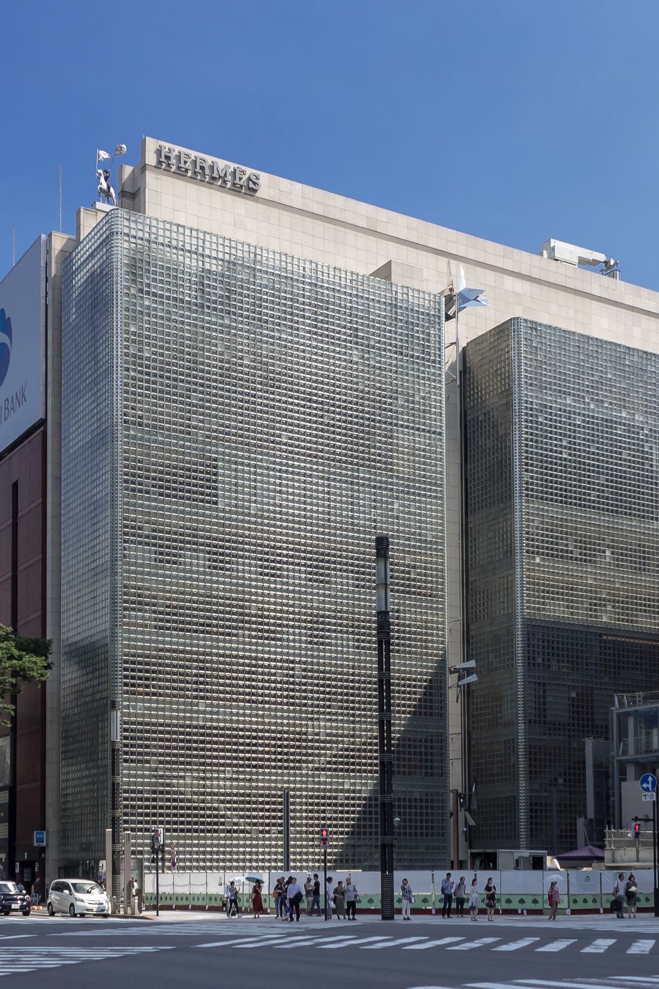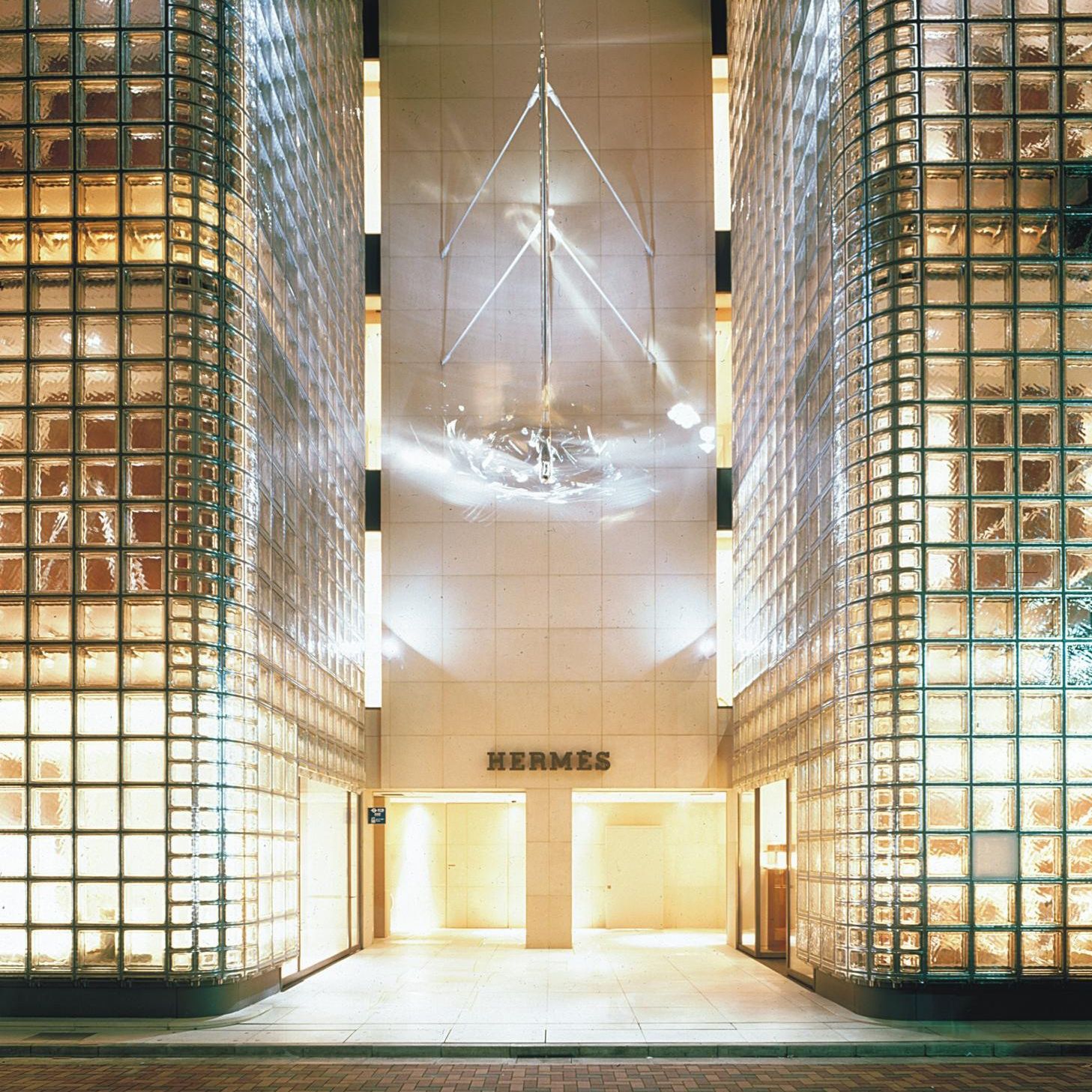 Before opening the Parisian boutique in Rue de Sèvres, transforming the Art Deco spaces of the Lutetia public swimming pool into a store, the French group Hermès had already come into contact with the world of architecture for the construction of its Japanese headquarters, in the district Ginza, Tokyo. The building project (6000 square meters of commercial space, workshops, offices, exhibition and multimedia areas, completed with a French-style roof garden) was entrusted to an Italian team: the architect Renzo Piano and the Italian company Seves - Divisione Vetroarredo di Firenze, which produced an experimental glass brick to cover the entire facade of the building. "The plan by architect Piano for the Hermès house in Tokyo represents the highest contribution of the 20th century to the architecture of glass brick," commented Enrico Basso, CEO of Seves at the time. The architectural poetics achieved by the work inspired by the famous Maison de Verre in Paris, (1928 - 1932) designed by Pierre Chareau and Bernard Bijvoet.