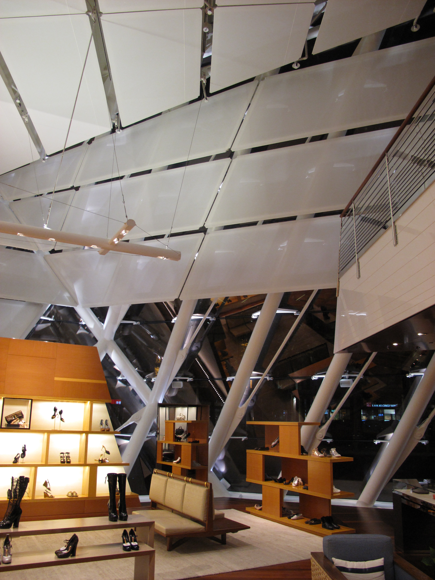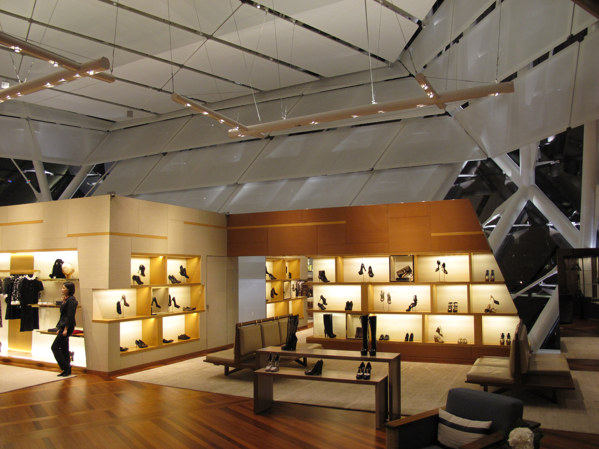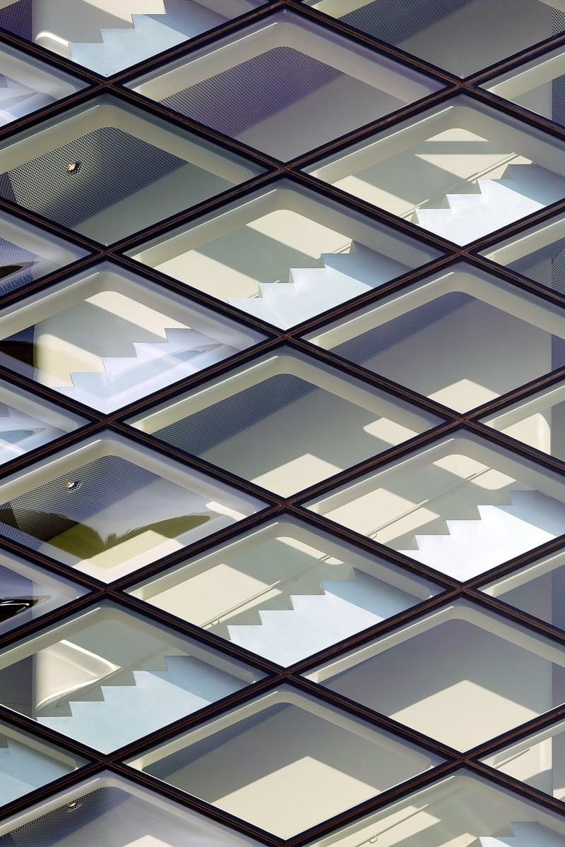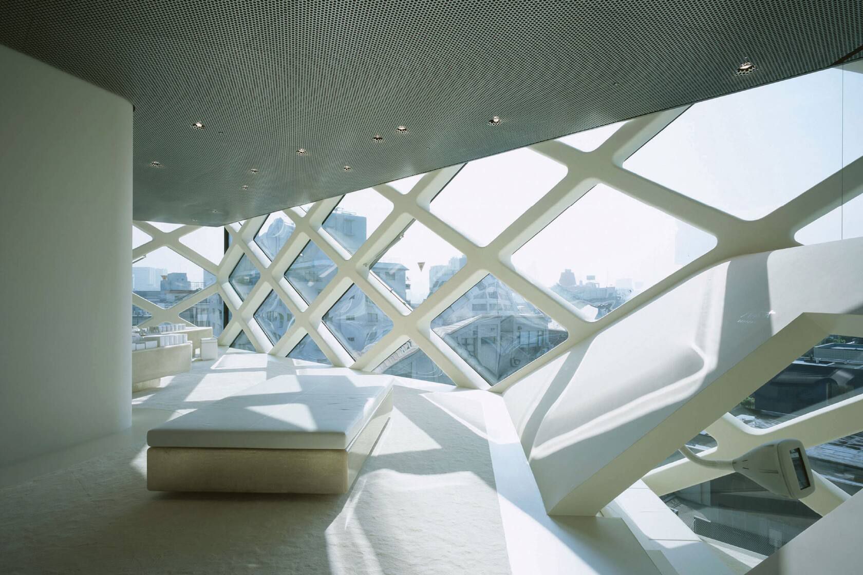 In 2001, almost simultaneously with the opening of the Epicenter in New York, Prada together with the Swiss architects Herzog & de Meuron designed its second Epicenter, this time in Tokyo. The building, built on six floors, is located in the district of Aoyama and is one of the most recognizable architectural works of the city: in particular it is characterized by a diagonal grid that intertwines under the eyes of the public, covered by a glass facade green that focuses on various optical phenomena between the outside and the inside.