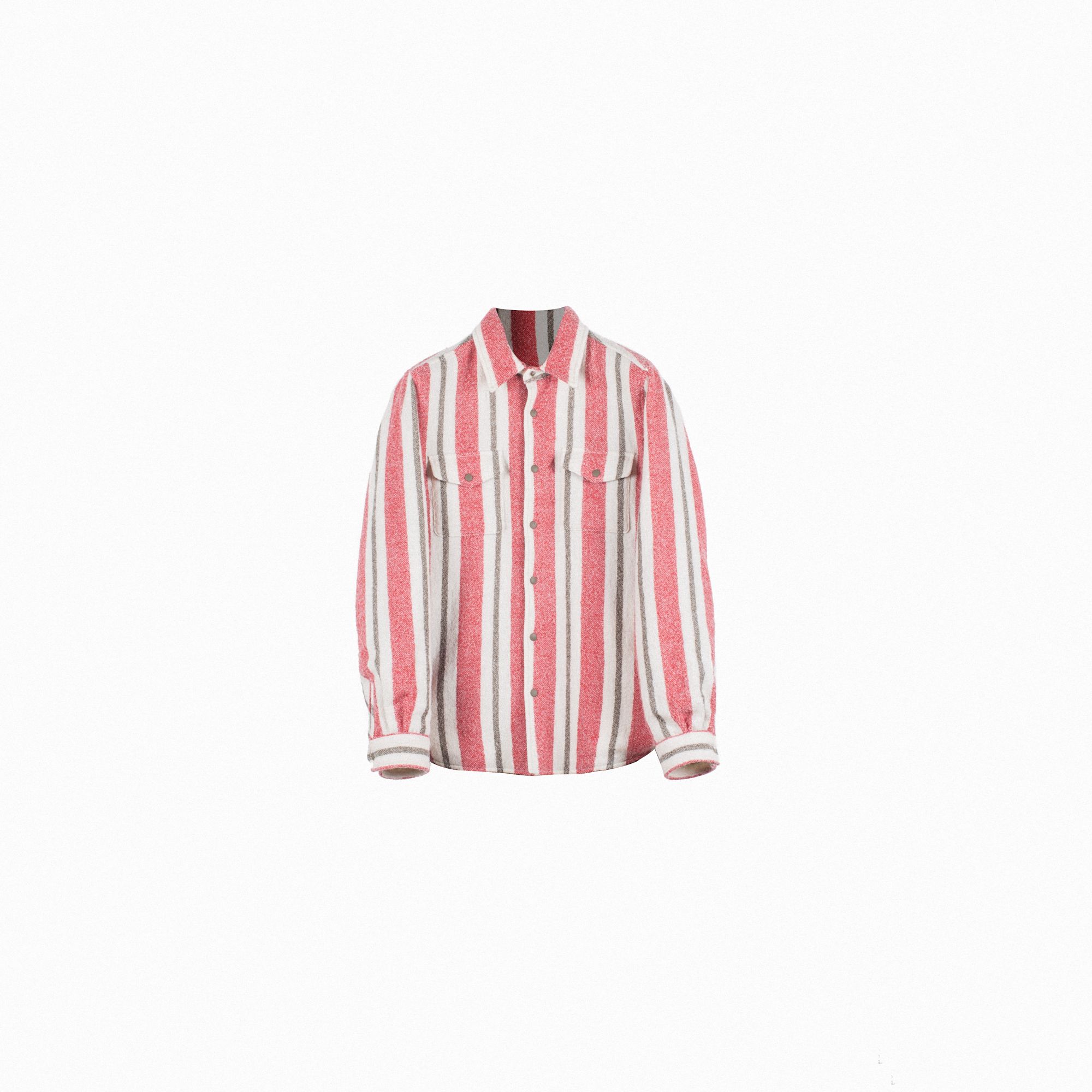 For the Men collection, however, the velvet shirts are enriched with different blouson details, while the overshirts in tailored materials are enriched with workwear details. Military satin is used for zipped shirt-jackets, alongside slightly padded flannel shirts. Finally, colorful Baja stripes vibrate on the checker shirts and the bleached effects introduce a grunge touch.