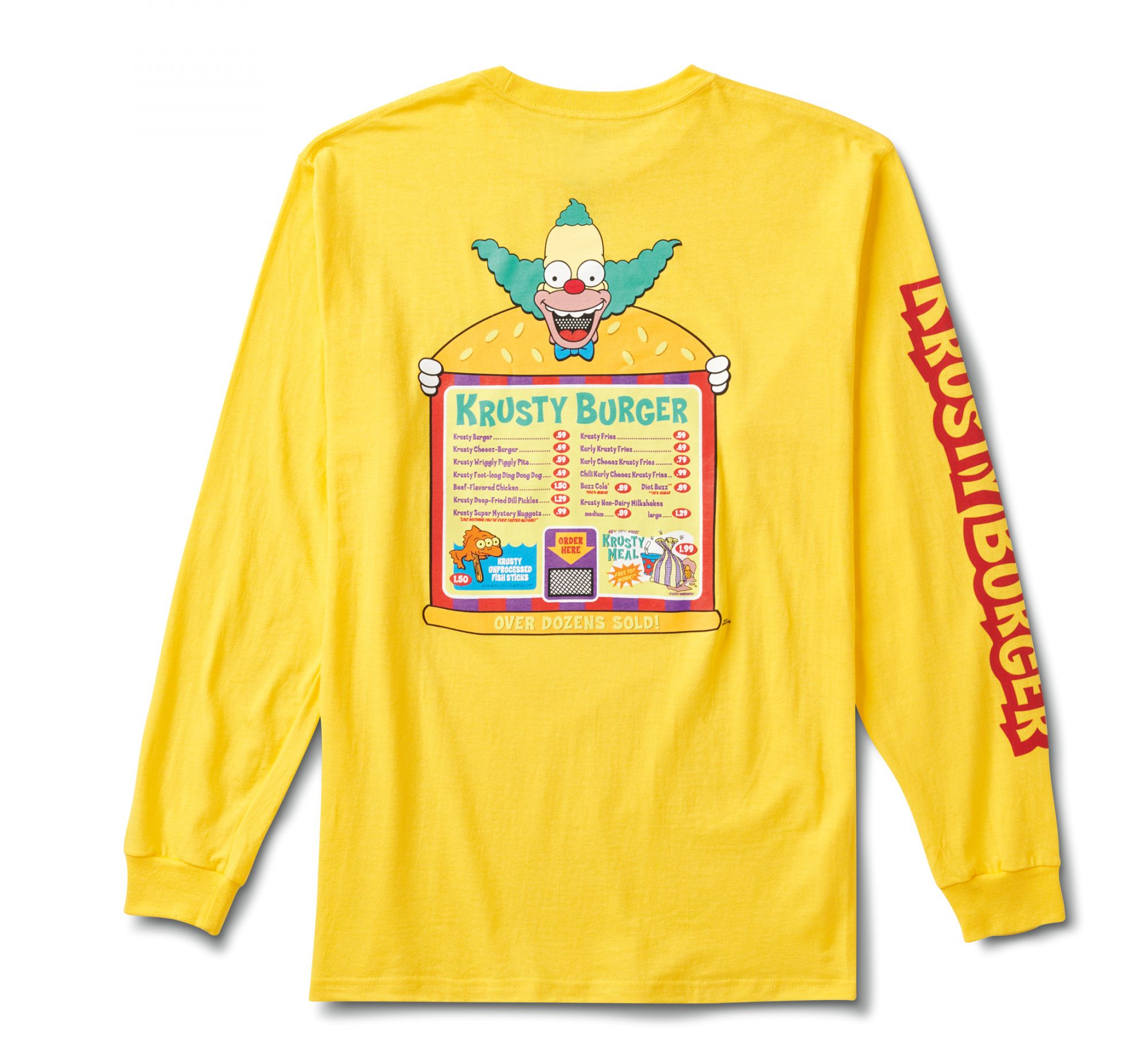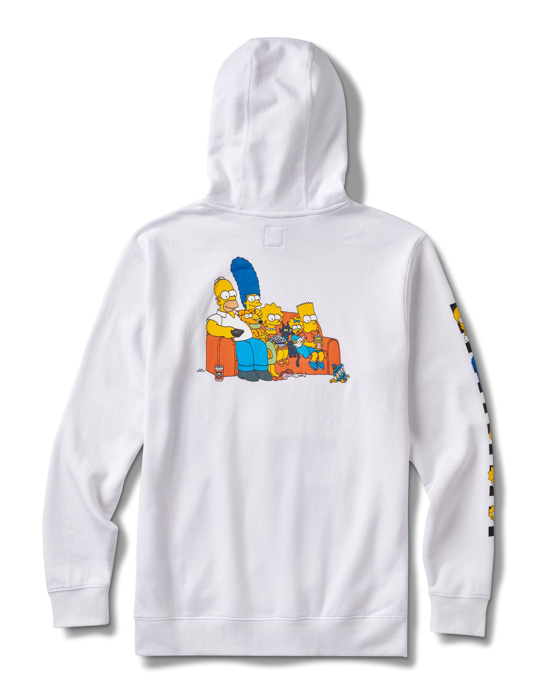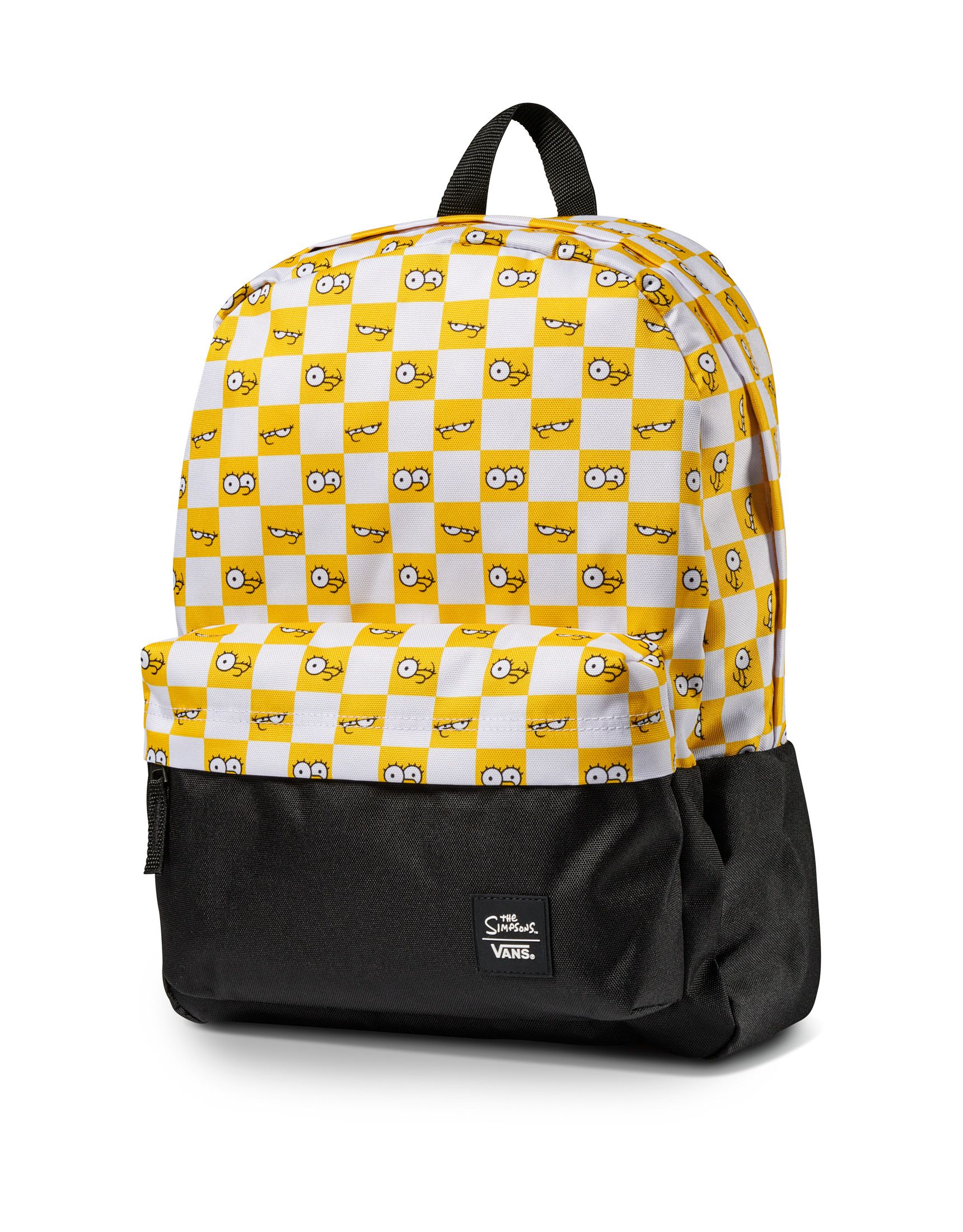 Talking about the clothes selection, there is the fleece dedicated to Lisa, a crew neck model with a fluorescent "Lisa Simpson for President" print; the Simpsons Check backpack with the iconic Vans checkerboard print in Simpson yellow; a short-sleeved t-shirt with the logo on the chest and a family scene on the back; a hoodie in two colors, black and white, but also the blue hoodie with Bart's skull on the back and on the chest. But the highlight is the Otto Disc tie-dye t-shirt, along with the long-sleeved t-shirt dedicated to Krusty the Clown, with the Krusty Burger logos on the left sleeve and the menu printed on the back. Finally, the socks with checkerboard motif.
