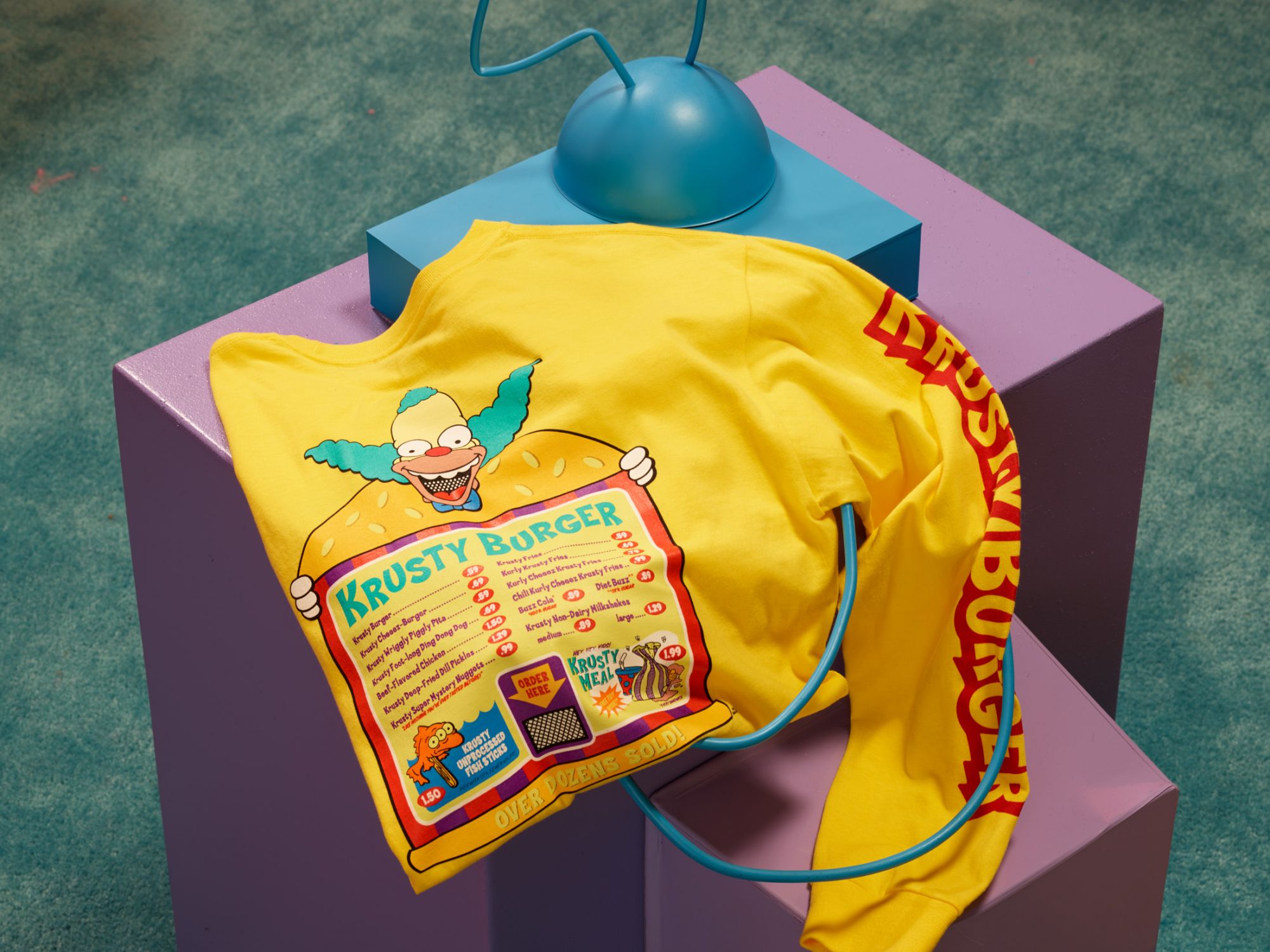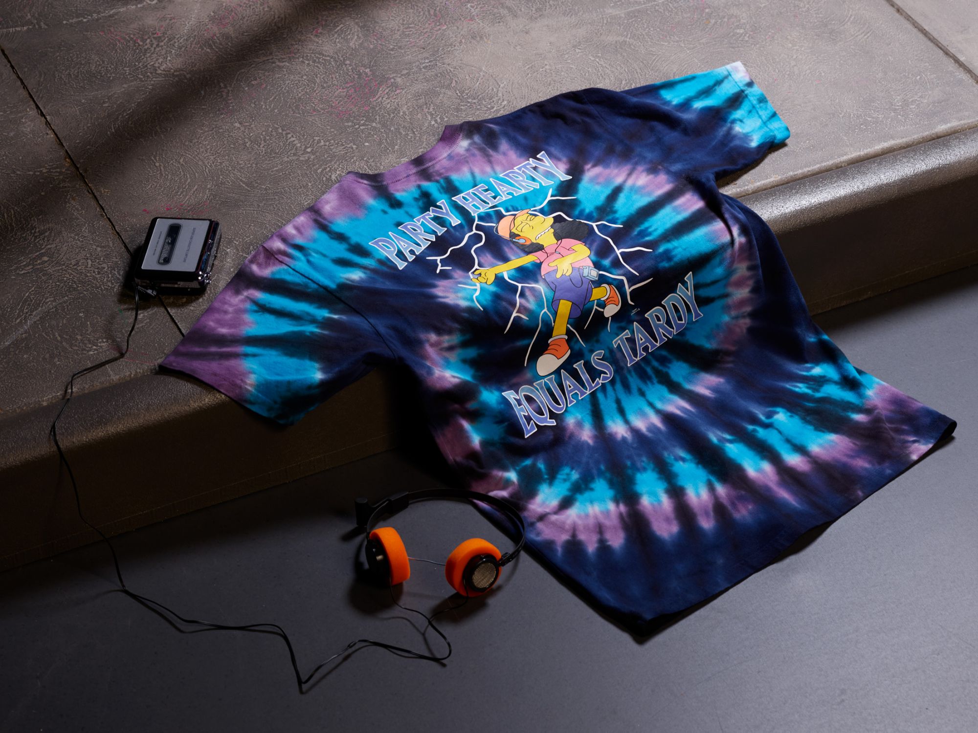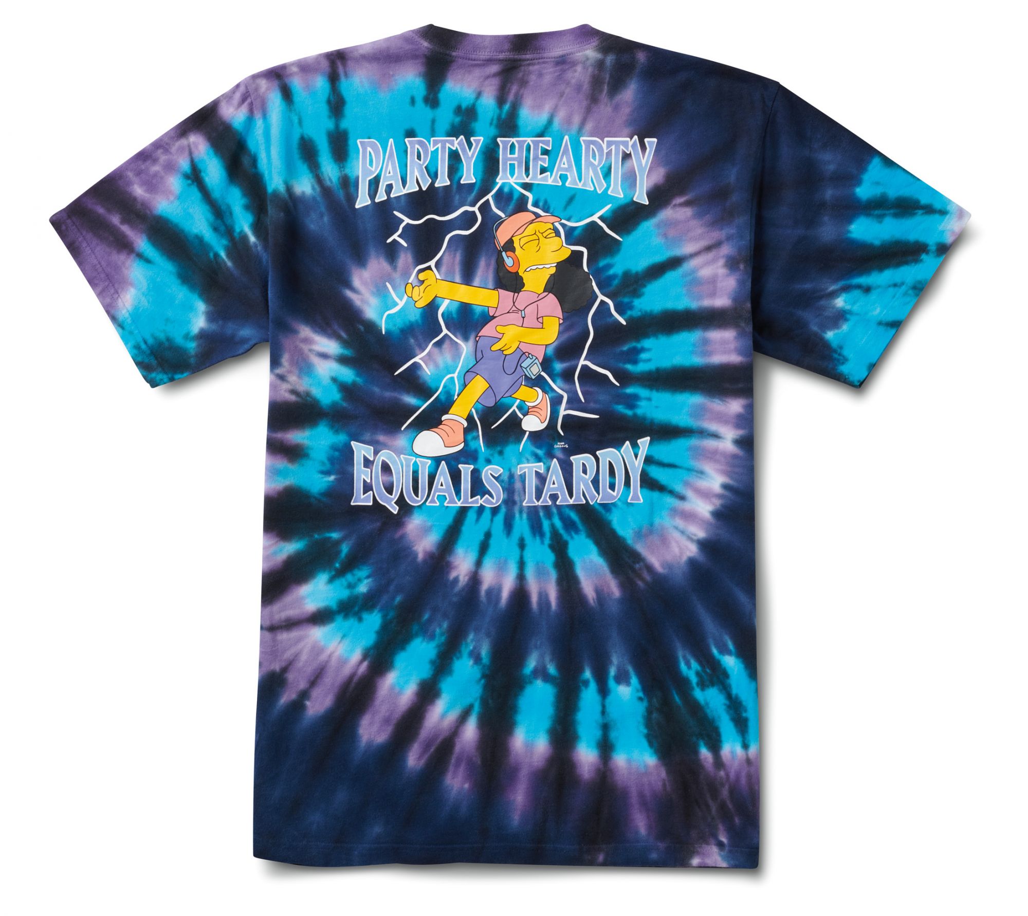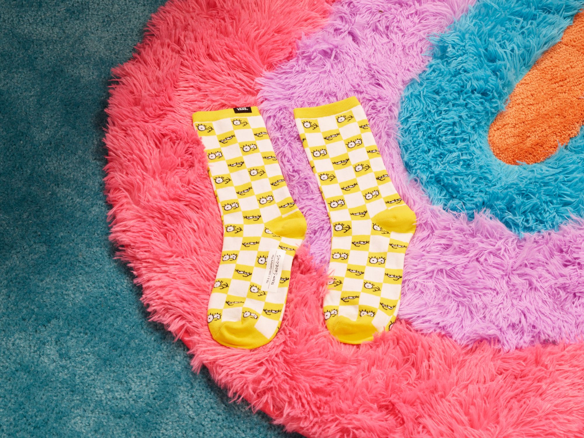Talking about the clothes selection, there is the fleece dedicated to Lisa, a crew neck model with a fluorescent "Lisa Simpson for President" print; the Simpsons Check backpack with the iconic Vans checkerboard print in Simpson yellow; a short-sleeved t-shirt with the logo on the chest and a family scene on the back; a hoodie in two colors, black and white, but also the blue hoodie with Bart's skull on the back and on the chest. But the highlight is the Otto Disc tie-dye t-shirt, along with the long-sleeved t-shirt dedicated to Krusty the Clown, with the Krusty Burger logos on the left sleeve and the menu printed on the back. Finally, the socks with checkerboard motif.