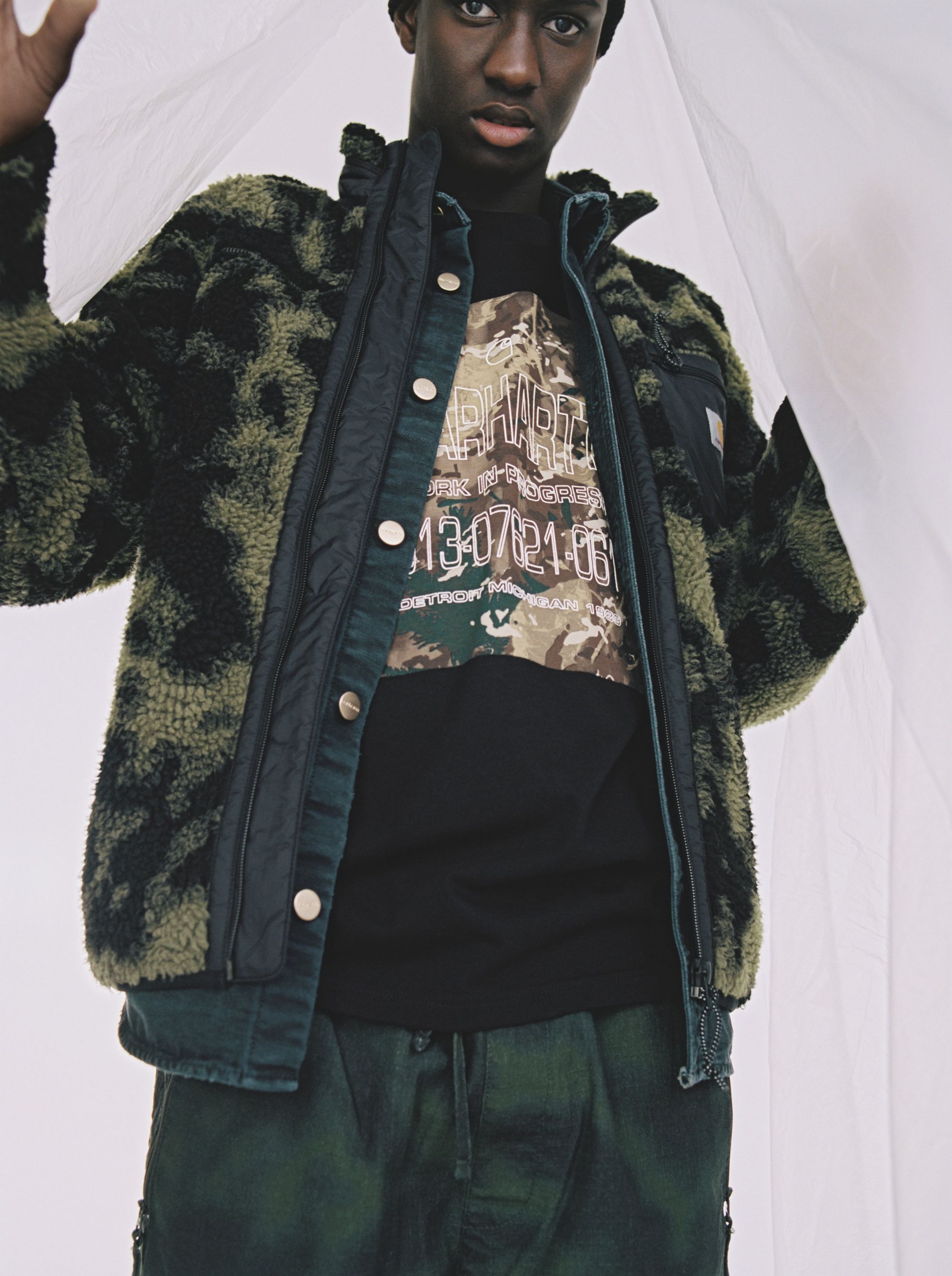 The new collection incorporates some archive pieces and the classic themes of Carhartt WIP, but moves towards the world of workwear, practicality and functionality. The traditional aesthetic of the brand thus finds a new setting, reinterpreting the shapes and motifs typical of hunting clothing, especially camouflage. Not only that: mixing the canvas elements that have always characterized the brand with more functional details, the collection consists of futuristic-cut garments in which workwear takes on a new, contemporary, more fluid configuration.