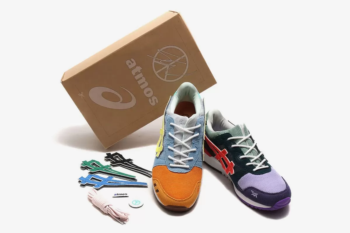 Characterized by corduroy already seen in the now famous Air Max 97/1, the sneaker created together with atmos celebrates the thirty years of Asics GEL-Lyte III. In addition to a color scheme very similar to that already used by Wotherspoon in its collaboration with Nike, the shoe will re-propose the use of removable parts thanks to the use of velcro. In addition to the sneaker, the collection also includes tote bags, satchels and t-shirts coordinated with the colors of the shoe.