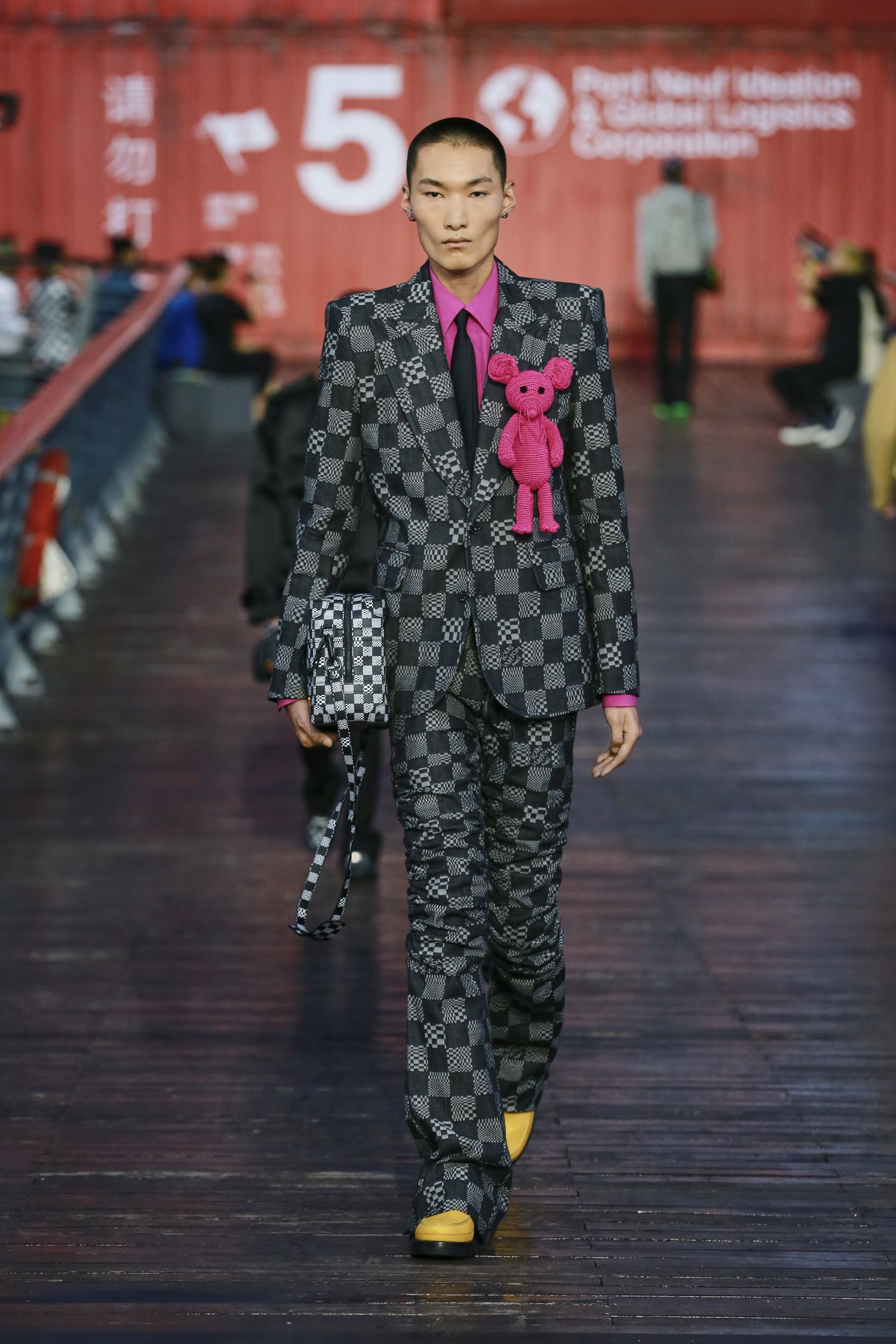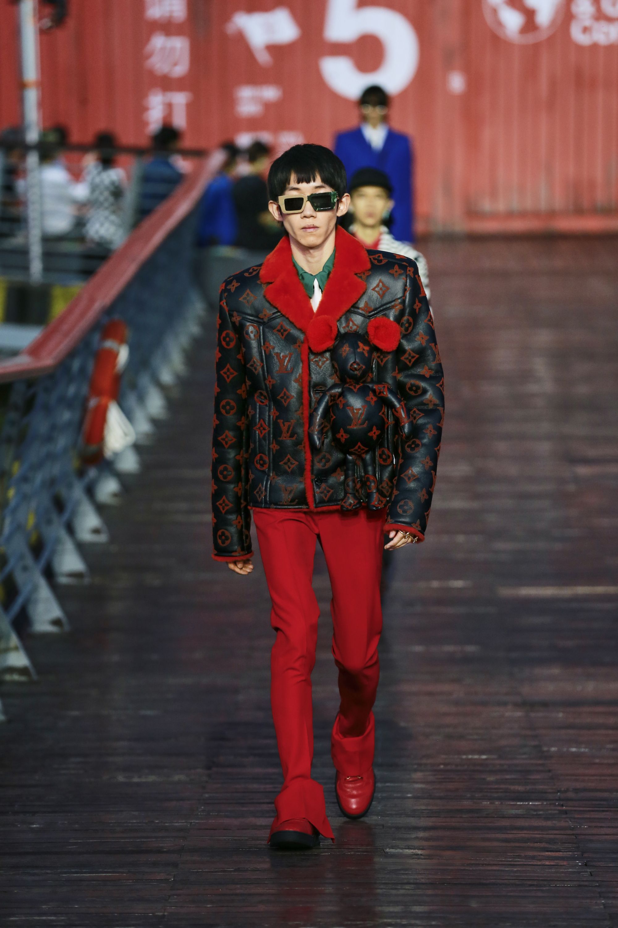 The journey initially began in Paris with this band of animated characters called Zoom with friends who were captured loading their LV trunks in shipping containers and sailing down the river Seine. Destination: Shanghai, China. Upon their arrival, the collection was literally unpacked and unfolded by a port in Shanghai, where the show was physically host. With an audience of local editors, models walked directly from the shipping containers as if they had all been a part of the shipment, with the “Zoom with friends” characters coming to life on a few of the looks.