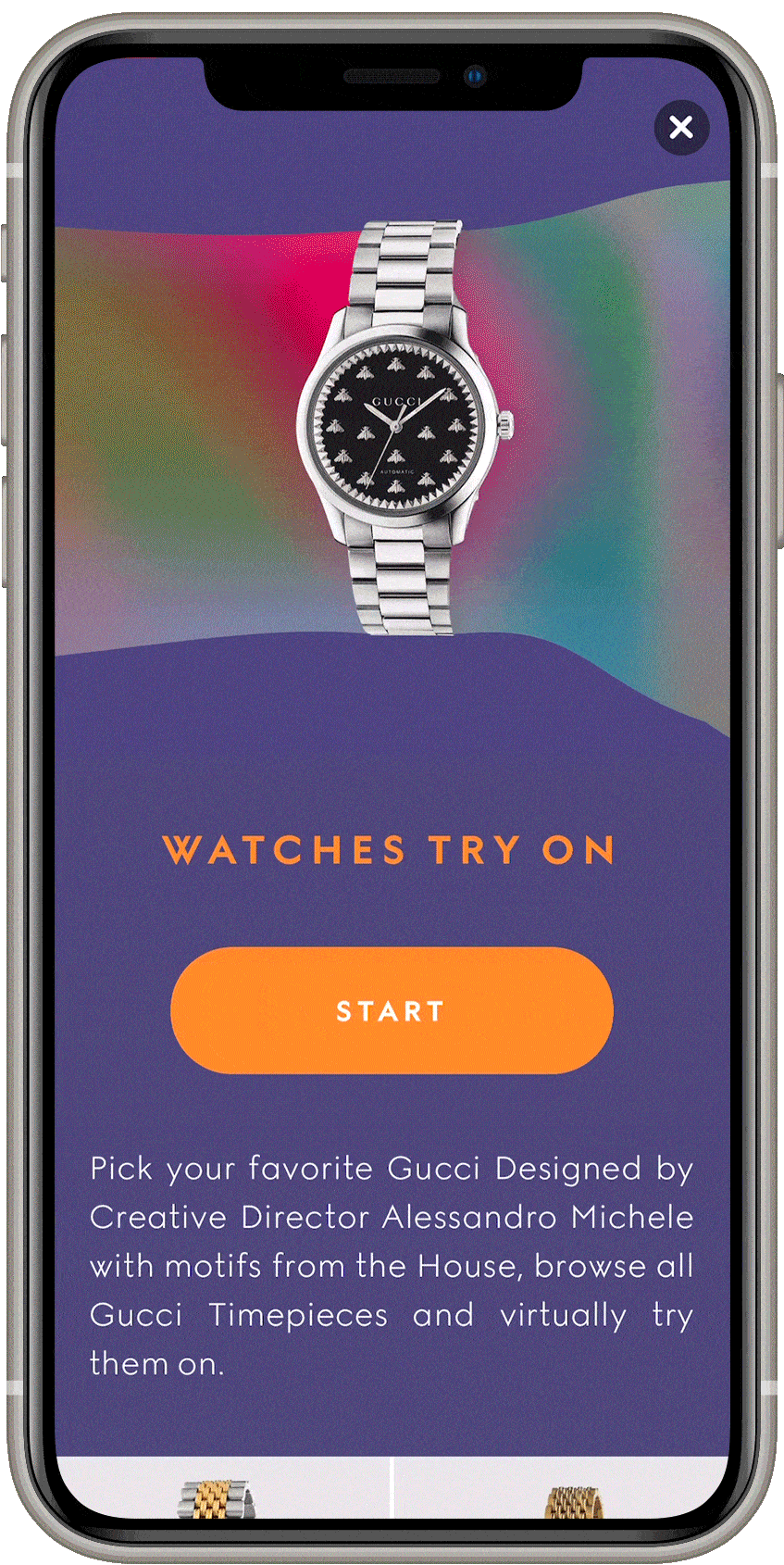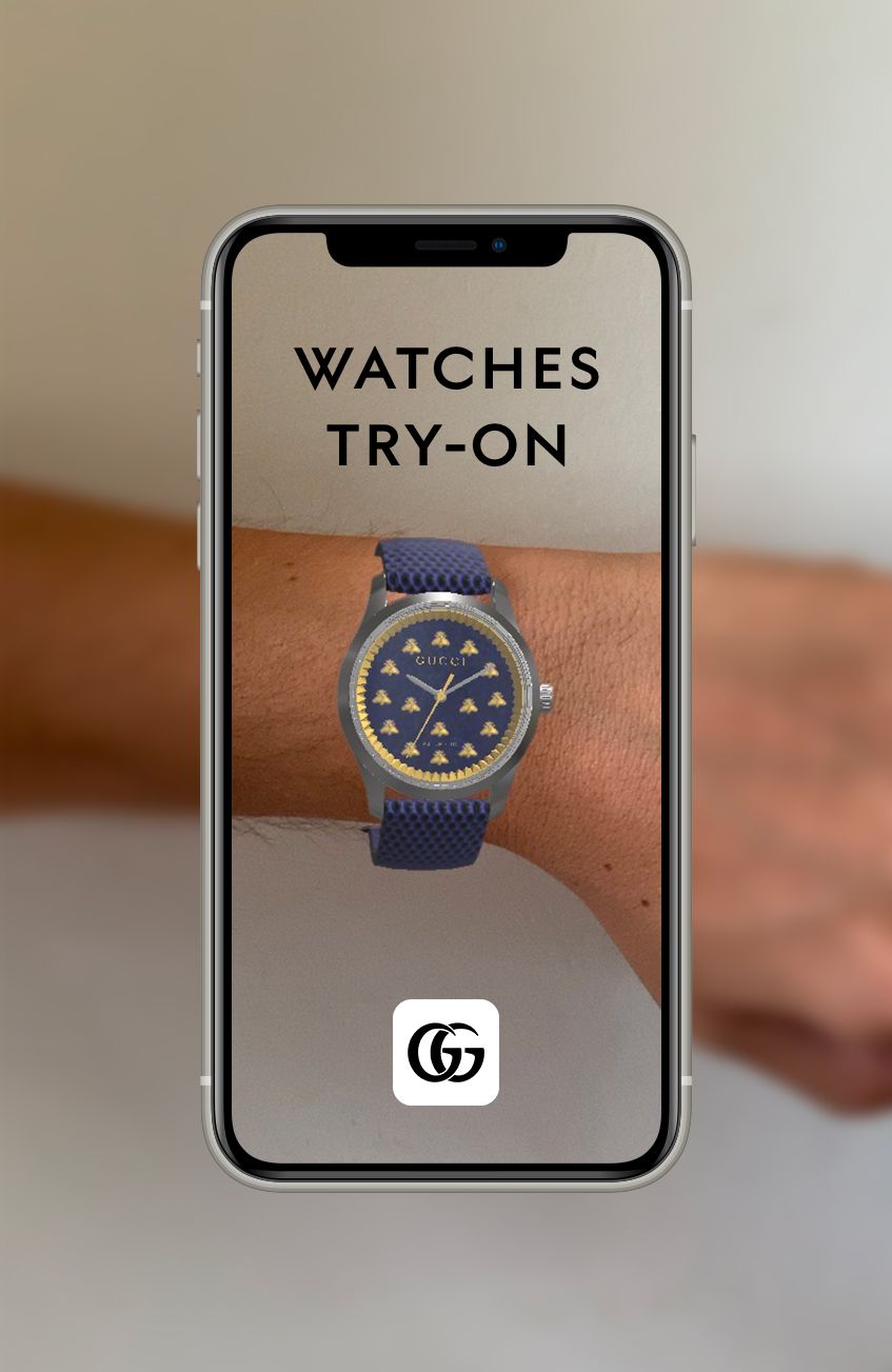 After being revolutionized in its entirety a few months ago, today the Gucci App sees the introduction of a new possibility. The technology will enable Gucci to present the newest models of Gucci watches to its fans and provide an engaging experience and an opportunity to interact with these pieces. Gucci collaborated for the second time with Wannaby, developer of shoe AR technology for the House. Through augmented reality, users can explore what Gucci watches might look like to wear. People pick the watch of their choice on-screen, point their mobile device’s camera towards their wrist and virtually ‘try on’ the timepiece. Notably, Gucci is the first fashion brand to introduce markerless watch AR technology on its App, meaning that the watch appears directly on the user’s wrist without the need for any specialised equipment, apart from a phone. Users are also able to take photos of themselves virtually ‘wearing’ their favourite watch and share these on social media platforms.