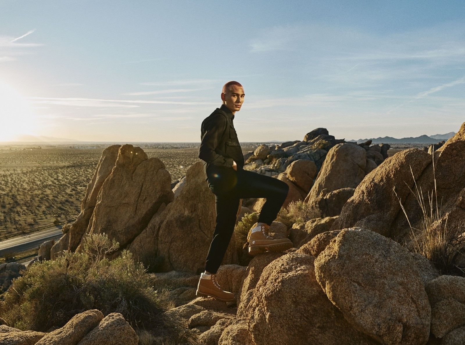 Evan Mock is the face of Jimmy Choo x Timberland's new collaboration With a campaign shot in the desert by Cole Sprouse