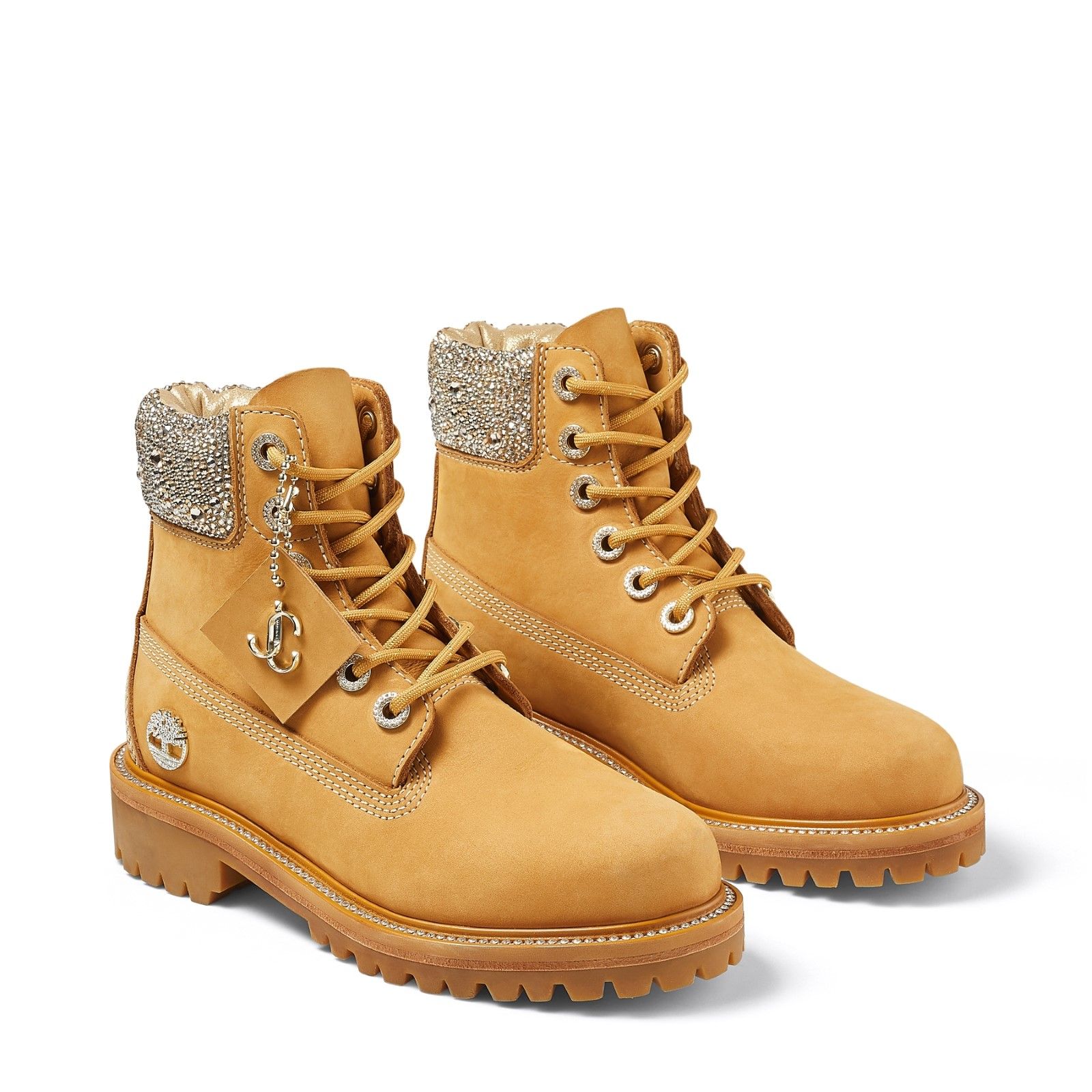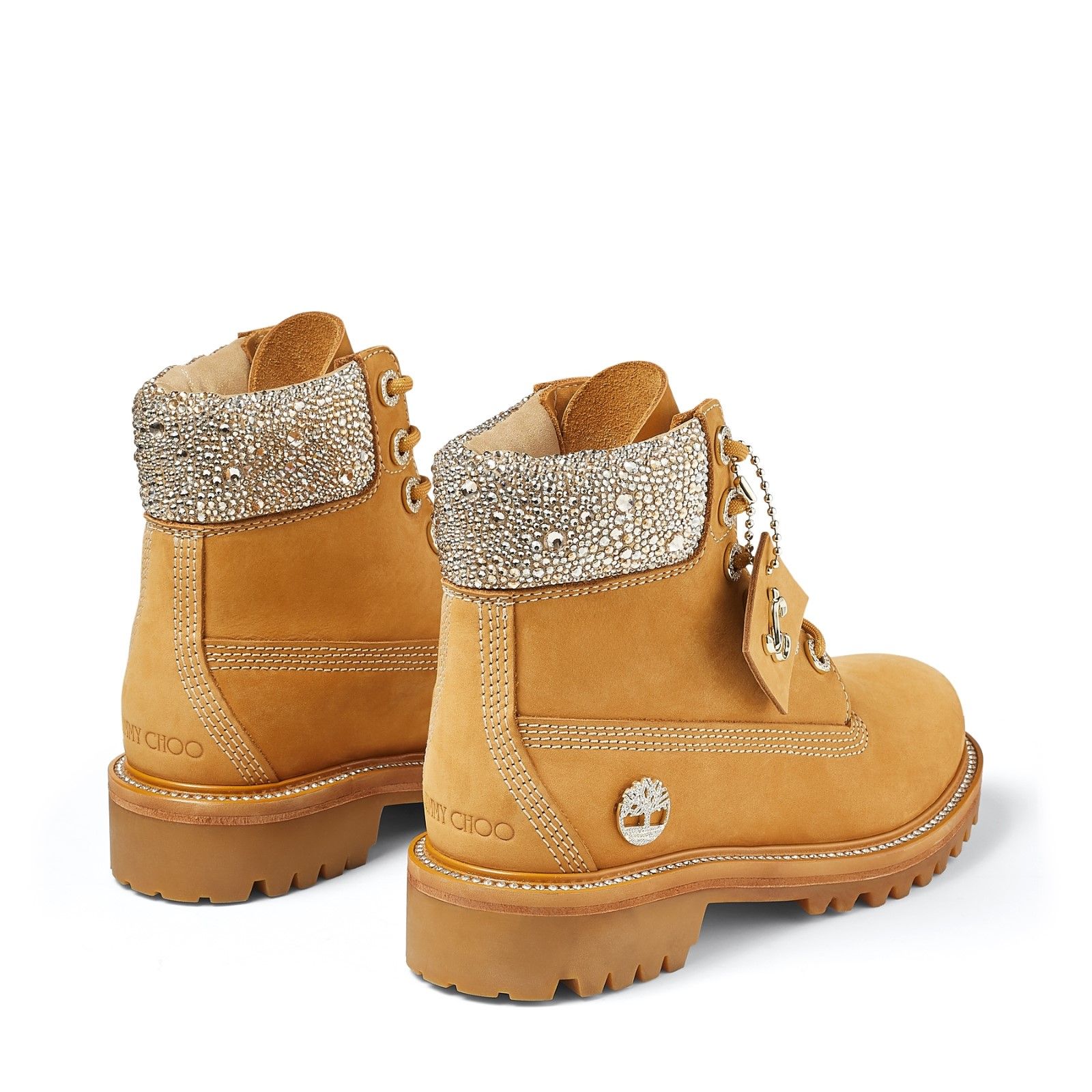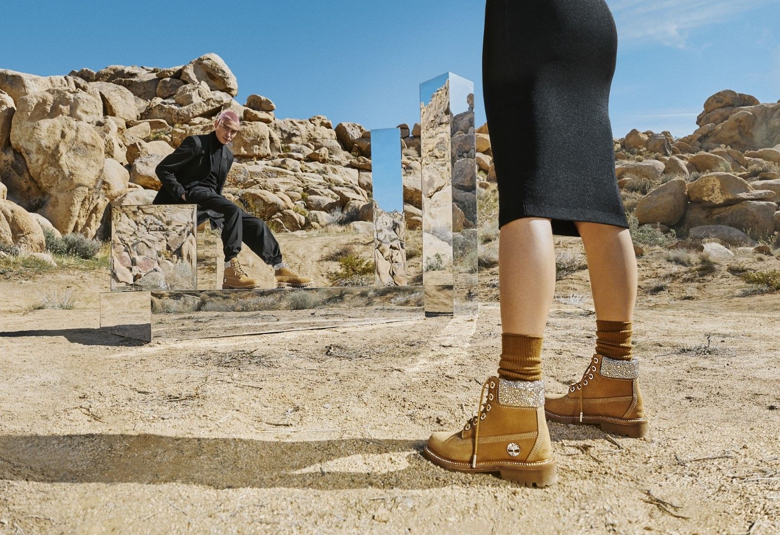 The collection includes four different versions of the boot, including three unisex and one female. Two of these versions retain the color of the original and feature a collar decorated with gold glitter and Swarowski crystals. Another version, also with a glittery collar, is in total black, while a fourth limited edition version has an all-over Swarowski crystal decoration. The collection will also contribute to the Nature Needs Heroes project, which is committed to planting 50 million trees by 2025: Timberland will plant a tree for every pair of boots created during this collaboration.