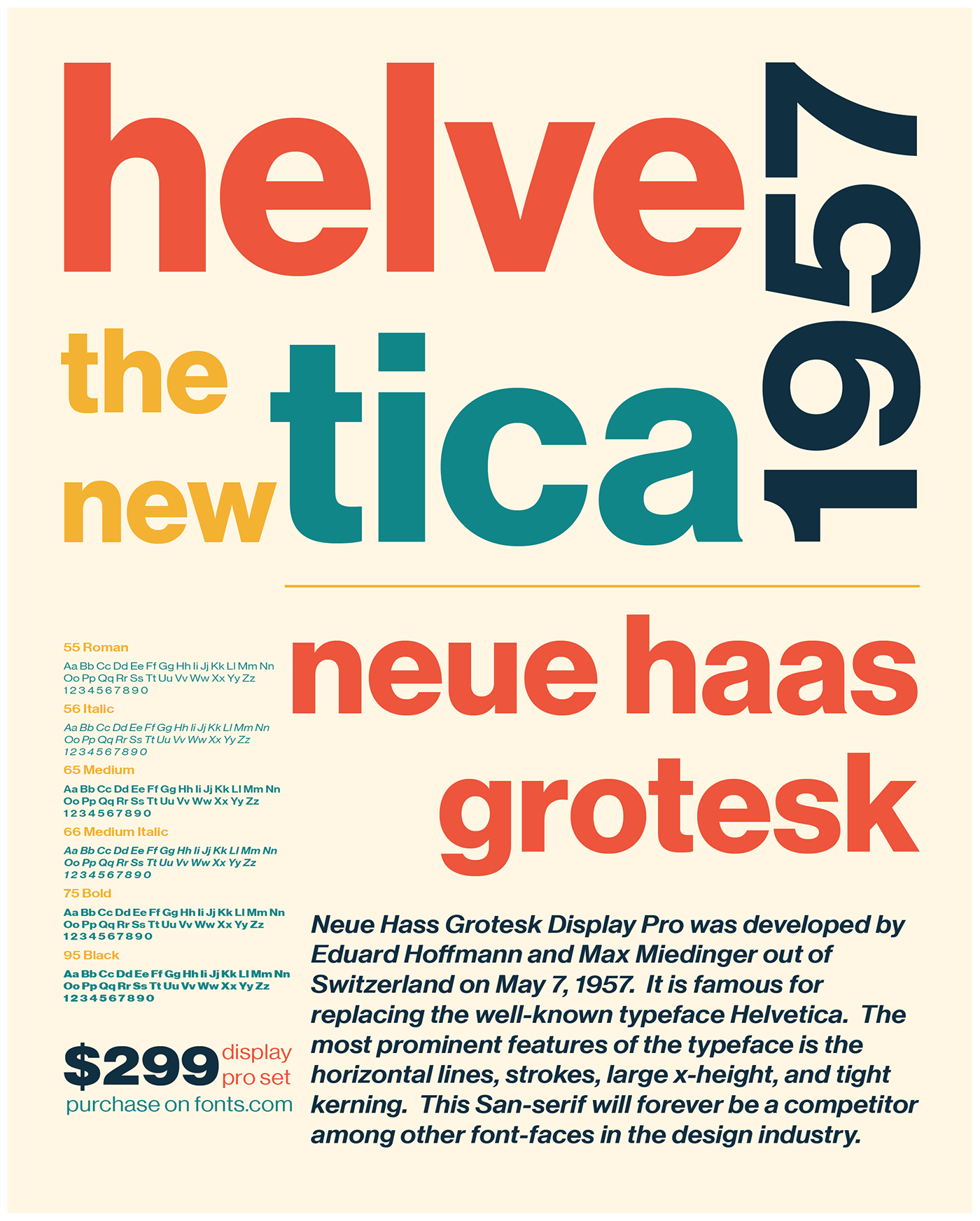 It's impressive, however, that the Helvetica font is not exactly new, but that on the contrary, it has been around since 1957, when it was invented in a Swiss printing foundry. The new font Neue Haas Grotesk immediately stood out for its clarity, essentiality and legibility, for its simple and direct way of communicating, without frills and unnecessary embellishments. It is a Gothic sans serif font, that is, without graces, without terminal strokes, with a lot of negative space (white), while the negative space contained in the lowercase 'a' resembles a tear. A few years later, in 1961, this neutral font was further enhanced by Arthur Ritzel of the German company Stempel, who was commissioned to redesign and expand the series of characters, thus giving life to the Helvetica font, which in its name pays homage to the place where the typeface was originally born. It is thanks to its versatility and simplicity that the font immediately became popular, the favourite font of the advertising world, that used it to promote the most diverse products, from Volkswagen cars to Coca-Cola. Although its "neutral" aspect, in some ways not particularly incisive, could prove to be a point against it, precisely this ability to adapt to different spheres, industries and messages are what has made Helvetica's success.