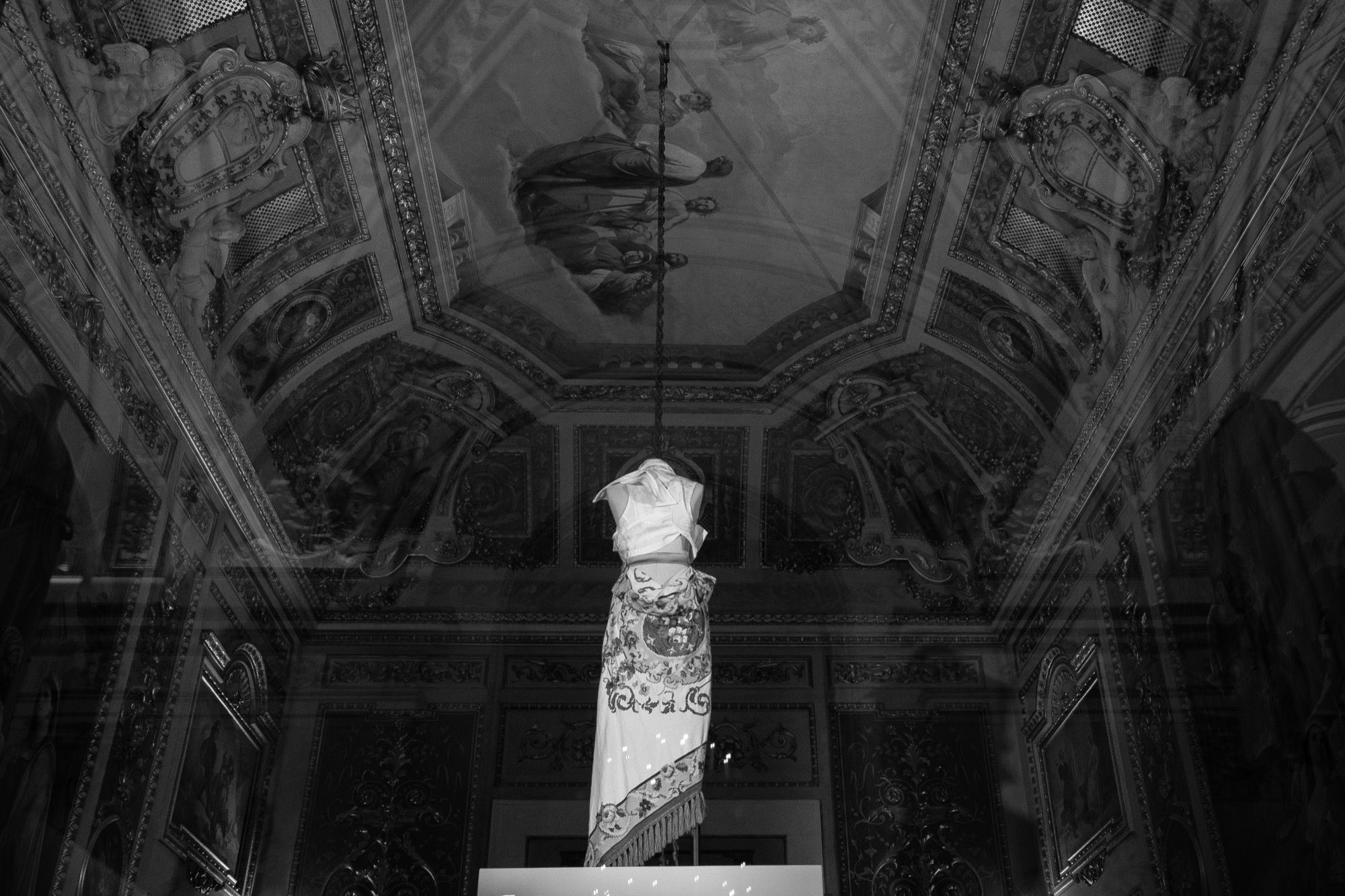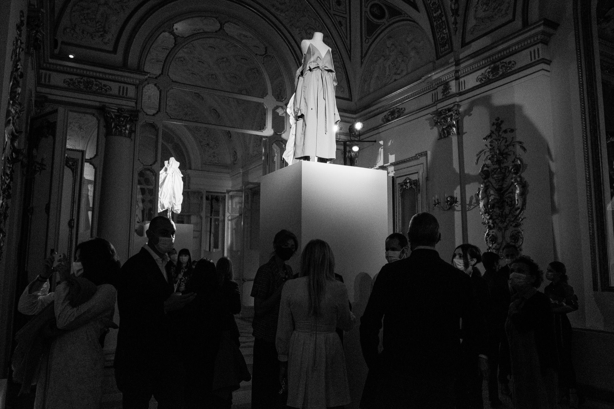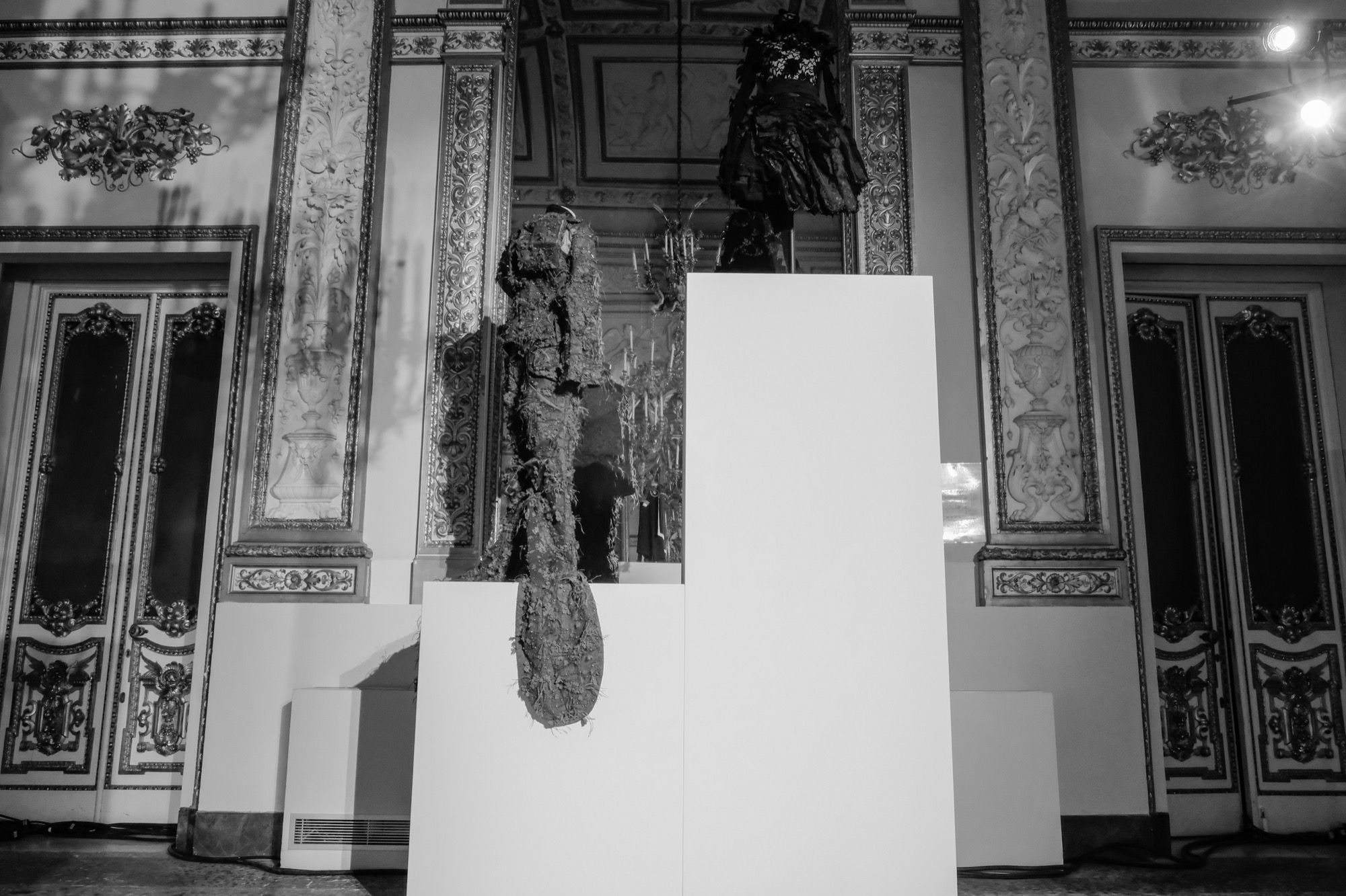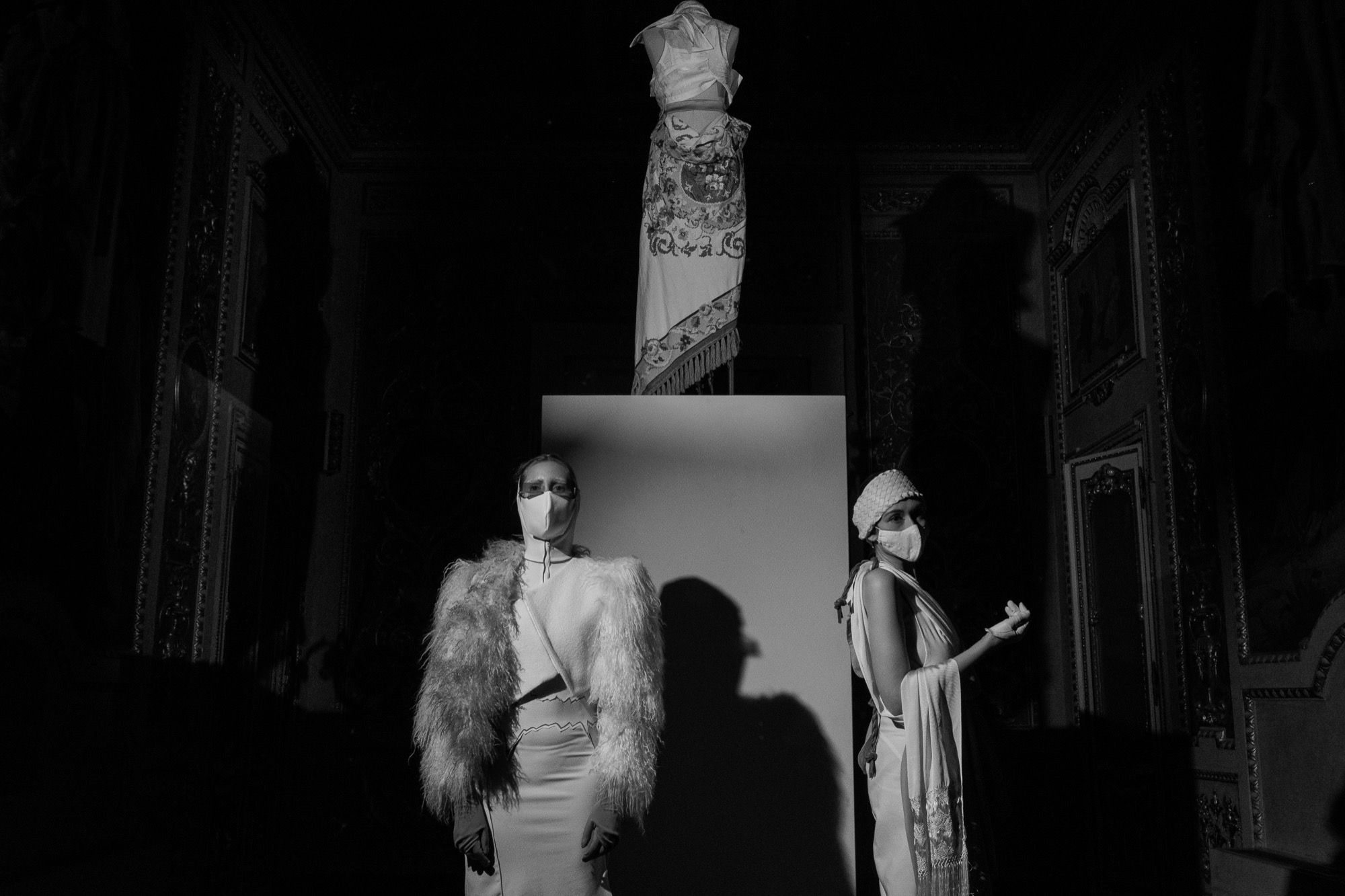 The exhibition begins inside the evocative garden on the banks of the Arno of the villa, then crosses the doors of Villa Favard and winds through the succession of the interior halls, through a cadenced rhythm of bright spaces and dark spaces whose suggestion moves on the strings of all five senses also thanks to the olfactory ambience created by Olfattorio. The areas of the historic villa are dotted with the hand-crafted tailoring creations of 20 students at the end of their studies in Fashion Design, who have done their work under the mentoring of Massimiliano Giornetti himself - new director of the design department of the institute since July last year.