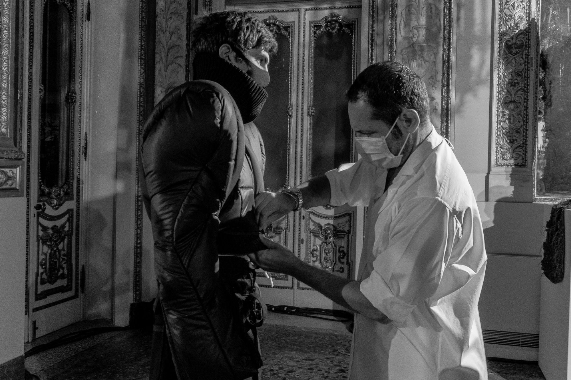 The goal of the evening installation-performance curated by Linda Loppa and Massimiliano Giornetti was to give voice to their students by encouraging them to provide a new interpretation of the future of fashion after months of distance and closure – using the creative medium of fashion design as a method of observation and expression of contemporary reality. These were the words with which the director of Polimoda, Danilo Venturi, commented on the initiative: