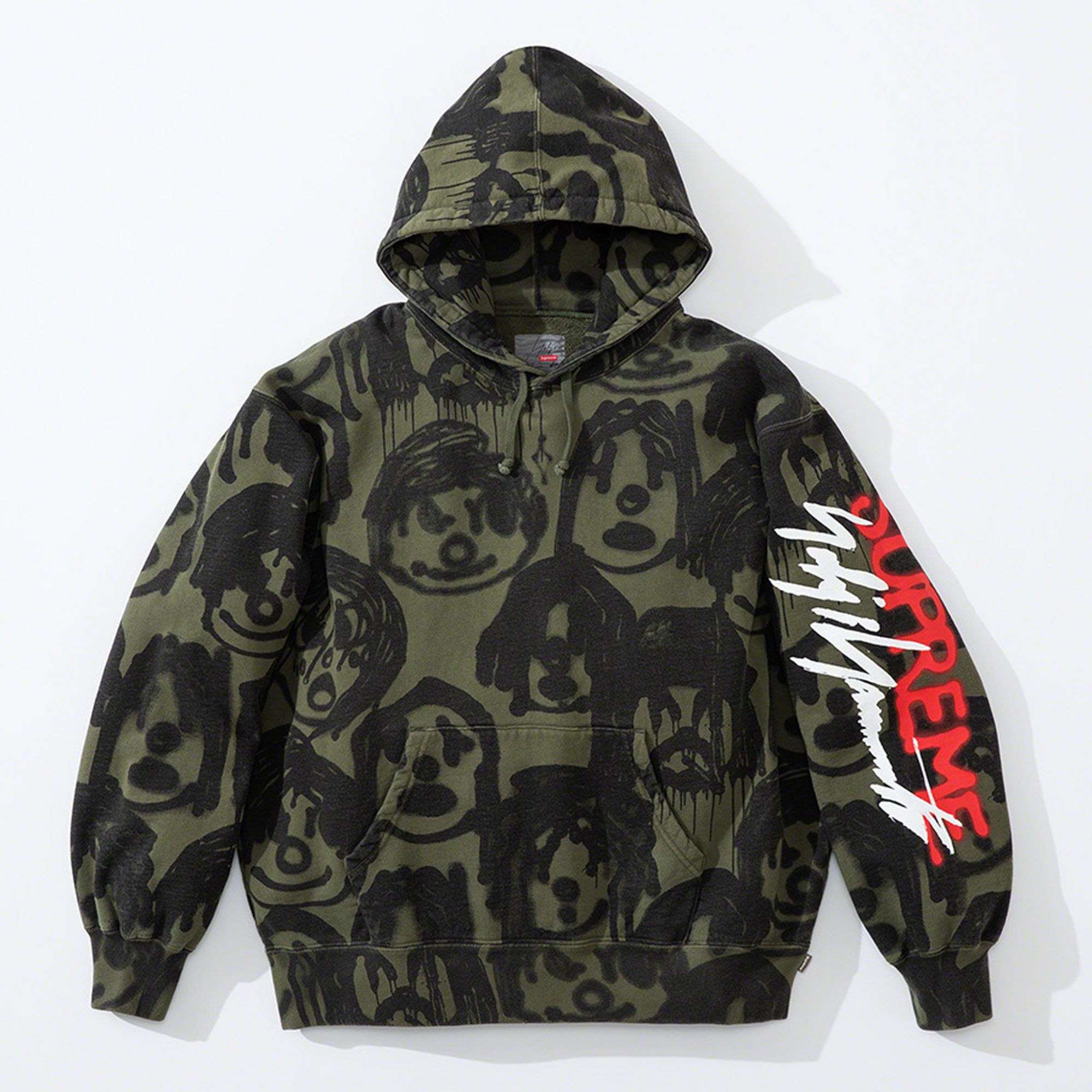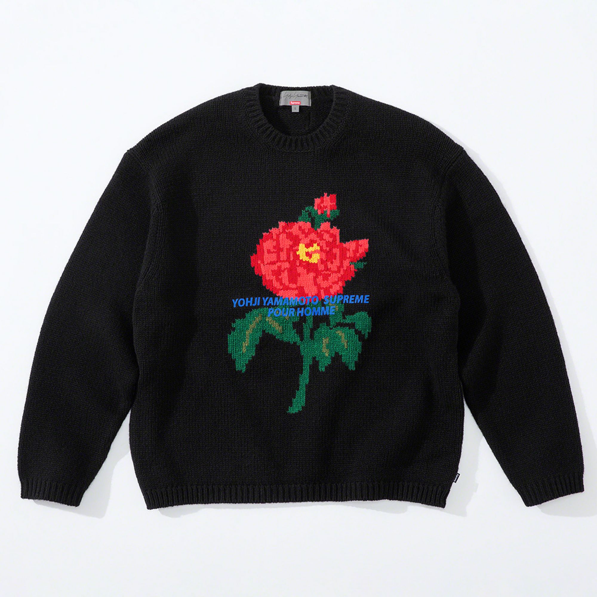 The Supreme x Yohji Yamamoto collection translates the graphic cues and symbolism of Yohji into the streetwear language: floral graphics, embroidered roses, graffiti, tailored suits with a relaxed fit and inlaid sweaters represent a perfect and balanced synthesis of two different languages. The artworks in the collection are signed by creatives such as Sancheeto, Peter Saville and Yuuka Asakura.