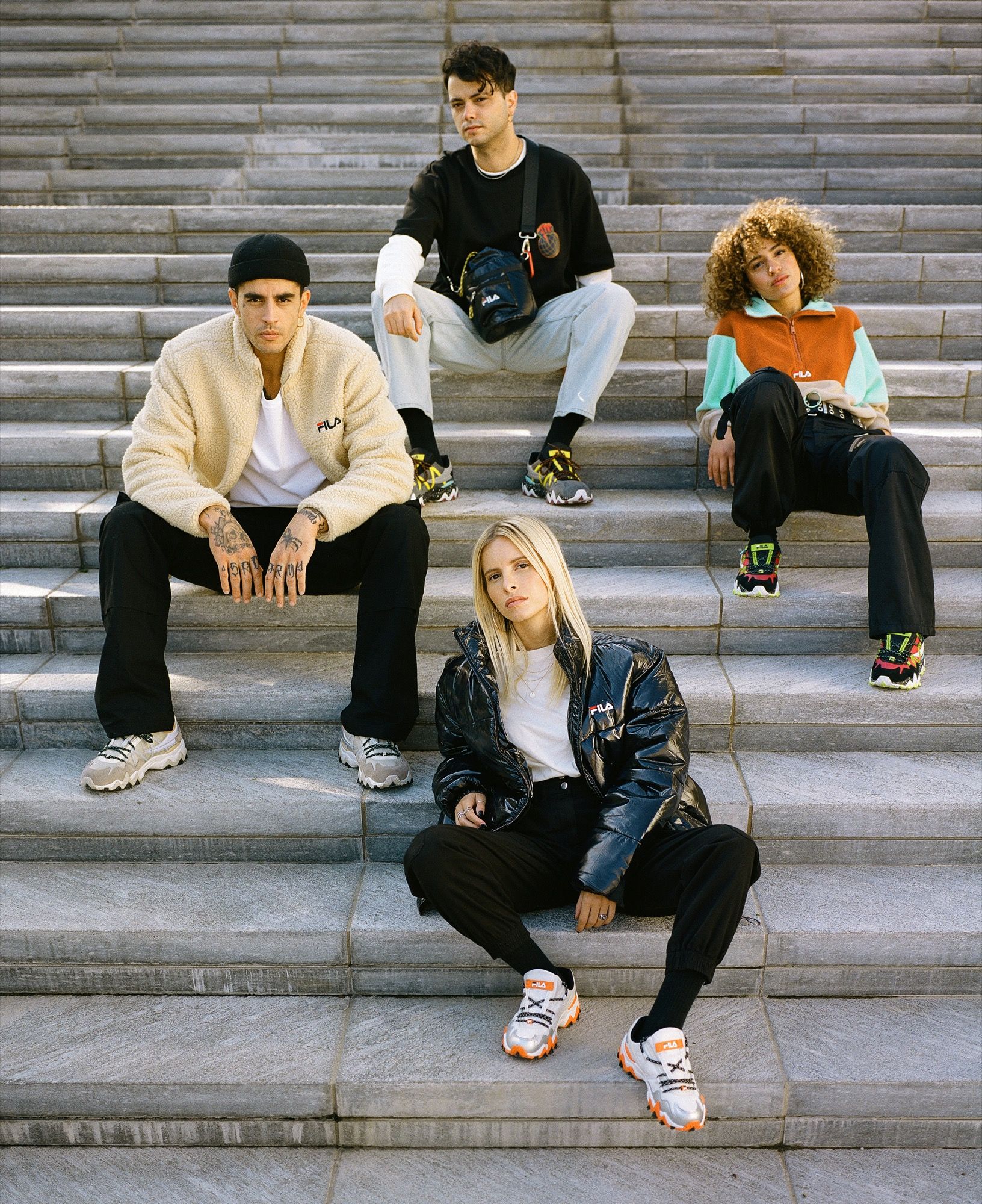 It is precisely against the background of Milan's urban nature that the collection comes to life in the images of this editorial. Four exceptional talents - singers Maryam and Uale, rapper Axos and content creator Arianna Canali model the new FILA line, underlining its adaptability and eclecticism, which make it the go-to solution to face the winter.