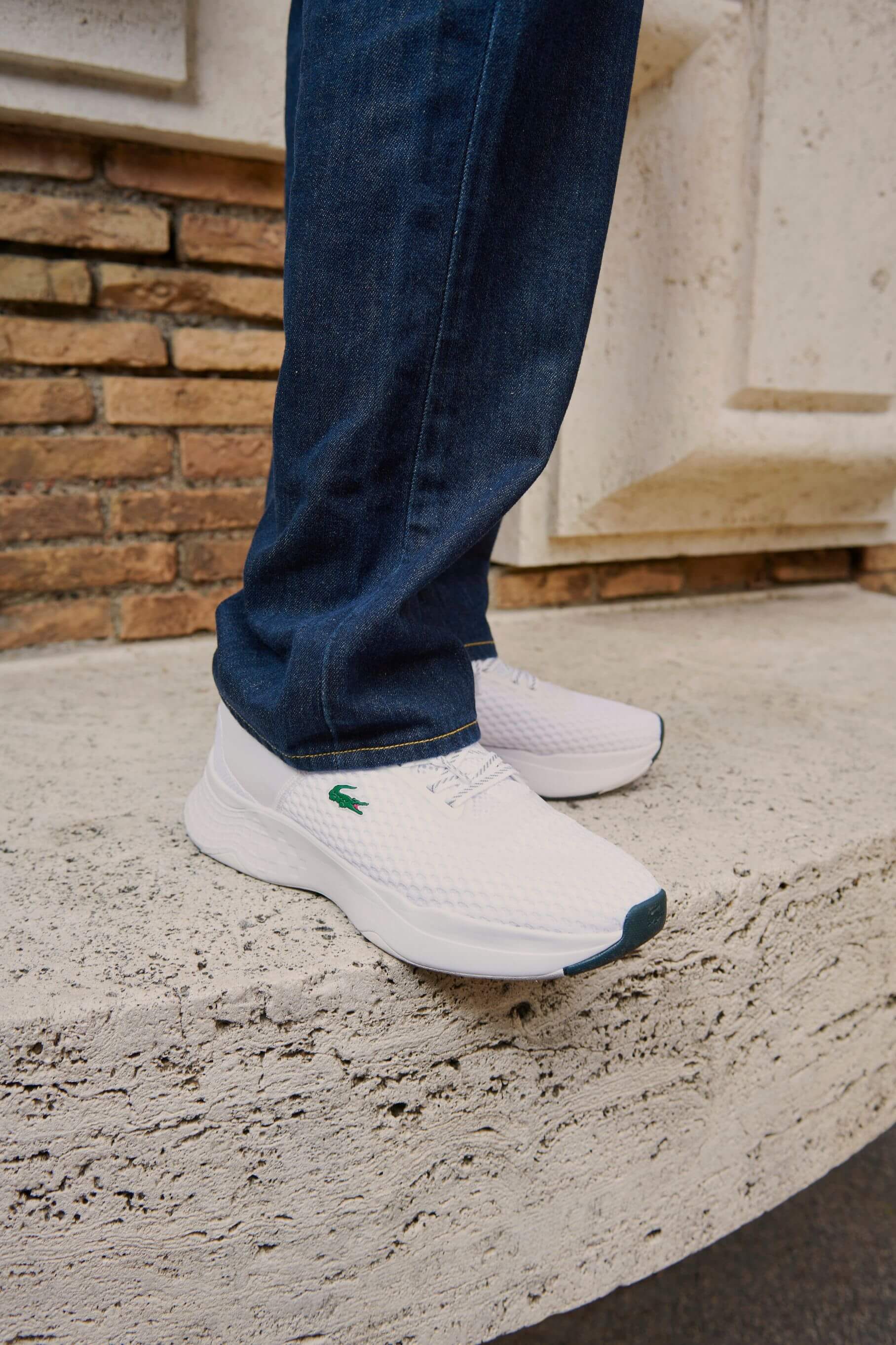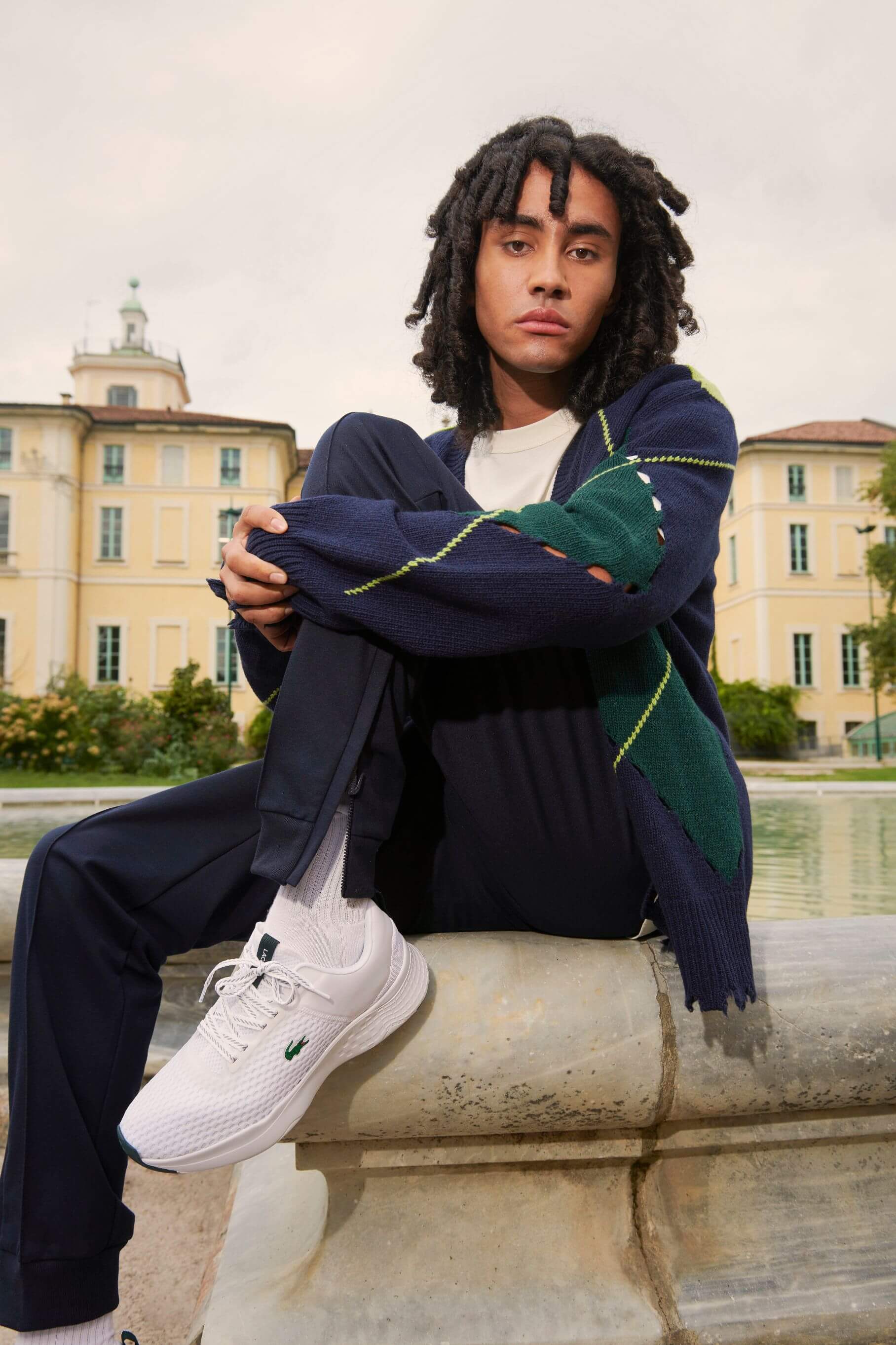 The Ace Lift is inspired directly by the G80 model of the Lacoste archive and worn in the editorial b rapper Tredici Pietro, formally known as Pietro Morandi. The silhouette is reinterpreted through subtle design touches and through the branding that closes the iconic crocodile symbol of the brand, within two lines that evoke the shape of the tennis court. New in the collection is the Court Drive, worn in the editorial by Farid Chaher, model, creative entrepeneur and fashion styling student at Polimoda Firenze. The Storm 96 Low is instead the ideal heir to the first running shoes launched by the brand in 1996, and worn in the editorial shots, by the sneakerhead and content creator Luca Santeramo. Thanks to its design, it is the boldest and most remarkable sneaker of the new line-up, both the closest and most faithful reinterpretation of an iconic design by Lacoste.