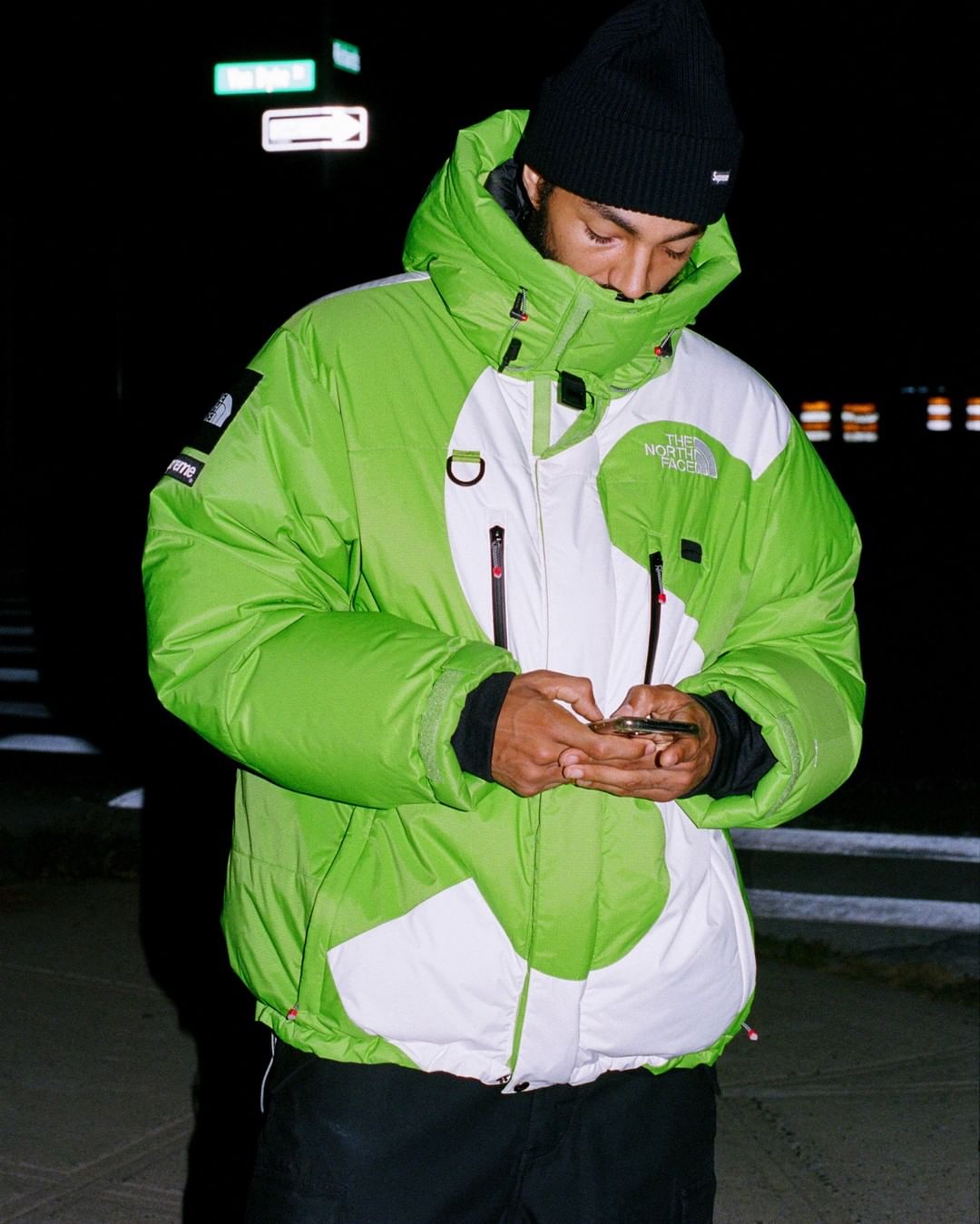 The main items in the collection are the jackets: a Himalayan Parka Summit Series, a Mountain Jacket and a Hooded Fleece Jacket, all bearing the branding of Supreme and present in the three green, red and black colourways. The rest of the collection includes an Expedition Backpack, a Shoulder Bag, Dolomite 3S-20° Sleeping Bag and the Nuptse Mitts. With the exception of fleece, all items are made with different types of nylon: Dryvent for the Mountain Jacket, Cordura for the backpack, Ripstop for the parka and with Heatseeker thermal insulation™ Eco for the sleeping bag.