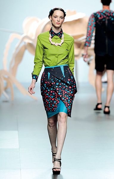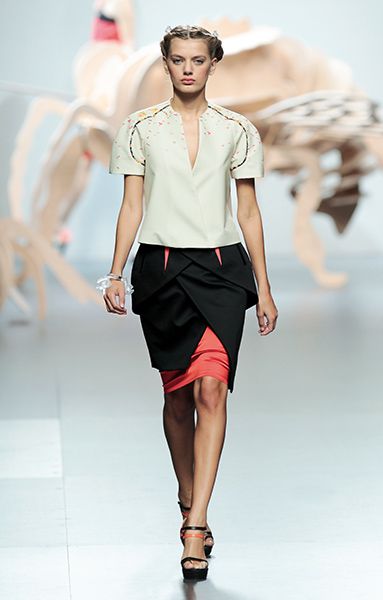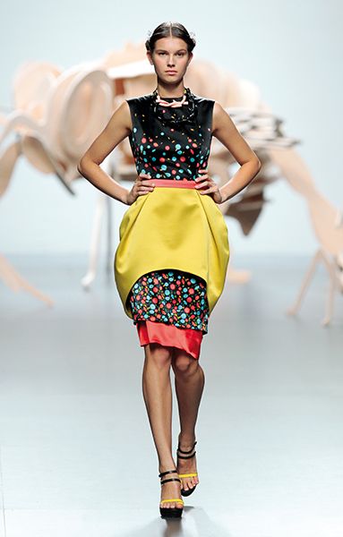 In 1997, Ana Gonzalez founded with Óscar Benito Locking Shocking, a ready-to-wear label, Locking Stocking. Then in 2008, started her own signature brand, Ana Locking. In her collections, Ana is always looking for the contrasts and conflicts that are part of our lives and that she represents in her clothes. Her latest collection, Under Beauty SS 2012, is full of bright colored blocks, strong contrasts and various geometric shapes. It is bold and edgy, with an interesting futuristic vibe. Through it Ana tries to explore the different aspects of beauty, the one we know about and the other one, which lives ‘under’, using bold colours, contrast, different layers and combinations to achieve her goal.