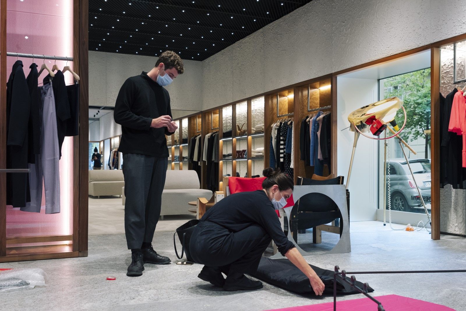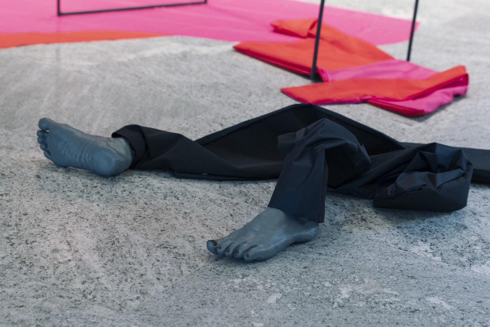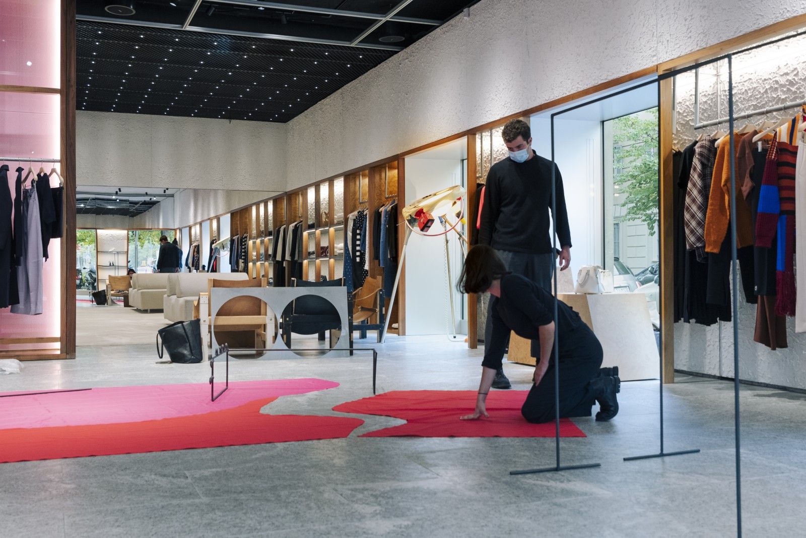 «For this project I was interested in deconstructing the collection, as well as the structure of the body, focusing on three elements: hands, feet and fingers as peripheral sensitive elements. I see it as a hybrid of set-design and artwork. [...] Modes' shop is very connoted and when I started drawing it I had something very site-specific in mind».