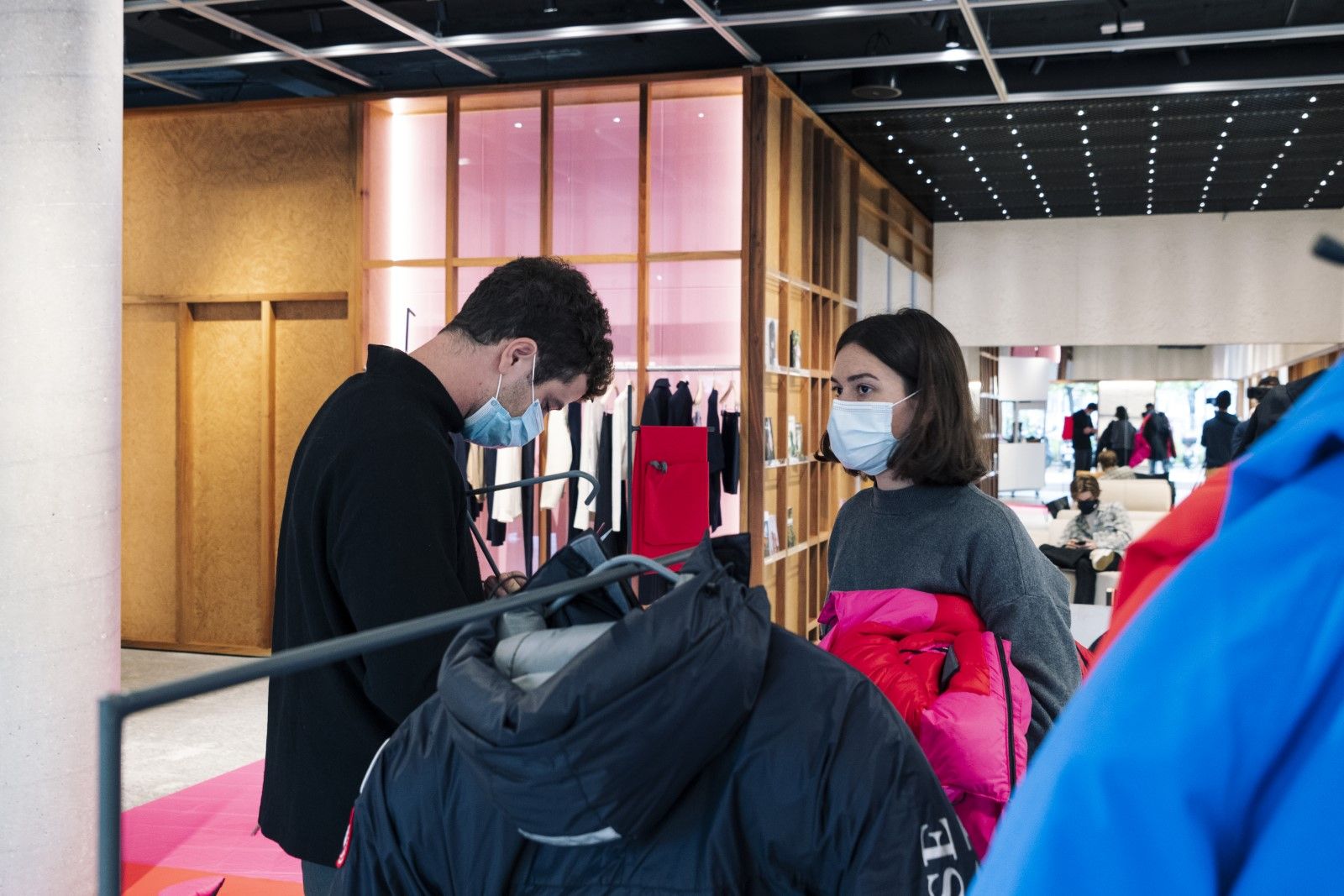 The collection, which consists of a total of five items, has its highlight in parkas, with their asymmetrical buttoning and their proportions unfailing artfully. But there is also no shortage of reversible wool sweaters and caps. What immediately comes to the fore is the way in which the rigorous technicality usually associated with Canada Goose remains respected despite the new construction of the garments that, to analyze the details, is very complex and studied – something that Glenn Martens has long accustomed his audience to.