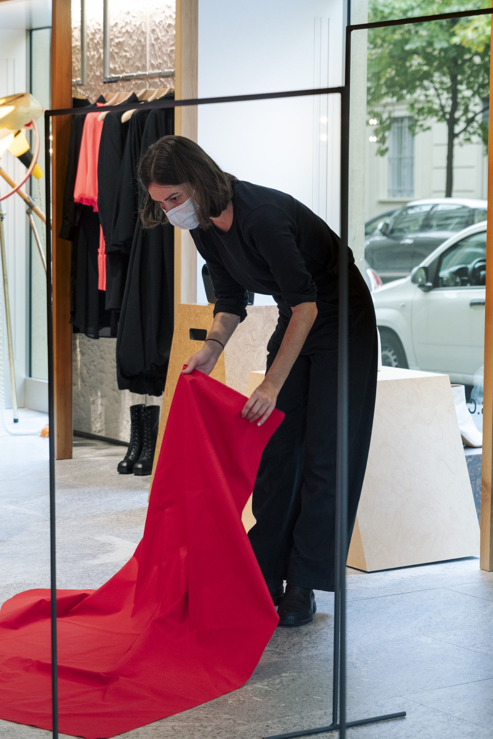 While when asked what fashion could learn from the art world, Sara Ravelli answered without hesitation: «The importance of taking your time». As well as the protagonists and the campaign in which they are staged, the designs presented by MODES Milano were created to amaze and explore traditional themes in an unexpected way. Glenn Martens also praised the installation saying: