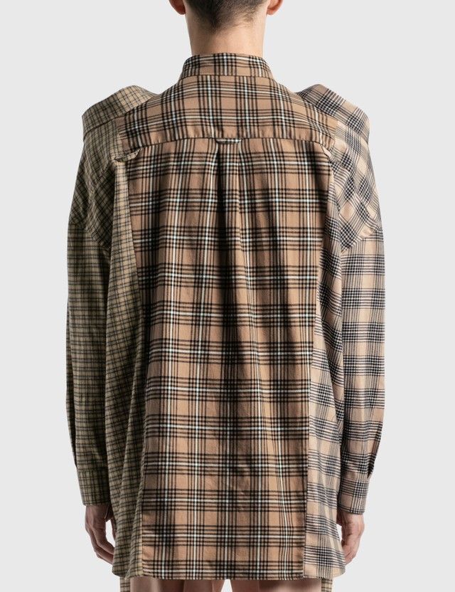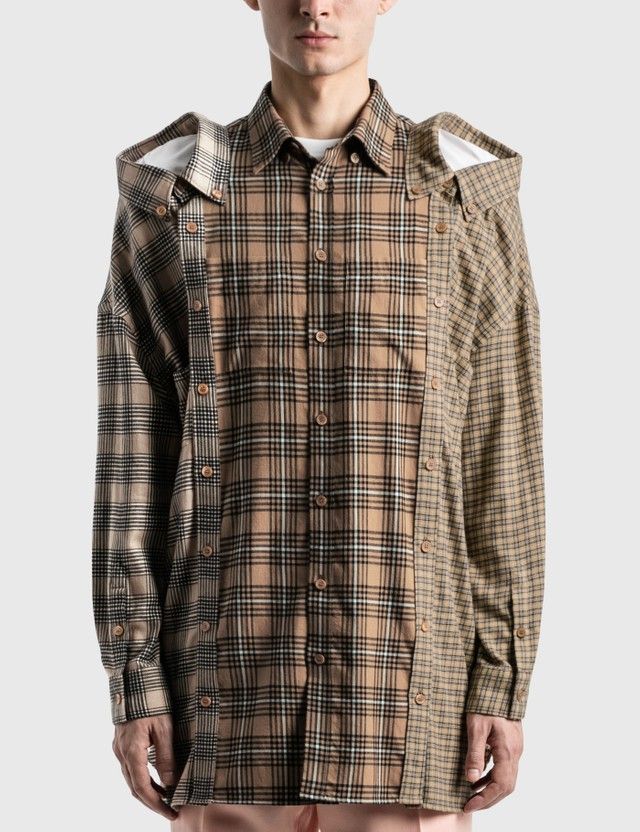 Deconstruction and reconstruction are the main tools of avant-garde fashion – whose greatest experimenter was perhaps Martin Margiela at the beginning of his career. But now that even the most mainstream brands have to make headlines, deconstruction has been taken out of its niche and used to create a bizarre garment like Burberry's quirky shirt, which for convenience in the title we called "3-in-1" but which actually has a contour name and strange as its appearance: Burberry Contrast Check Cotton Flannel Reconstructed Shirt.