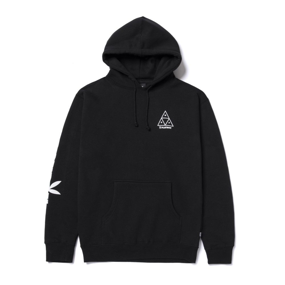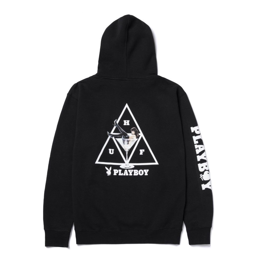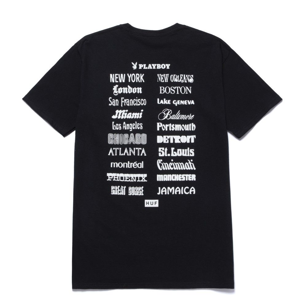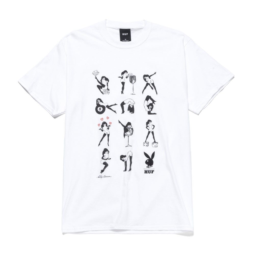 The capsule consists of hoodies, t-shirts and accessories in which Huf's triangular logo mixes with vintage pin-up illustrations, Playmate photos, historical magazine covers and its symbol, the bunny with a bow tie. Highlights of the collection are two button-up shirts with vintage illustrations and a T-shirt depicting Darine Stern, the first African-American Playmate to pose as the sole protagonist for a 1971 cover.