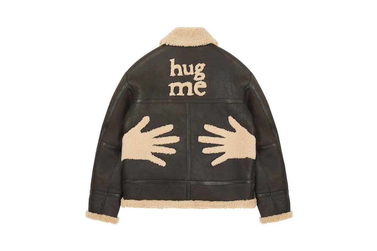 The spearhead of the collabo is undoubtedly the two shearling jackets in brown and white enriched with the wording "Hug Me", accompanied by two puffer jackets in the colours "Cloud Blue" and "Orange Sunset". In the apparel, the Moschino branding blends with the playful colours and graphics of Palace, as in the case of the long sleeve and the sweaters in which the now-iconic mascot of the English brand stands out.