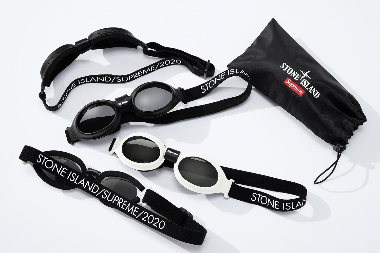 On all jackets, Half-Painted Sherling and Painted Puffer, which are accompanied by others in matched corduroy with pants in the same material and colours. The hoodies take up the motifs of the Marina collection with horizontal stripes, while the tees come with two tie-dye variants that accompany the classic black and white colours. The collection closes with the inevitable nylon pants, a pair of shorts and a series of accessories, from a corduroy bucket to the glow in the dark balaclava. Double Italian collaboration instead for the goggles, which in addition to bearing the Supreme and Stone Island branding were created by the Italian company Baruffaldi.