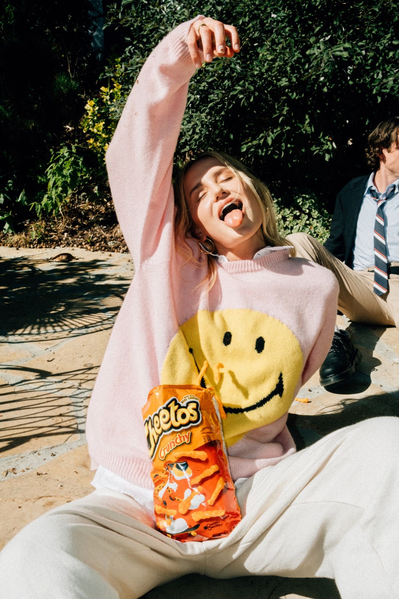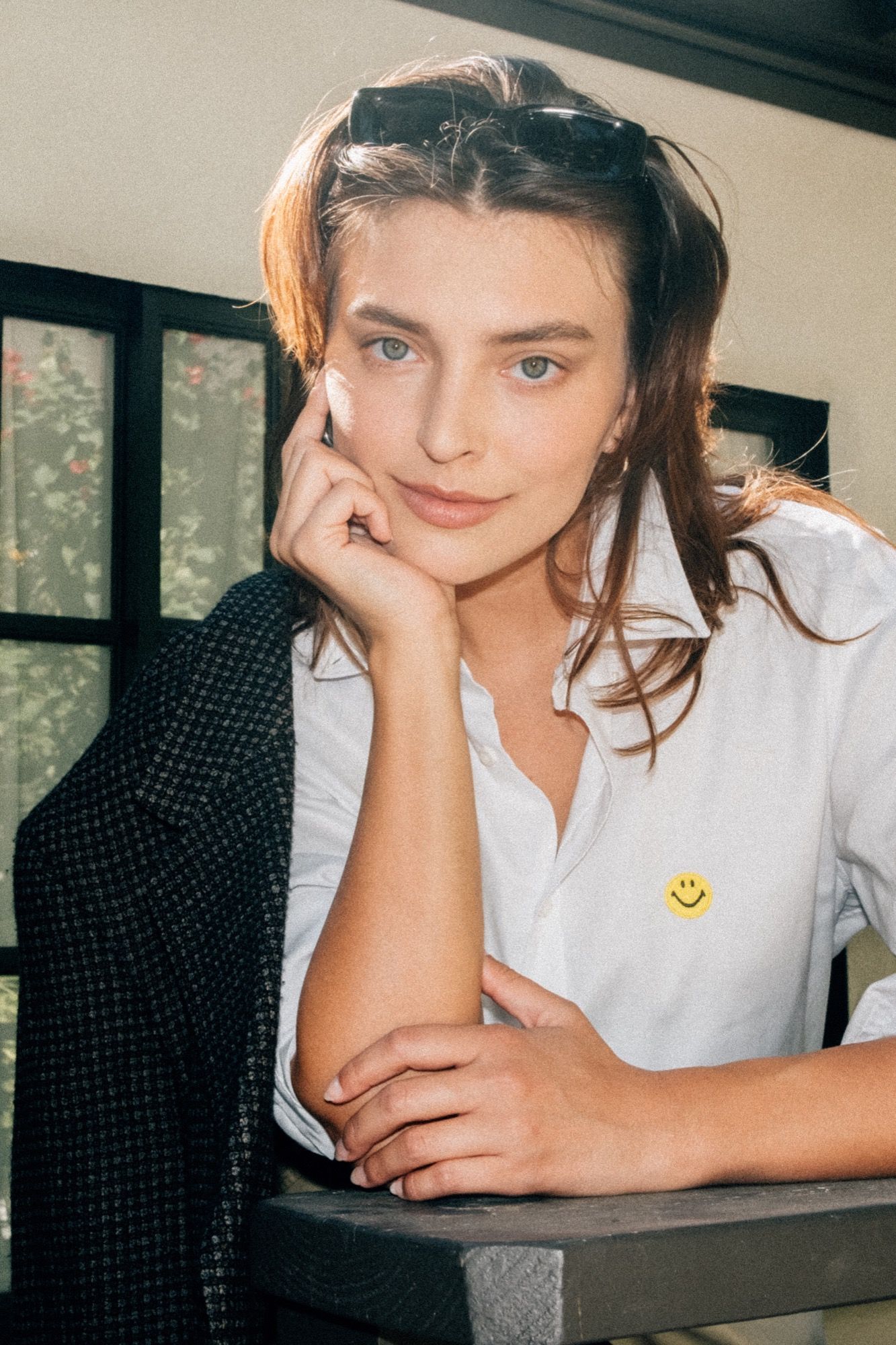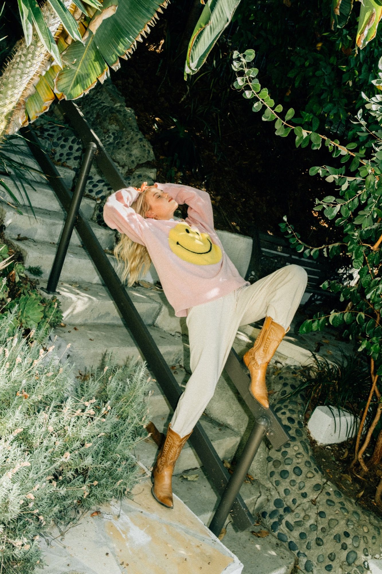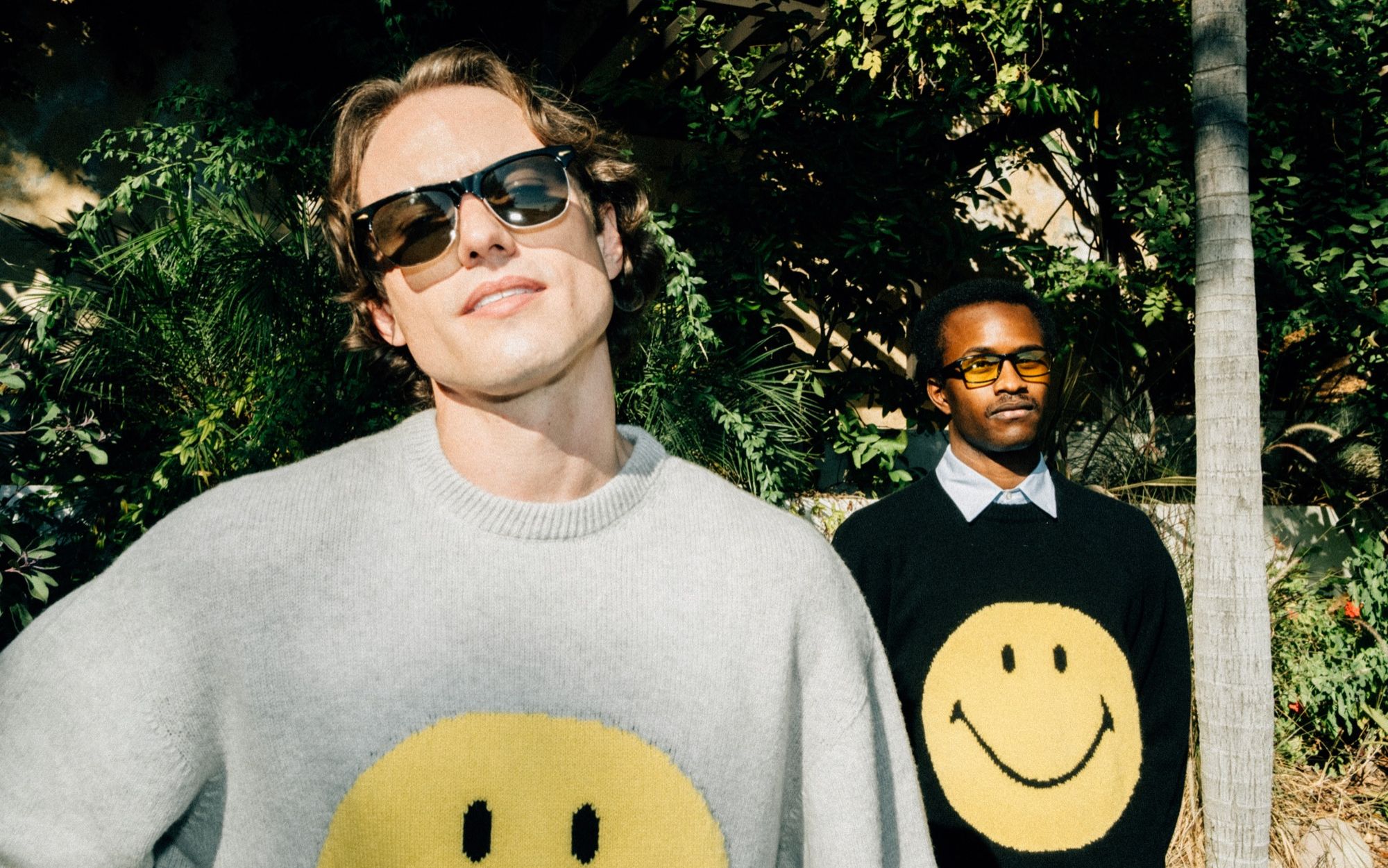 This first capsule collection (the first of a series of collections that will feature the Smiley icon) consists of ten items and includes shirts, cashmere mixed sweaters decorated with large smiley and embroidered sweatshirts that evoke the cities of New York and Los Angeles. Los Angeles is moreover the scenario chosen for the lookbook that evokes the cheerful mood of the collection by imagining a student party in the garden of a Hollywood villa.