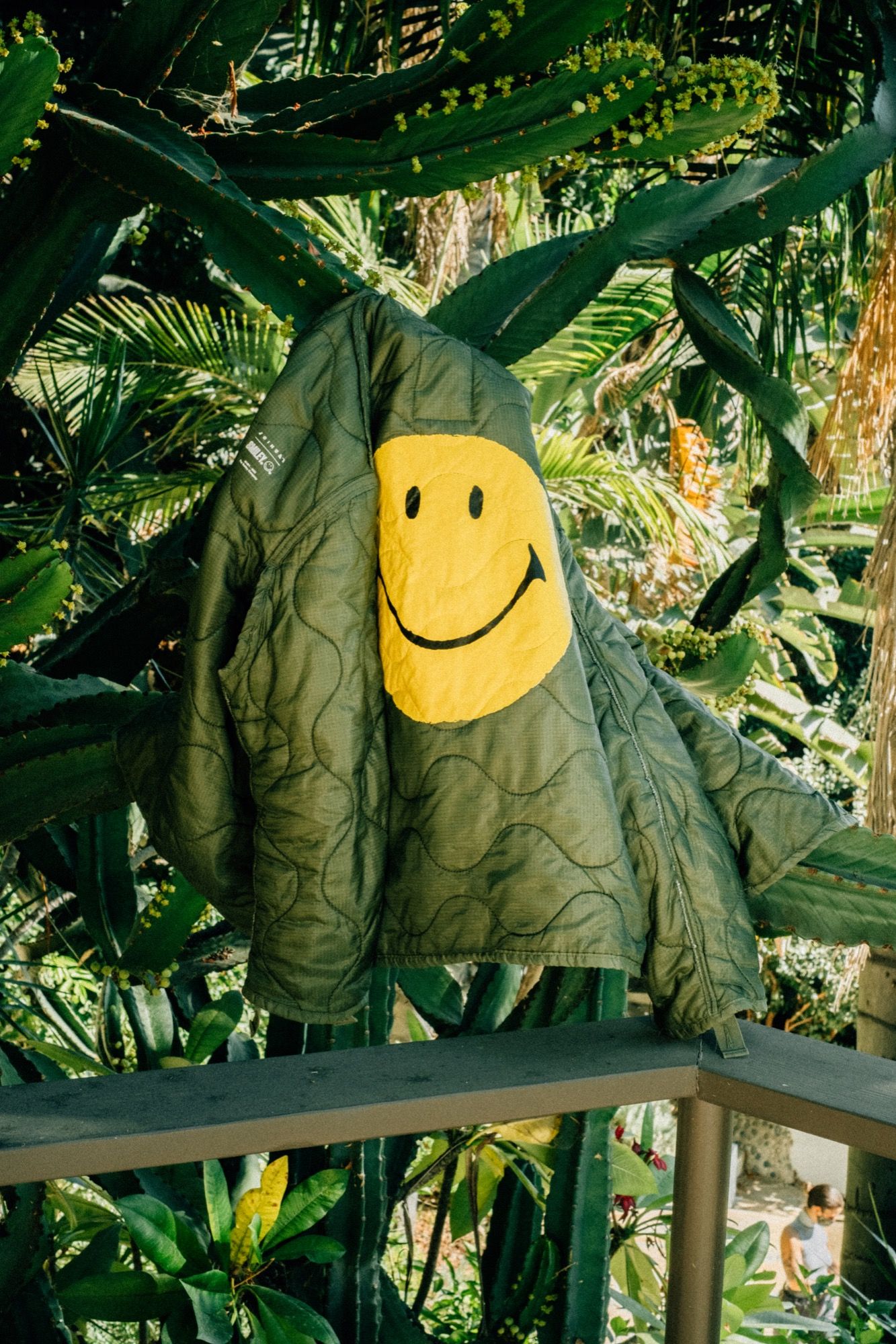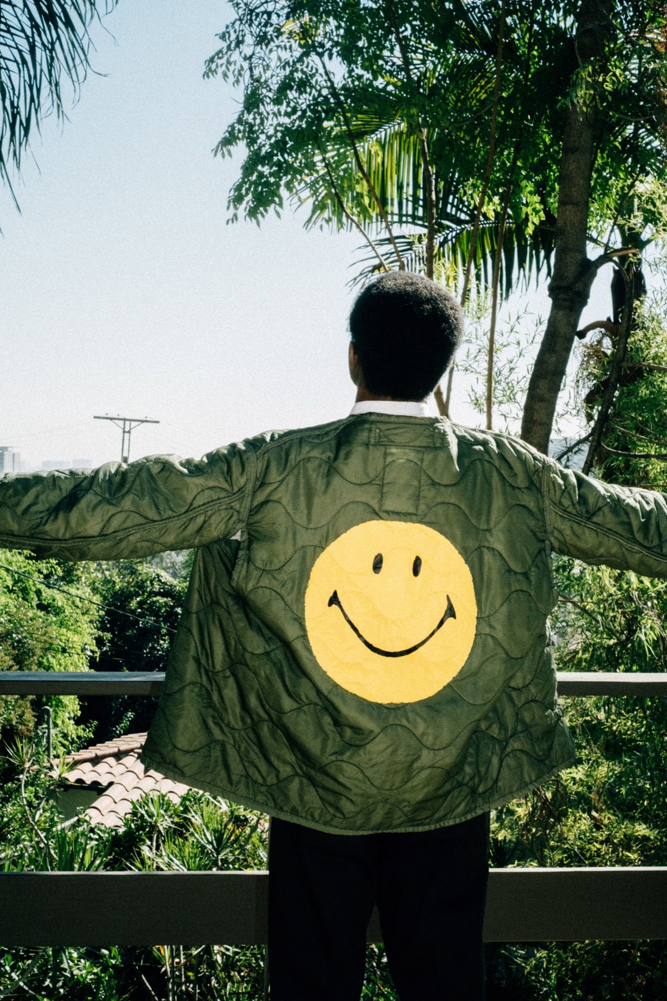 Inside the capsule there are also a series of military jackets created with the upcycling method, that is, recovered from the military surplus stores in Los Angeles and customized with a Smiley on the back – the first step of a sustainable project of the brand that will soon implement the upcycling of vintage garments.