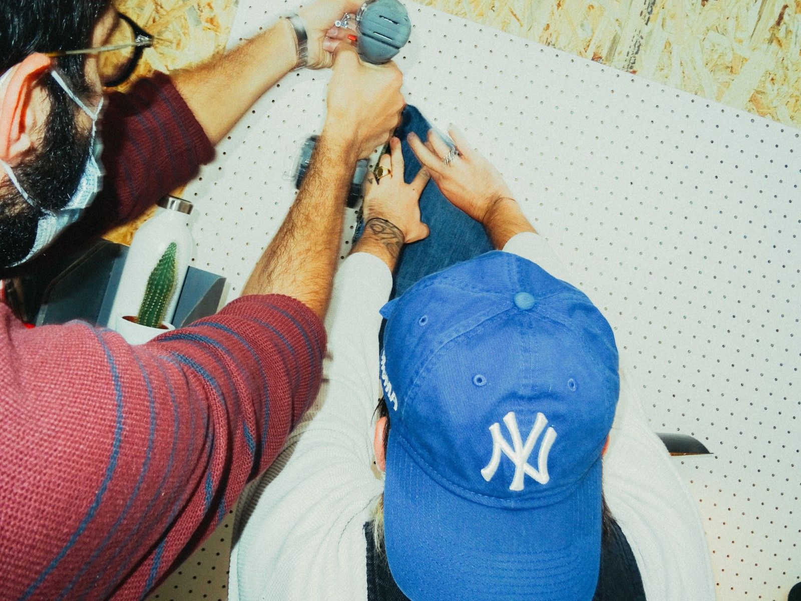 Central part of the project are the four masterclasses, conducted by two pairs of creators. The first sees the APJP duo (acronym of Alberto Panocchi and Joelle Pomioli), specialized in customization through the reuse of recovery materials, will dedicate themselves to a workshop focused on the creation of a customized cellular holder with their painting technique. In the second masterclass, Domenico Formichetti of Formy Studio will work side by side with Greg, a young designer specialized in manipulation and distressing of denim. Their workshop will be dedicated to the creation of a custom denim bucket hat with the Japanese sashiko technique.