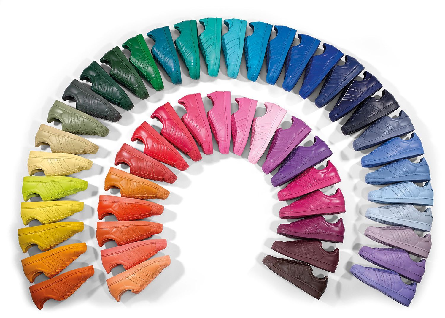 Many, however, might have noticed a certain resemblance between Fieg's capsule and the one created by Pharrell Williams with adidas, who with the Supercolor collection had reiterated the silhouette of the Superstar in almost every possible nuance, playing on the concept of shade and chromatic scheme.