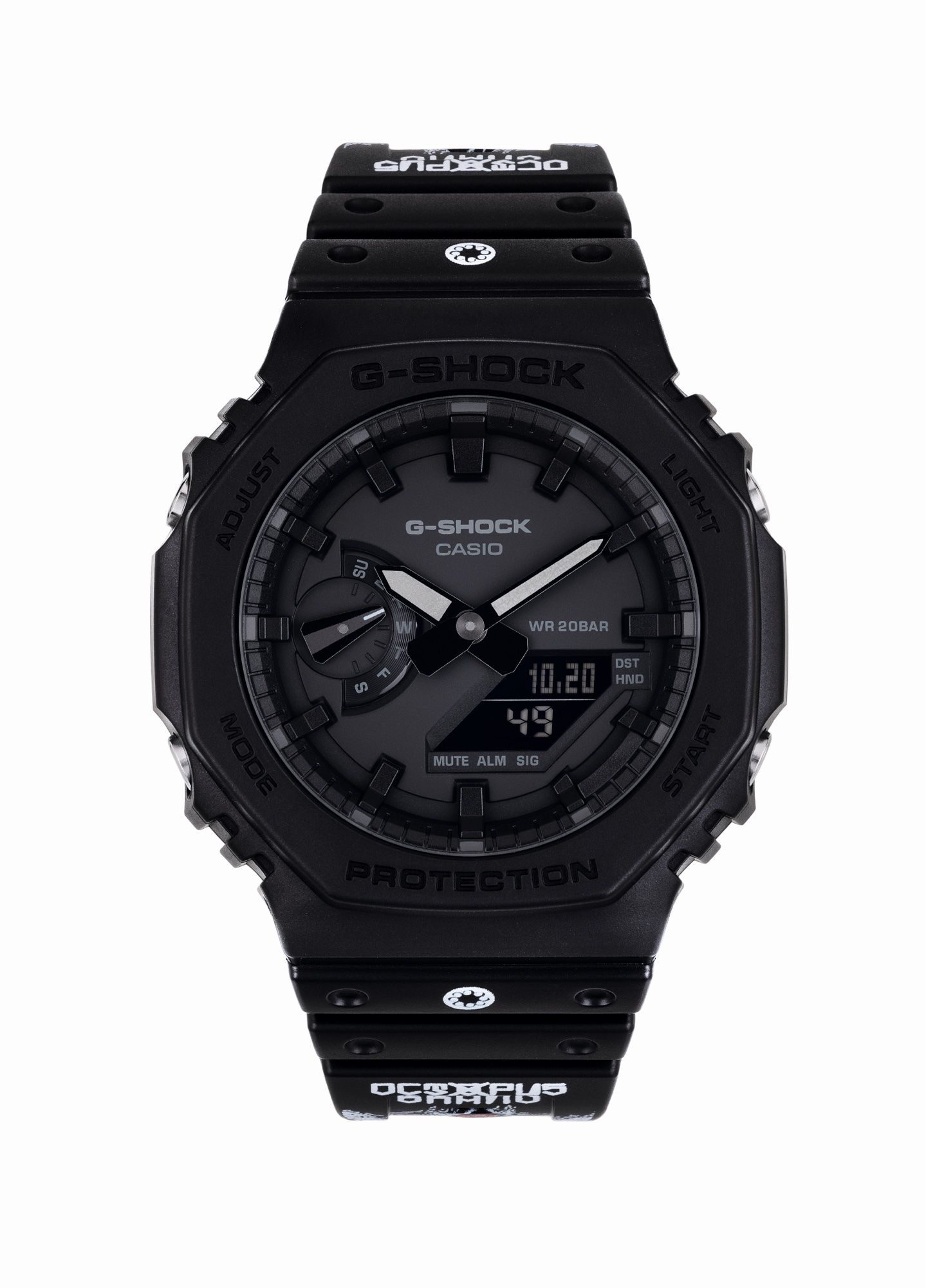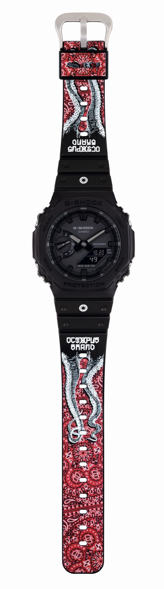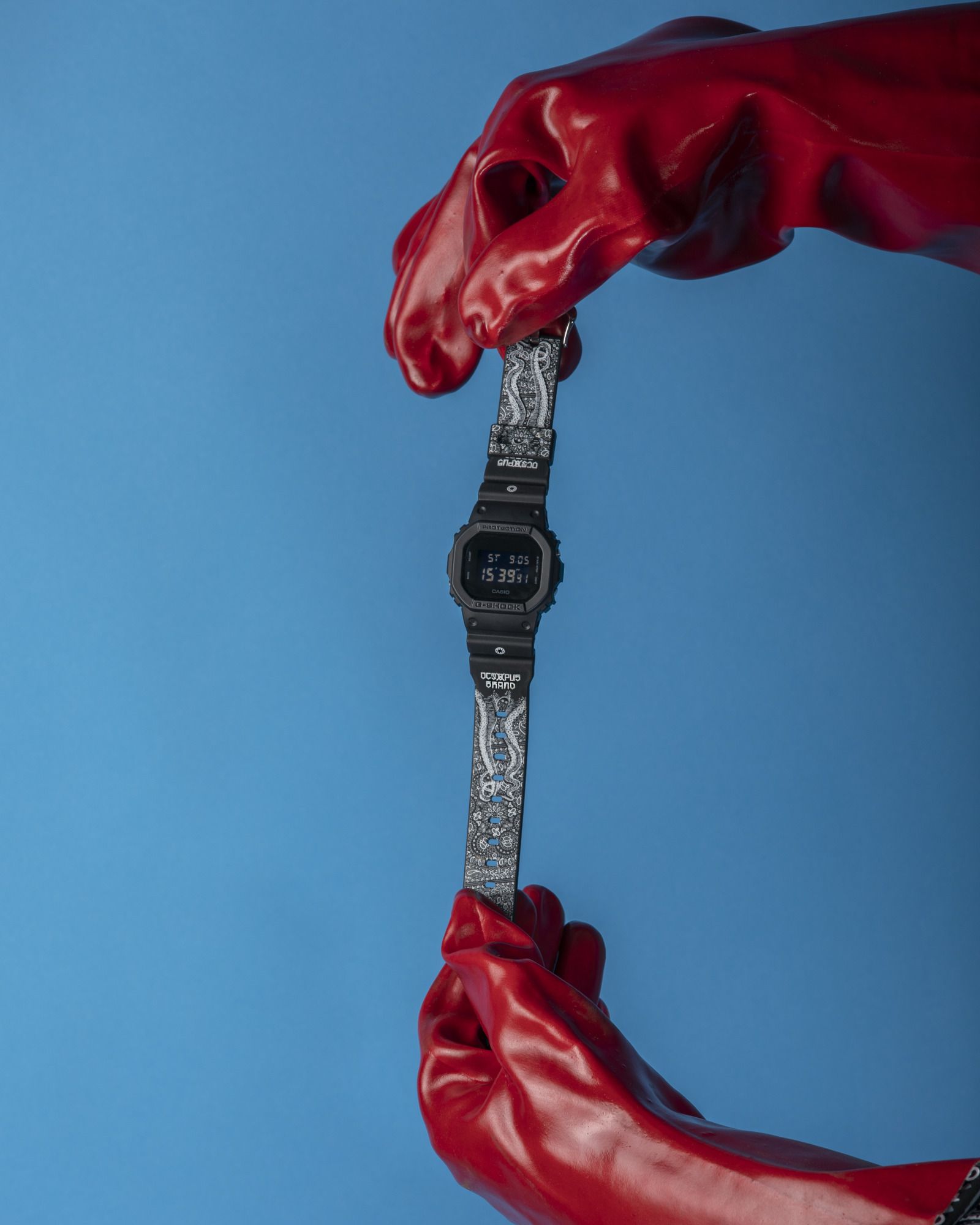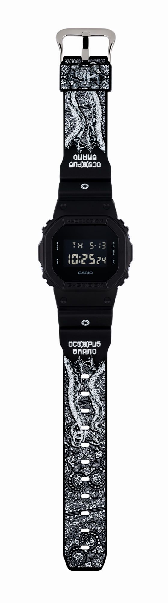 The G-SHOCK collaboration model series is enriched by a partnership with Octopus Brand, the young Italian brand that has made its way on the trap and rap scene with Tha Supreme and Madman, but also in the world of gaming with Rainbow6 and pop culture with its collaboration with Spongebob. The collaboration brings together Octopus's graphic maximalism and the resistance of G-SHOCK watches to reinterpret two cult models: the DW-5600 and the GA-2100.