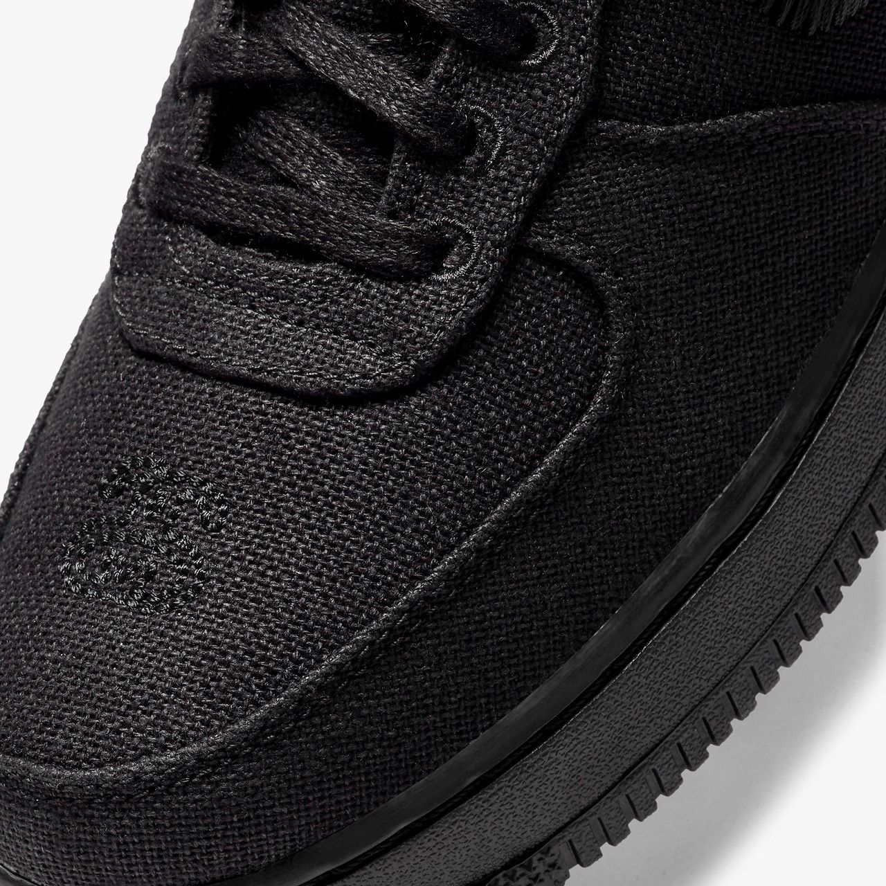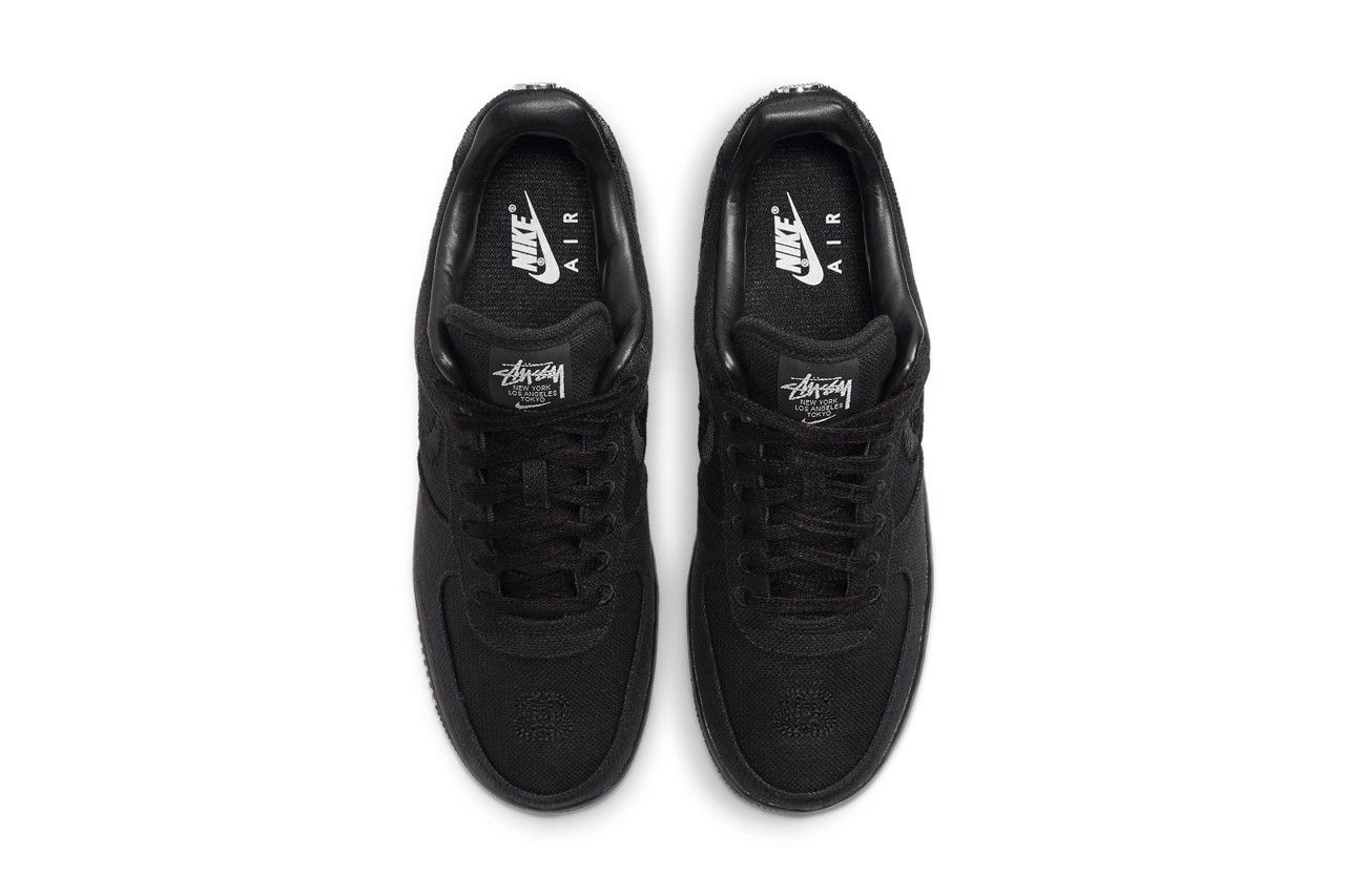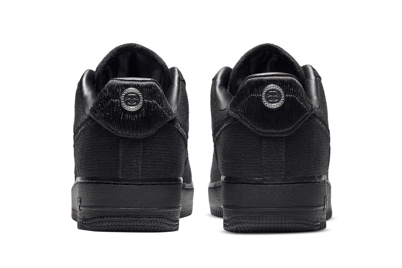 While the sneaker may look similar to a classic AF1, this new version is made entirely of hemp-like textile material, while the Stüssy branding stands out on the toe, tongue and back of the sneaker with a medallion.