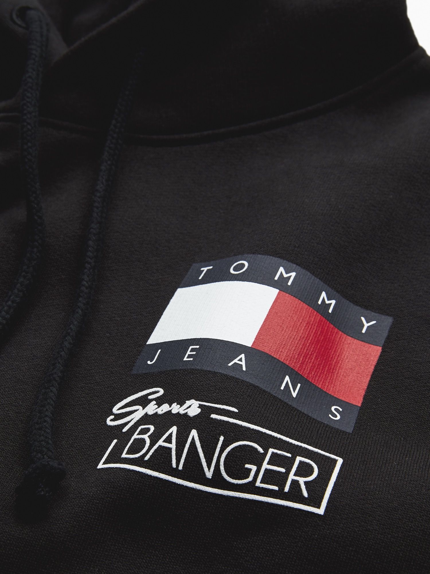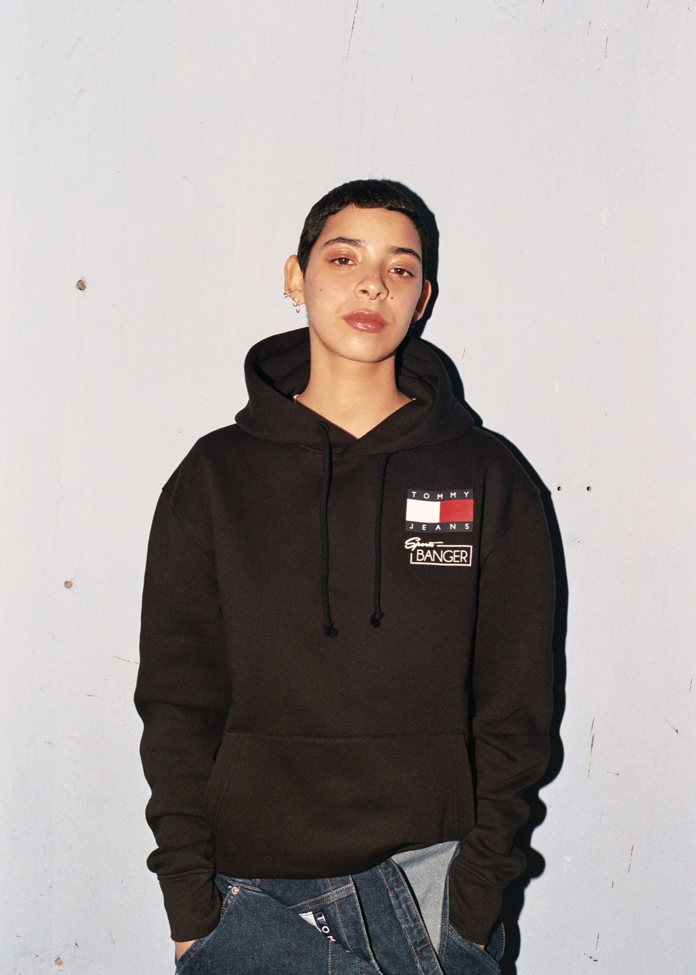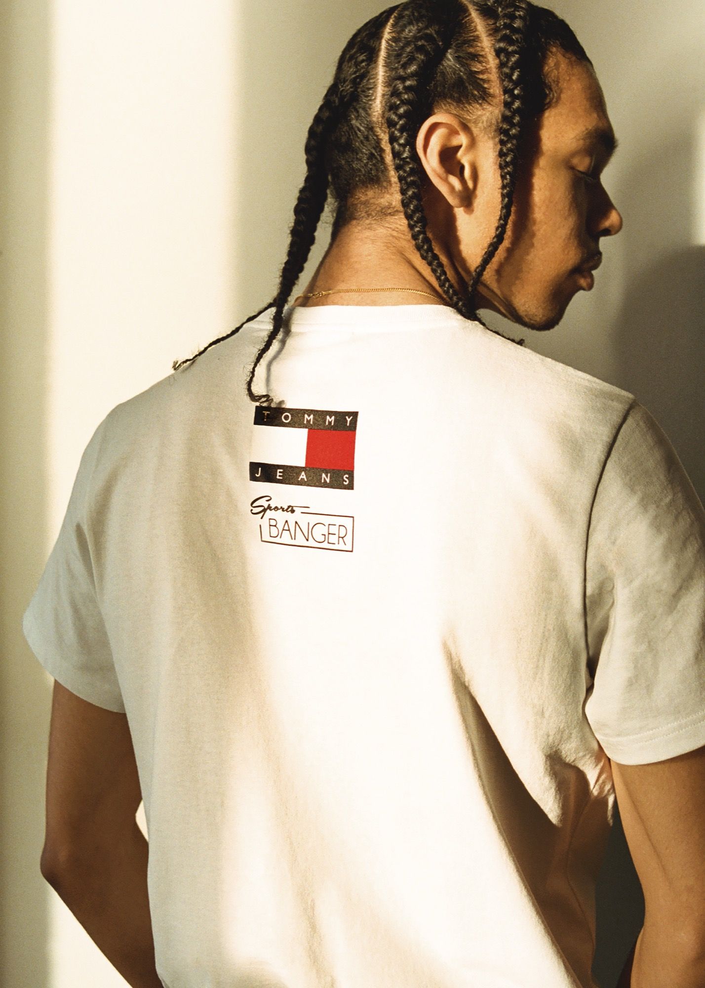 DROP 1.1 highlights Sports Banger, the independent, British lifestyle brand founded in 2013 by Jonny Banger. The unisex sportswear line explores British culture and translates it into provocative products and experiences. In his Tommy’s Drop Shop designs, Banger flips the TOMMY JEANS flag on its head; channels an old rave flyer; and reinterprets an iconic TOMMY HILFIGER pair of blue and red gloves worn by R&B musician, Aaliyah.