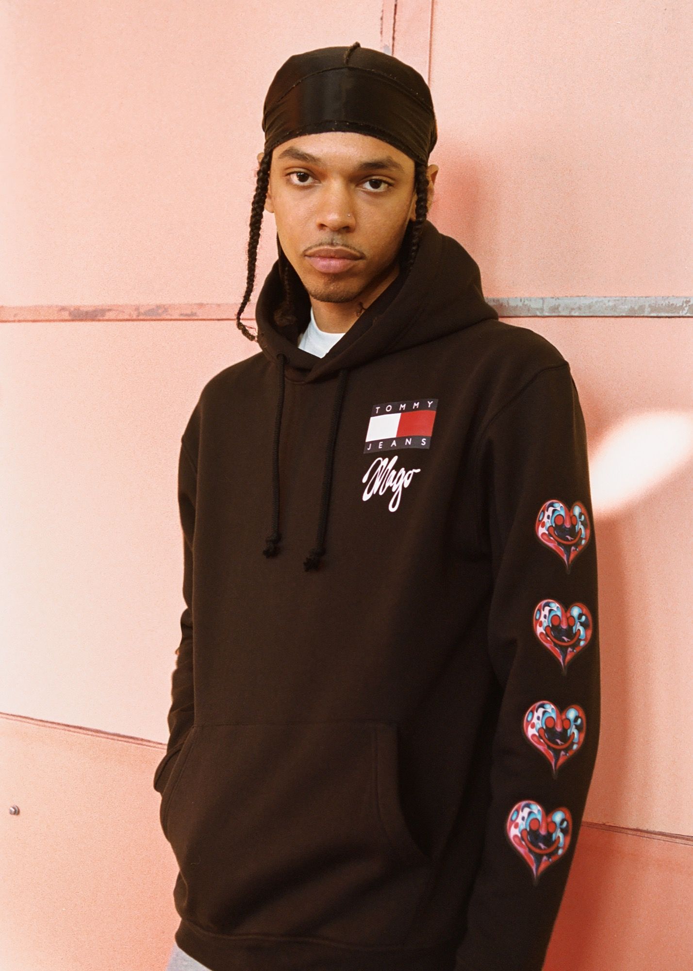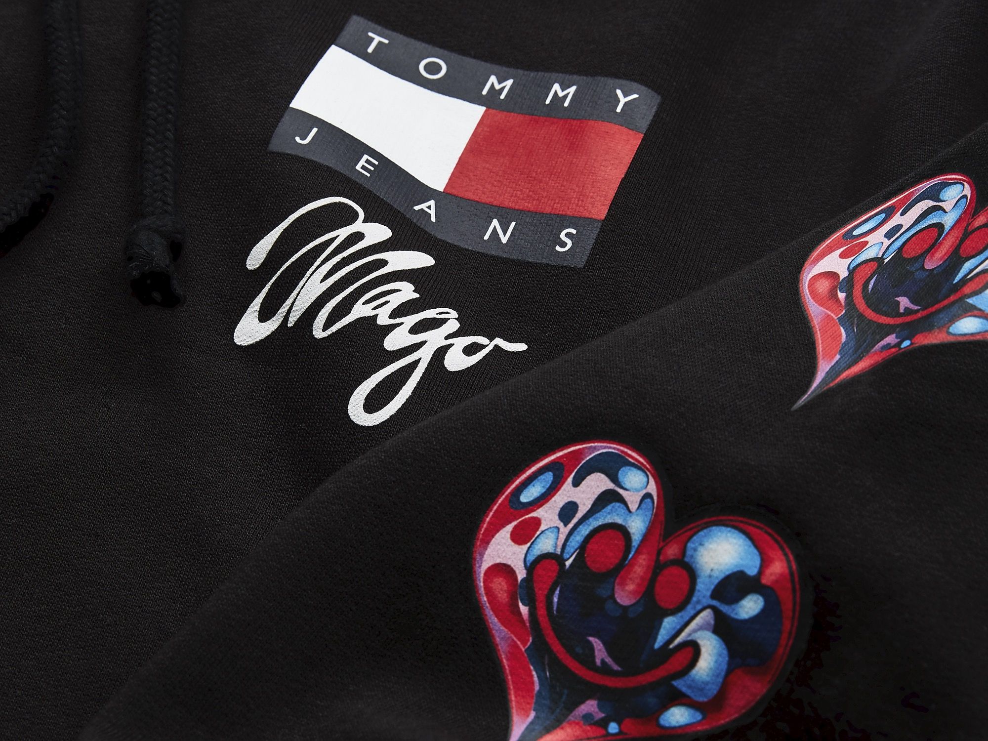 DROP 1.2 is designed by Berlin-based Mago Dovjenko, a creative director, graphic designer, illustrator, digital influencer and event host. Dovjenko began his career producing surrealist drawings, which were first recognized and esteemed by global brands when he was only 14 years old. In his Tommy’s Drop Shop pieces, Dovjenko celebrated spontaneous self-expression by ‘freestyling’ in his design process and deconstructing the iconic TOMMY HILFIGER flag. His T-shirt and hoodie feature psychedelic and graffiti-style art, including a lava lamp-inspired, oversized smiling heart. Dovjenko tells us below where he finds inspiration and how this collaboration came about.