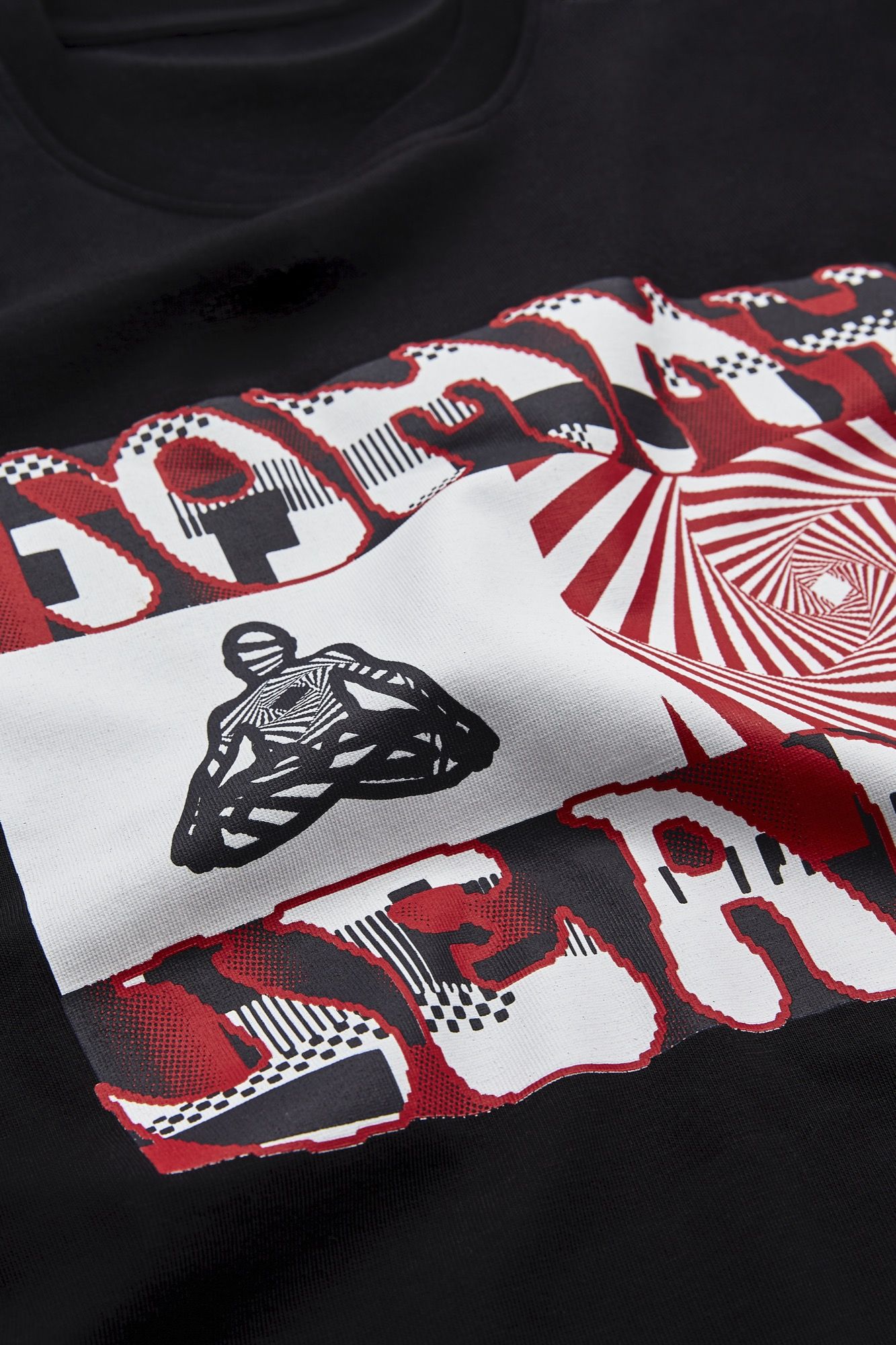 DROP 1.3 styles were designed by London-based Toby Evans, founder of Studio Zome. Known for his distinctive approach to design, Evans has worked with a range of industry-defying brands, platforms and artists. In his Tommy’s Drop Shop designs, Evans boldly reinterprets TOMMY HILFIGER’s iconic aesthetic and brand codes. His T-shirt and hoodie tell a story of what paths Mr Tommy Hilfiger may have pursued in a parallel universe, had he not become a fashion designer.