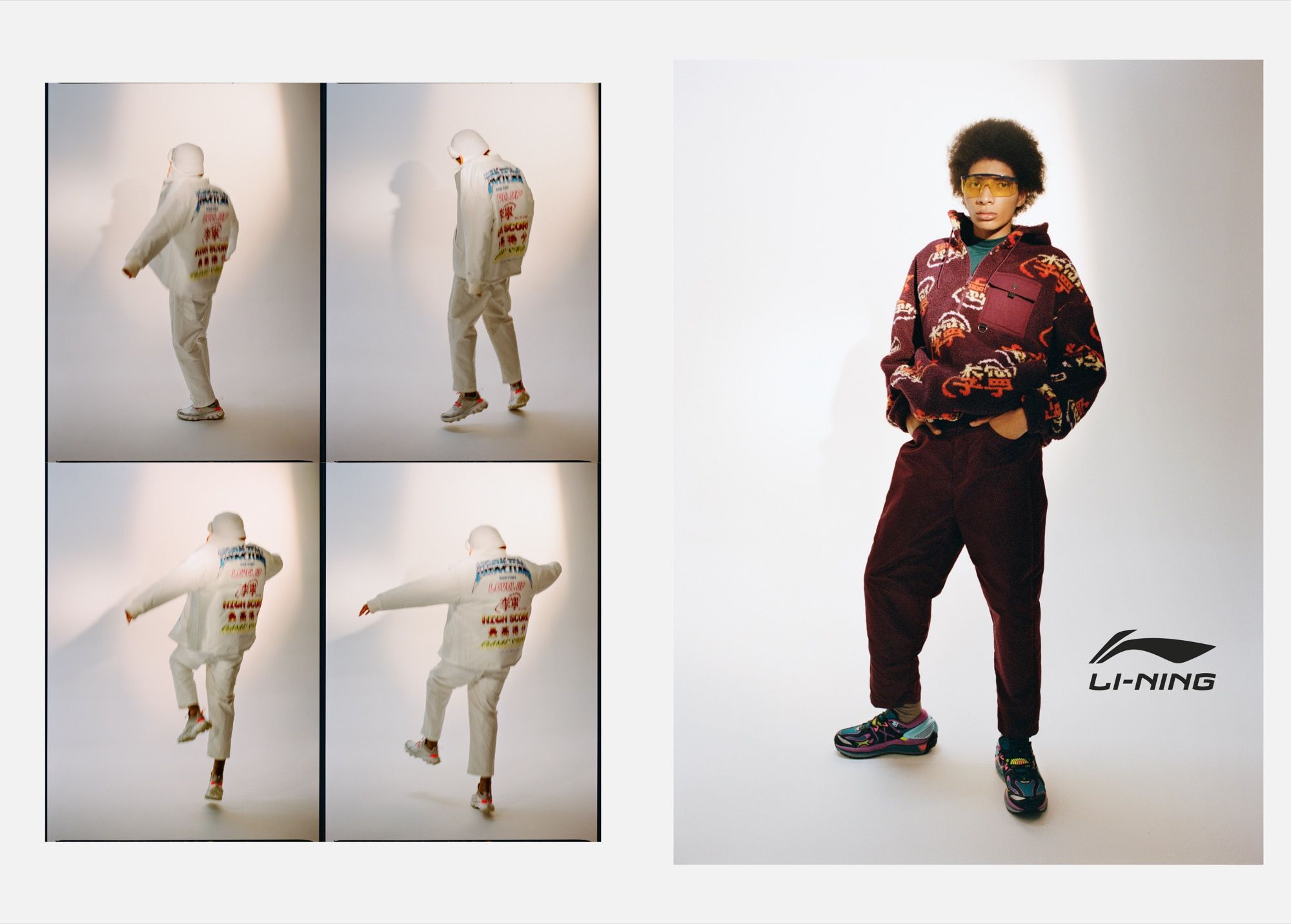 The creatives involved in the project each stand out for their own style, taste and vision, thus creating a multifaceted image of Li-Ning himself. The brand's campaign features Johnny Dufort, Sharna Osborne, Michael James Fox, Traum Inc. and ByeByeDisco.